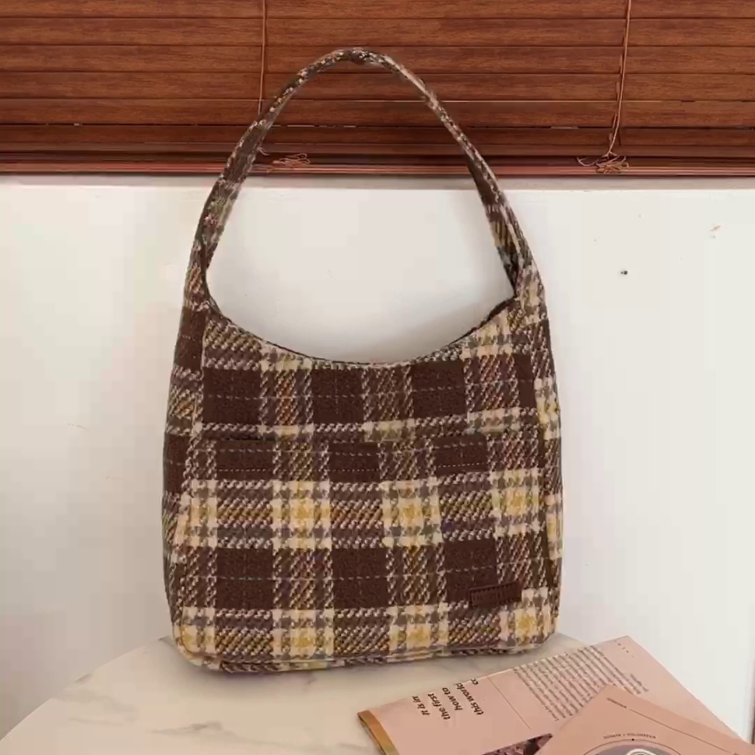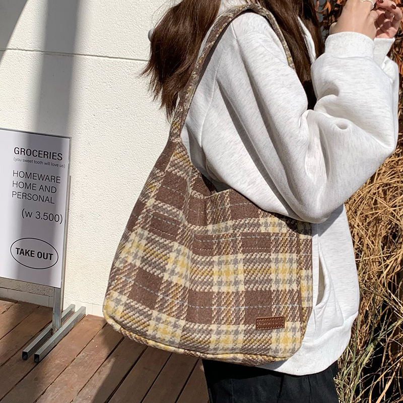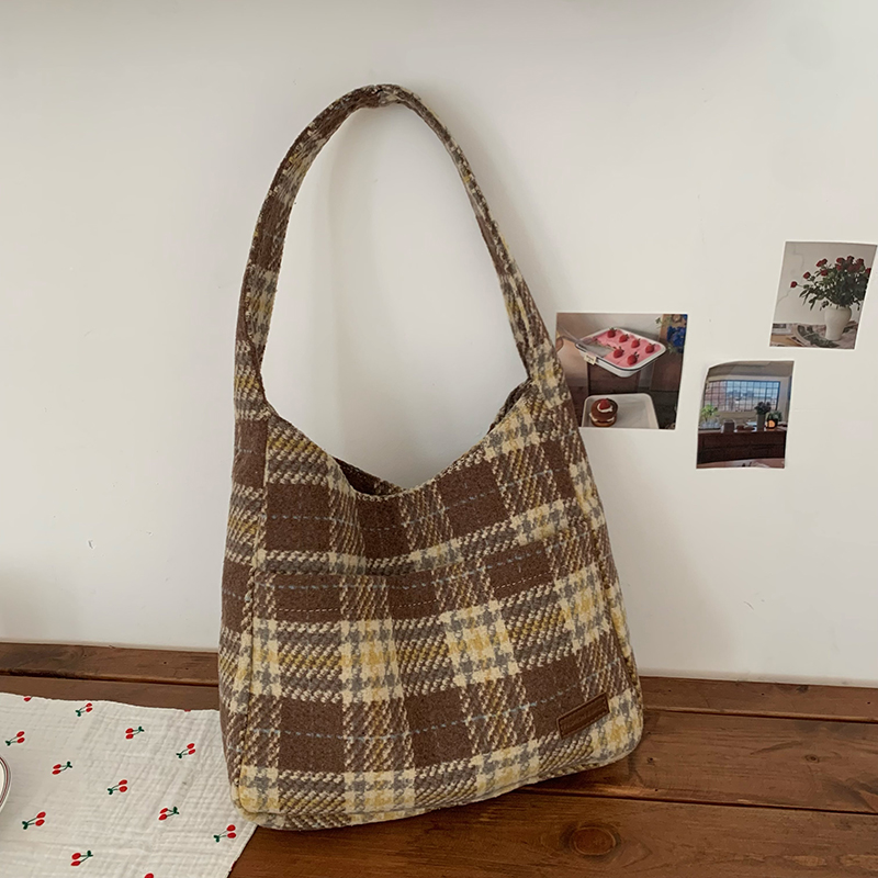 大容量包包女2023新款格紋複古百搭學生上課ins風單肩通勤托特包