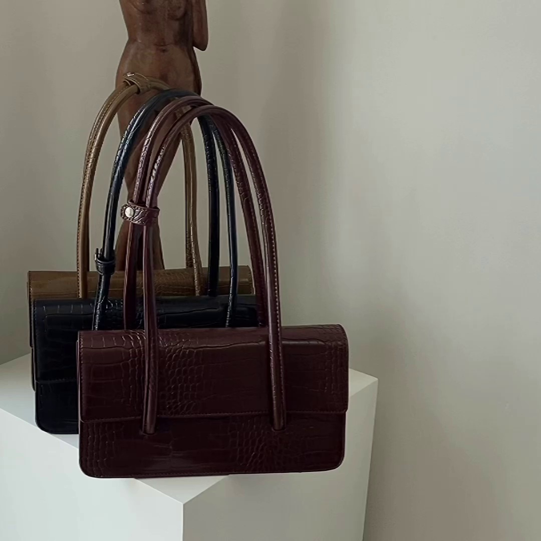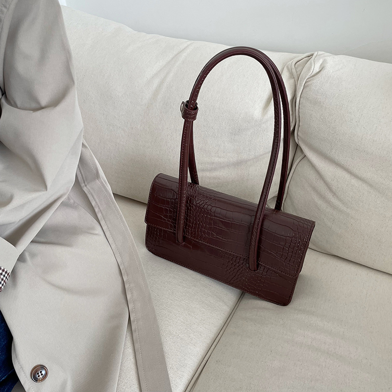 韓國新款鳄魚紋法棍包方形翻蓋單肩包小衆百搭質感腋下包包女