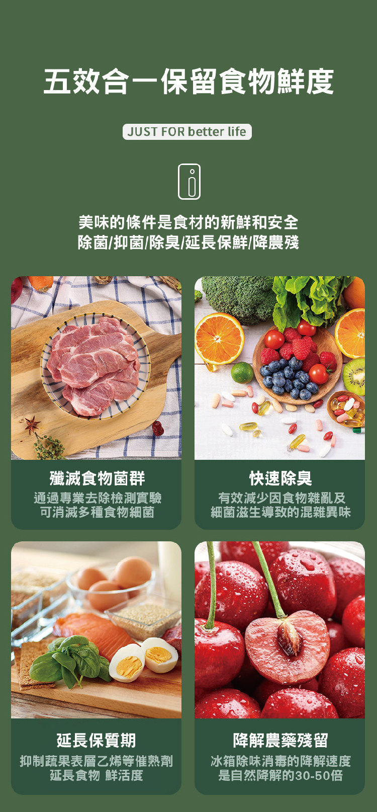 全功能冰箱除臭去味立體保鮮四合一 | 消滅99.8%冰箱細菌 | 0耗材20天充電一次 | 環保無害 | 防凍防潮設計 | 家用臭氧除菌保鮮冰箱去味除臭器