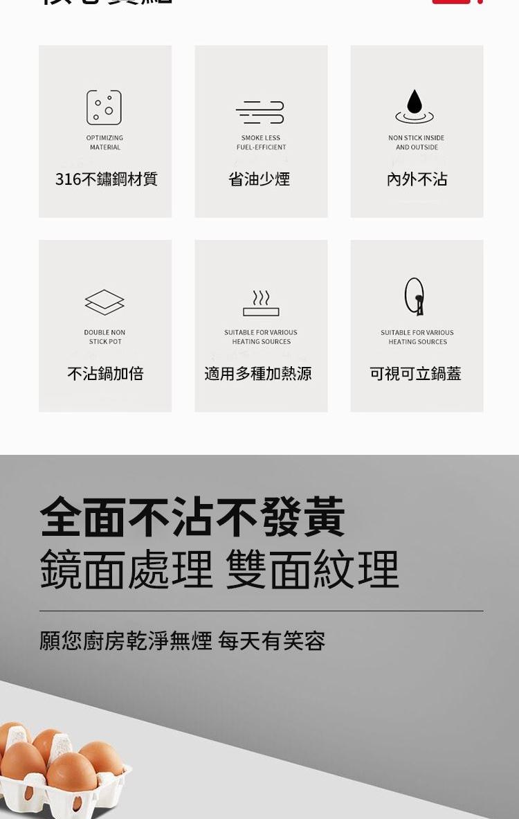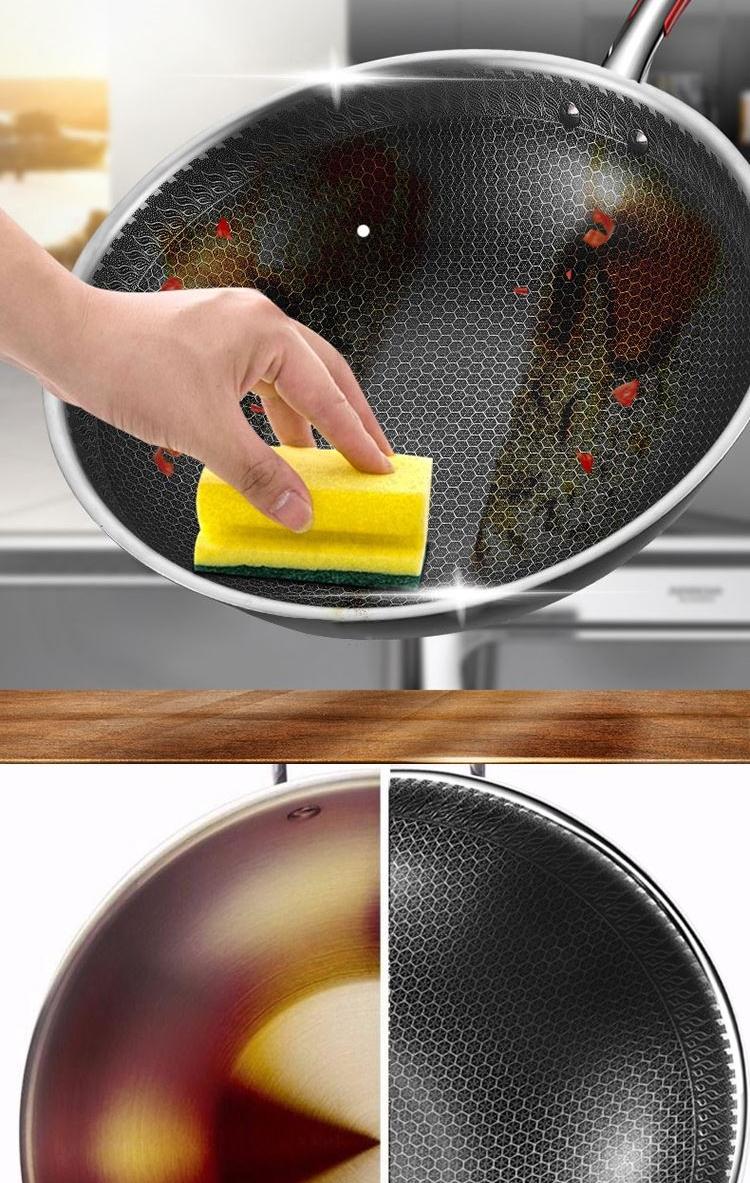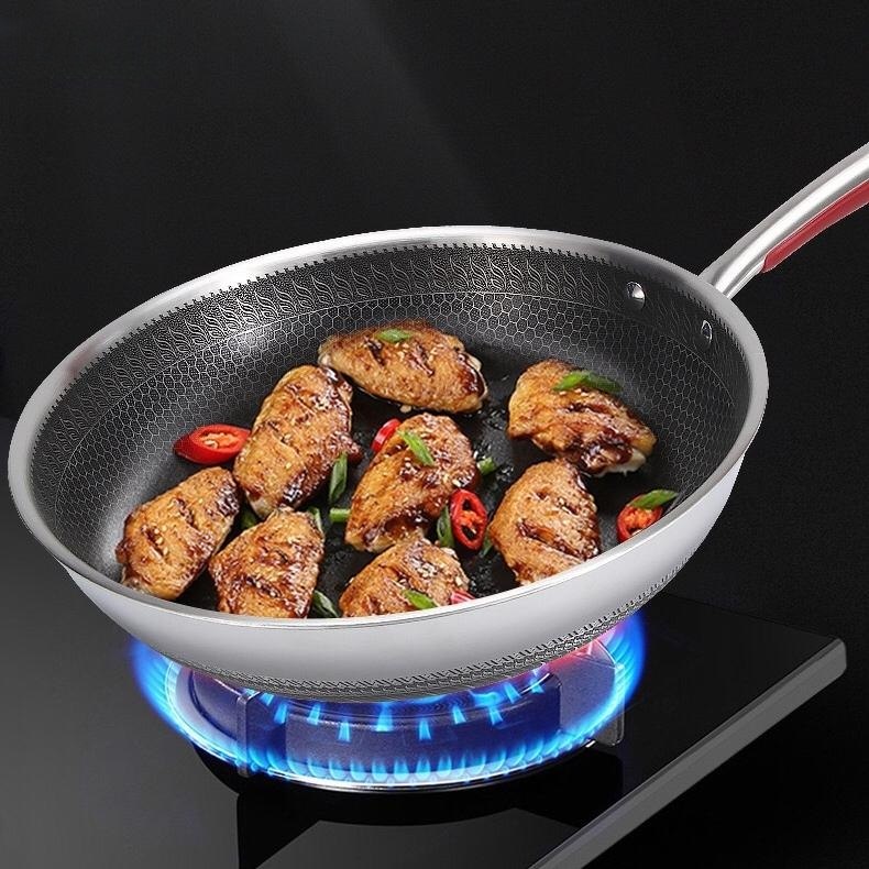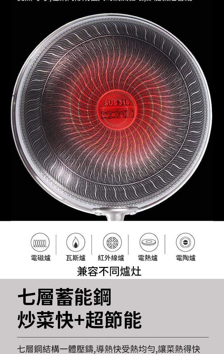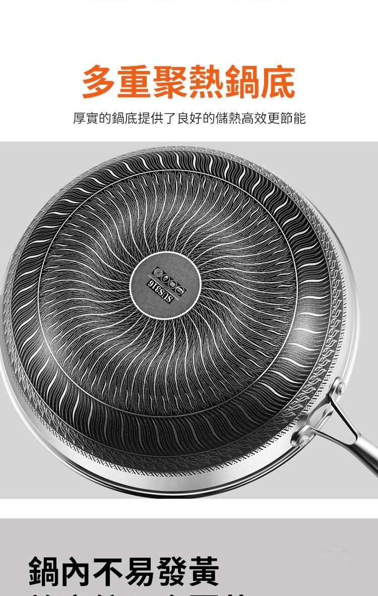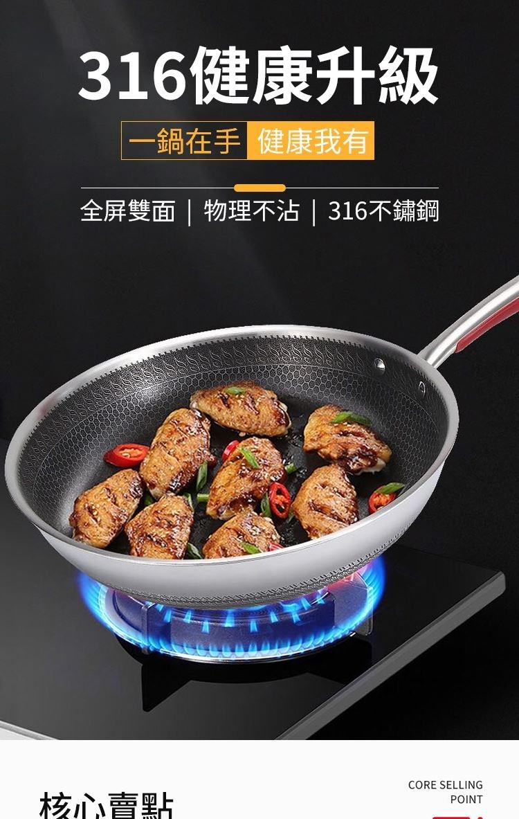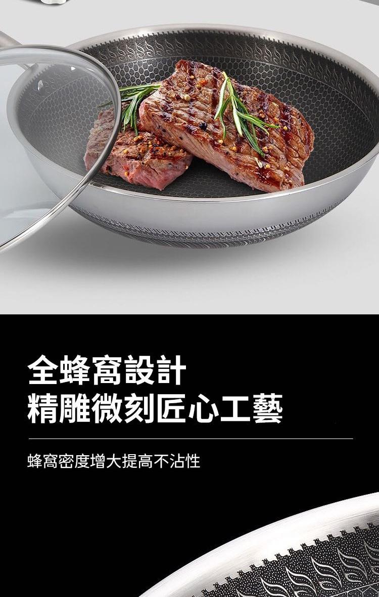 大師級純物理健康不沾鍋 | 懸浮式蜂巢內外不沾不發黃 | 安全316不鏽鋼 | 可用鐵鏟 | 七層復合蓄能節能鍋底 | 全屏雙面大師級平底炒鍋不沾鍋