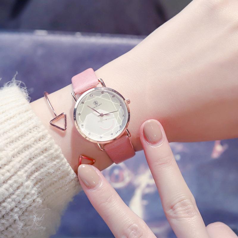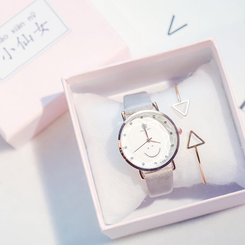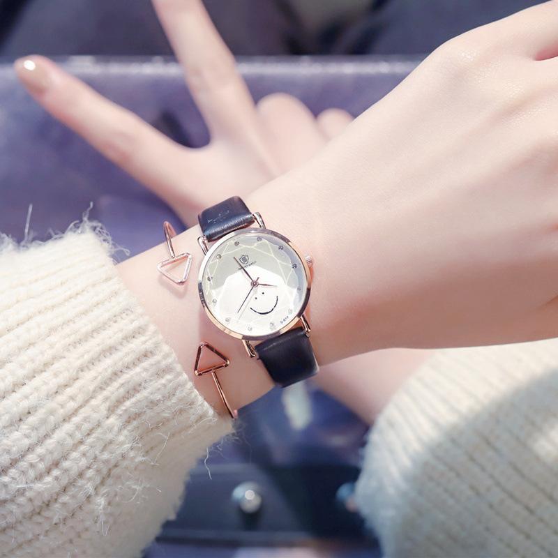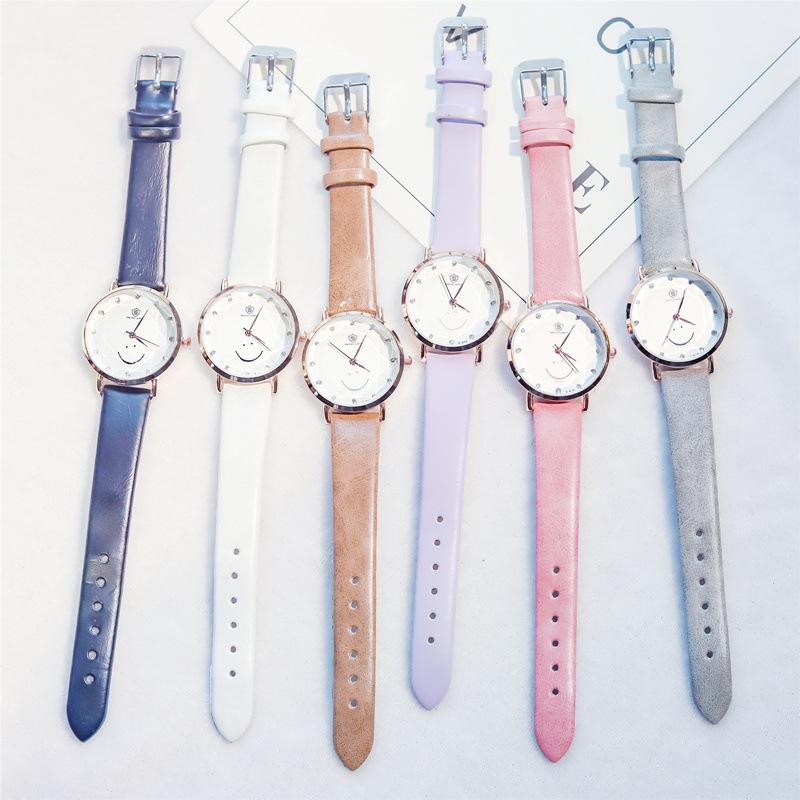 文藝可愛笑臉錶盤點鑽刻度清新手錶百搭女錶
