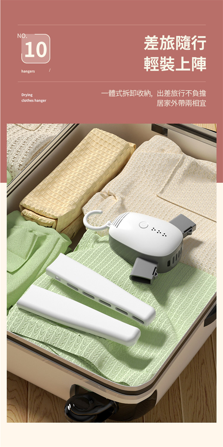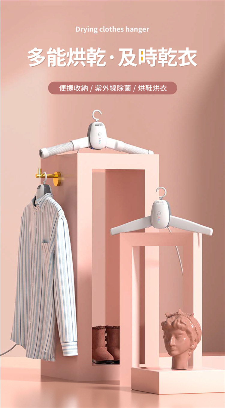 貼心差旅乾衣神器 | 日式便攜衣架式烘乾機 | 立體循環熱風 | 紫外線深度除菌 | 0.5H極速烘乾 | 多檔烘乾不傷衣 | 便捷可拆卸 | 三重過熱安全保護