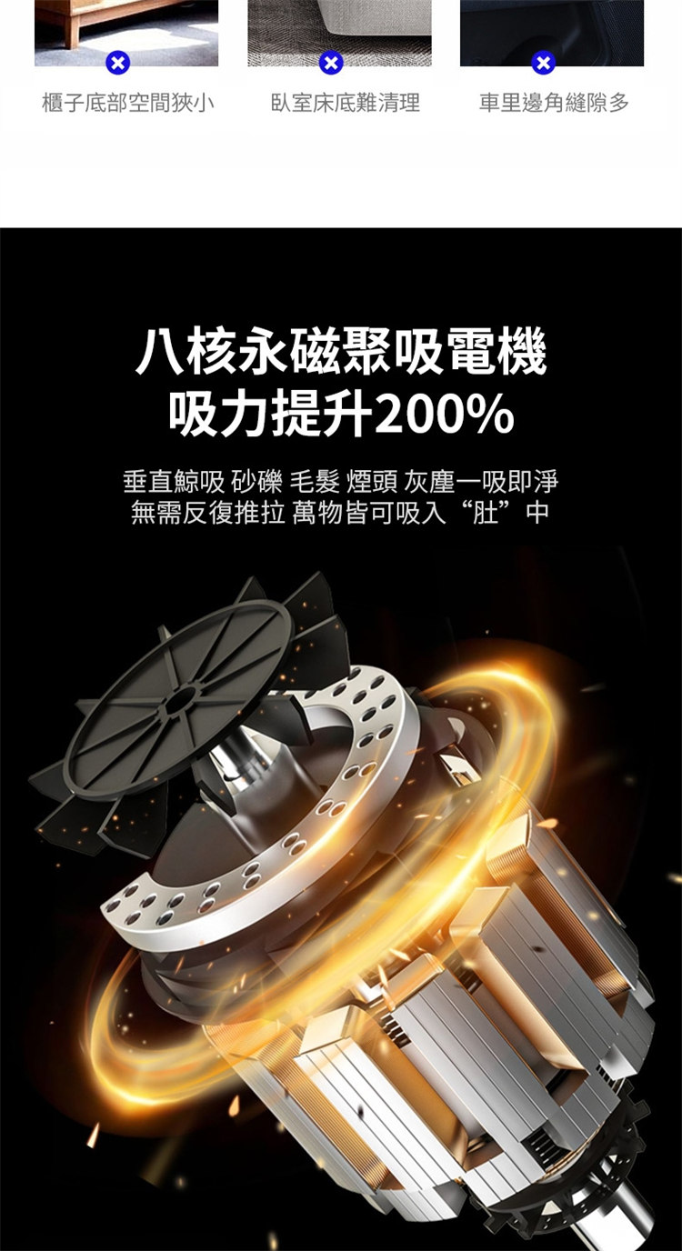 奢級酒店級無線手持吸塵器 | 颶風大吸力 | 八核永磁聚吸馬達 | 輕量化機身家務不累 | LED前置照明 | 可水洗HEPA濾網 | 家車兩用長續航無線吸塵器