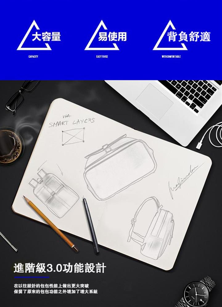 都市職人多功能大容量後背包 | 人體工學背負系統 | 防滲透無懼雨水 | 高密海綿緩衝防震 | 實用多隔層好收納 | 男女高強面料雙肩後背包