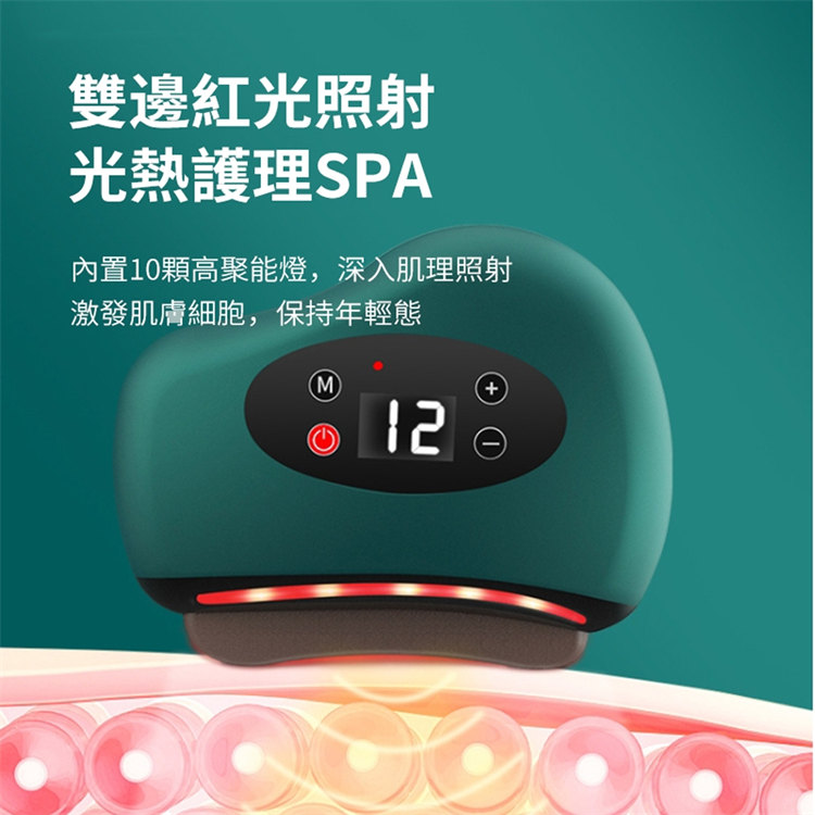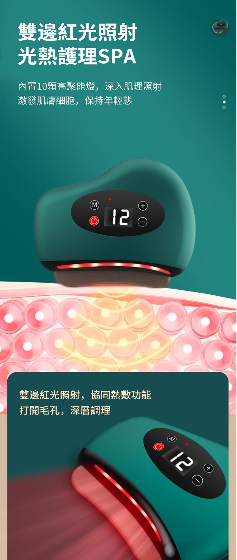 SPA級按摩美容砭石電動刮痧儀 | 天然微量元素砭石 | 42度恆溫熱敷 | 12檔震動按摩 | 光熱護理紅光聚能 | 無線便攜小巧家用電動美容刮痧儀