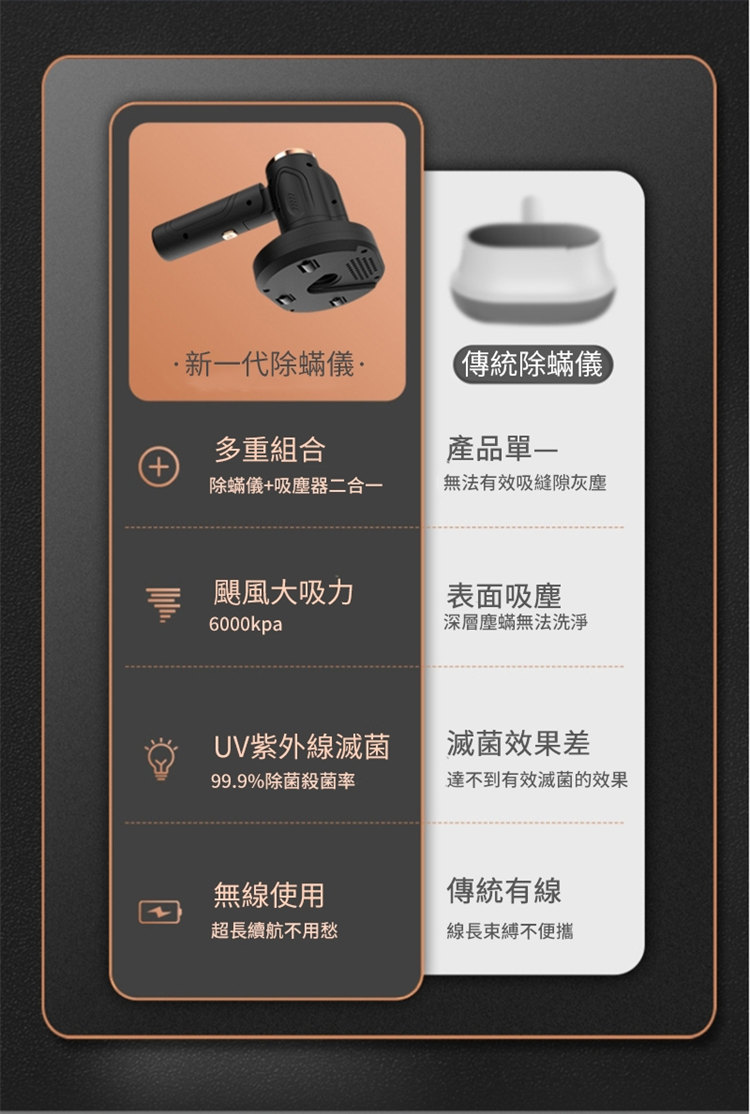 全功能二合一深層除螨機吸塵器 | 澎湃大吸力深層除螨 | 99.99%UV滅菌 | 無線使用超長續航 | 附送吸塵器吸頭 | 全功能居家二合一塵螨吸塵器