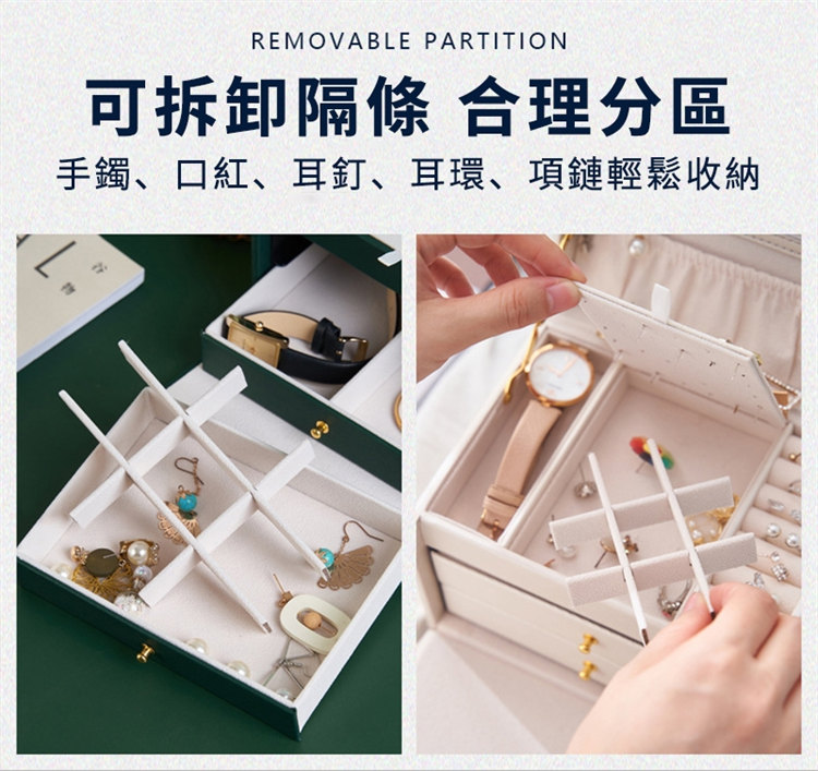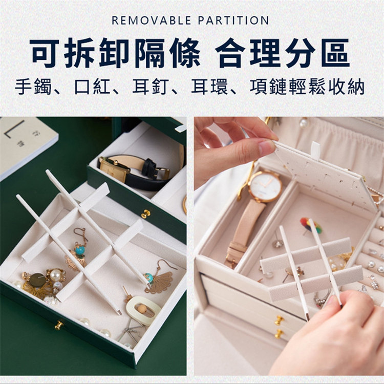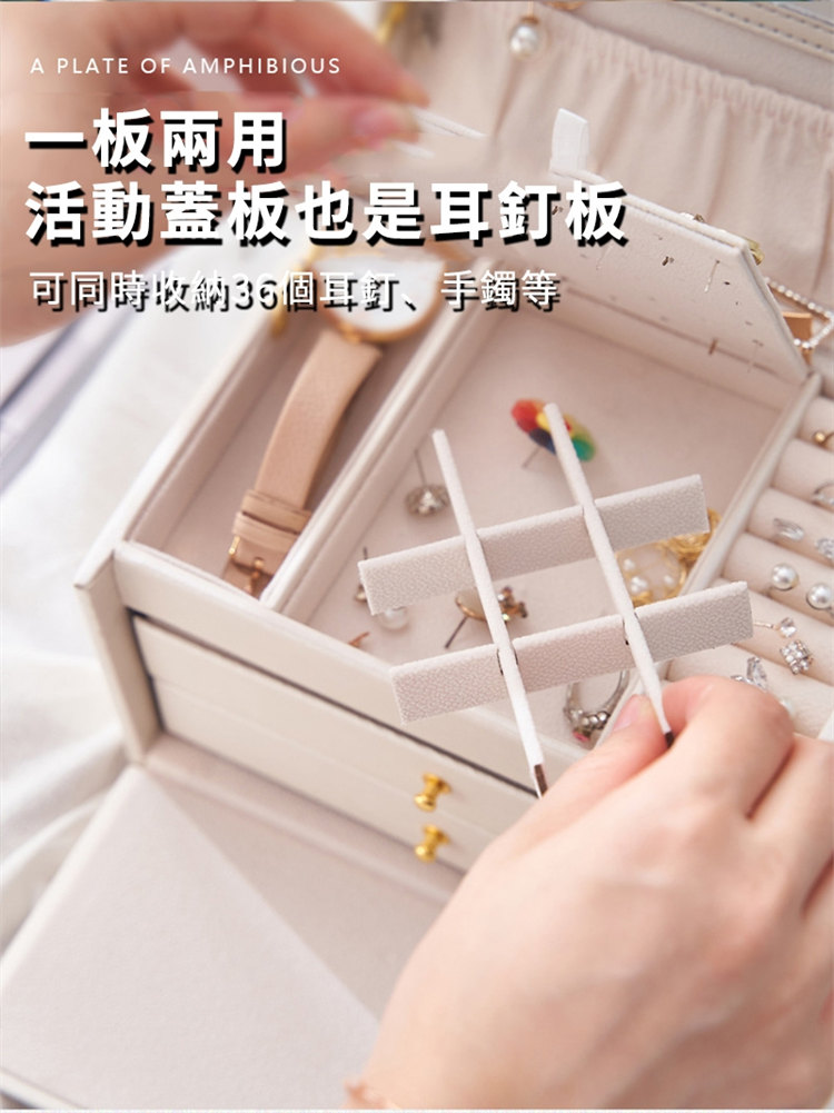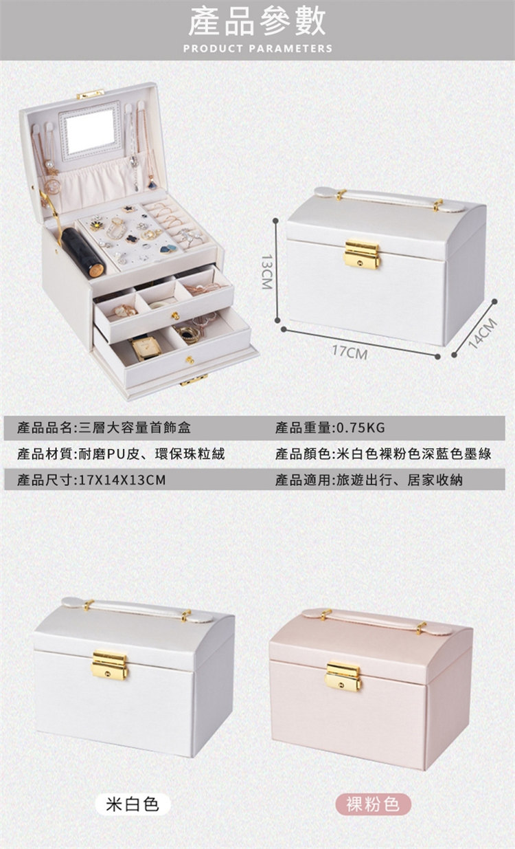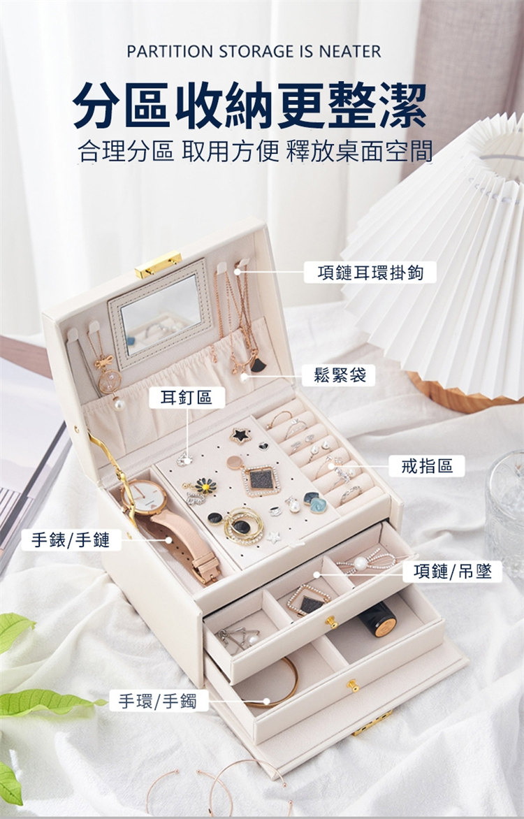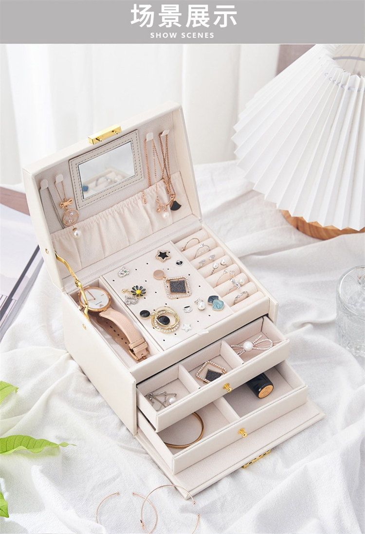 在逃公主高級大容量首飾盒 | 三層設計分區收納 | 質感耐磨皮料內植絨 | 超合適送閨蜜送女生禮物項鍊戒指耳環手鍊手錶全功能抽屜式收納盒