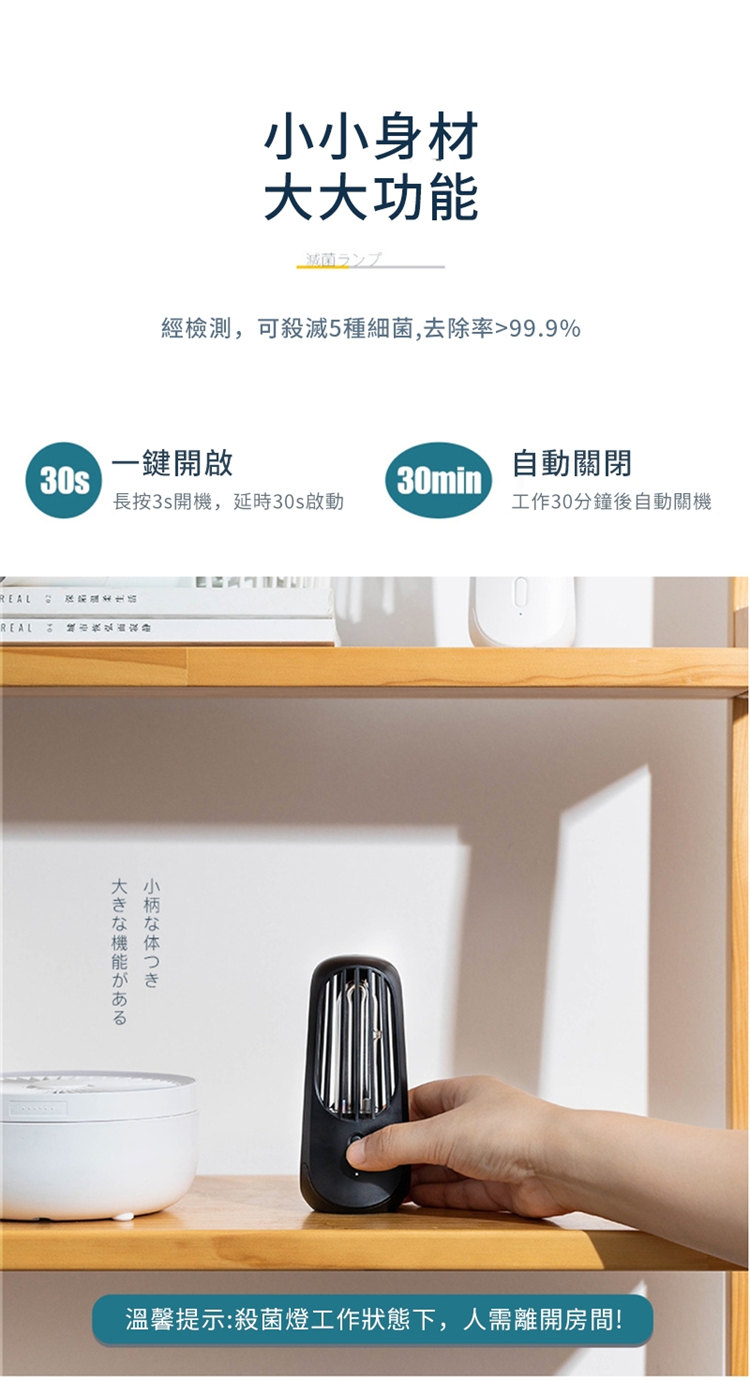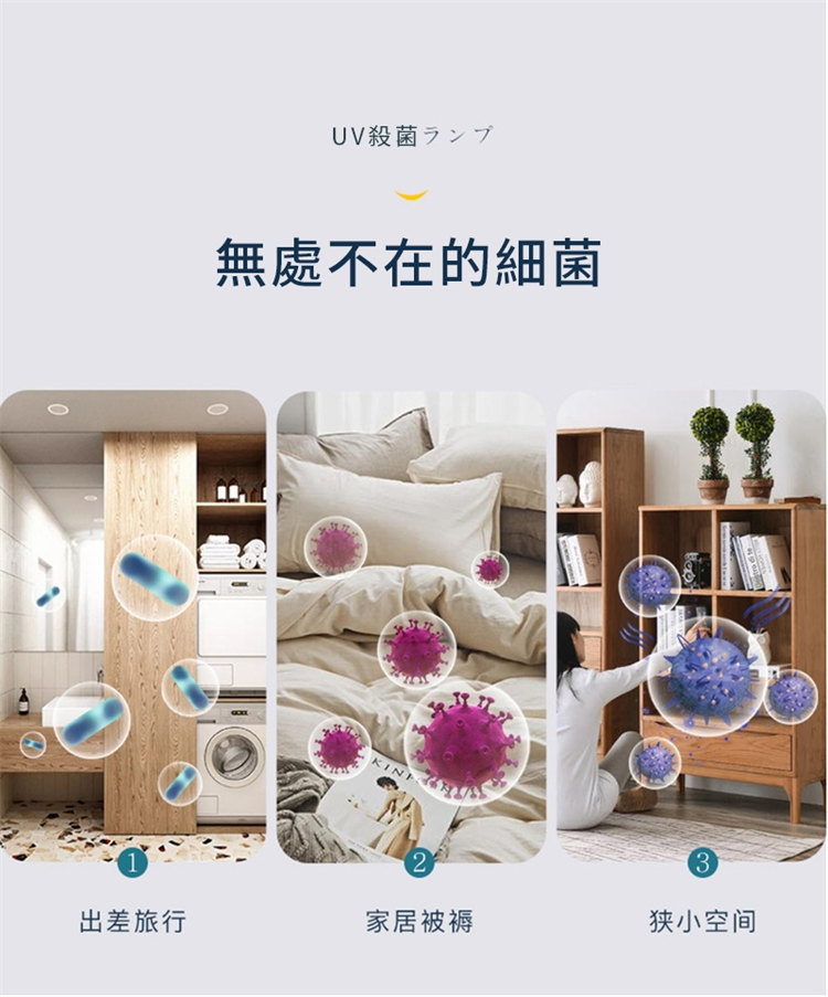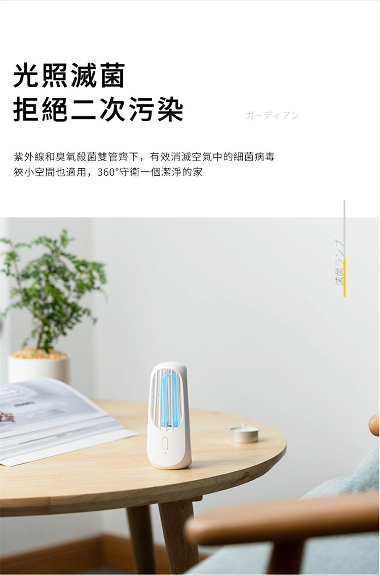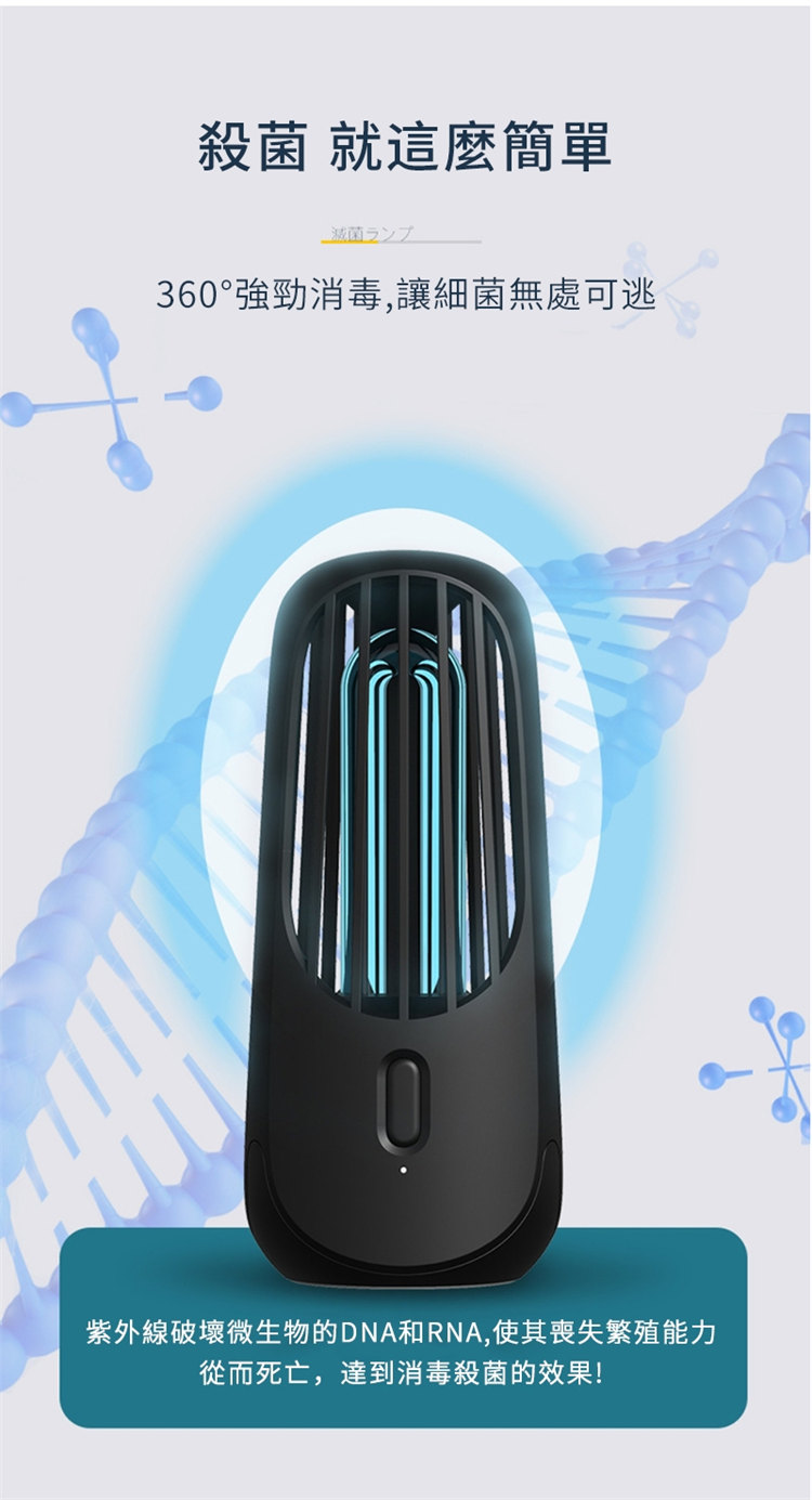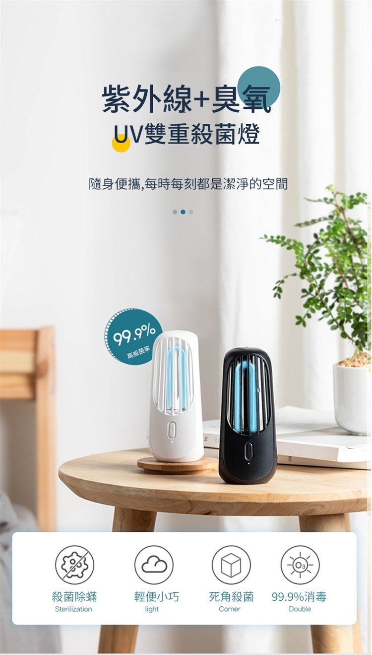 紫外線臭氧雙重殺菌消毒燈 | 99.9%滅菌率 | 360度強勁消毒無死角 | 光照滅菌杜絕二次污染 | 無線隨身便攜 | UV雙重紫外線臭氧消毒燈