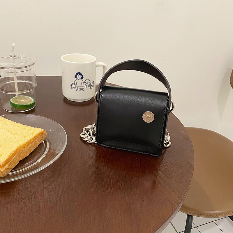 韓劇熱播可愛黑色粗鏈條Chic手提斜背小方包手機包
