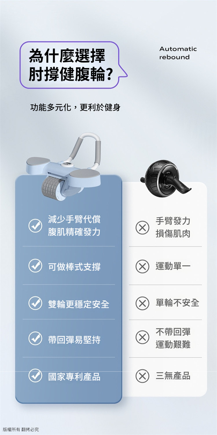3.0專業級肘撐健腹輪 | 精準腹部發力 | 自動回彈更持久 | 鍛煉數據全記錄 | 雙輪設計更穩定 | 內置剎車更安全 | 腹肌撕裂者3.0自動回彈男女健腹輪