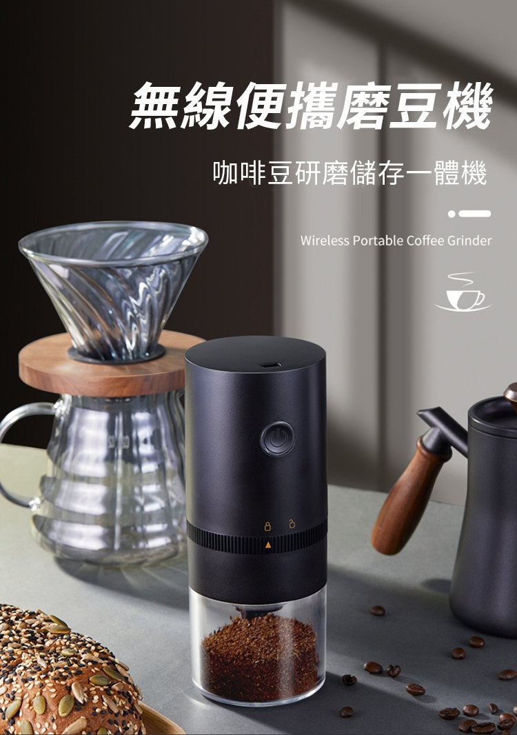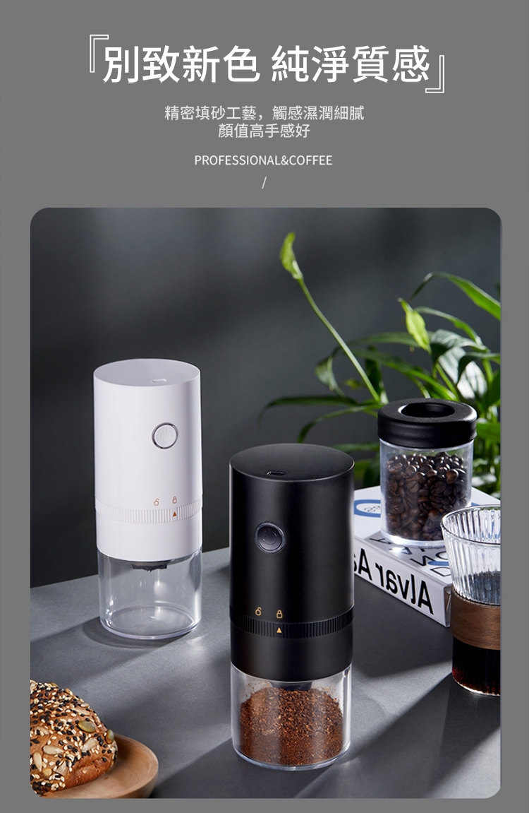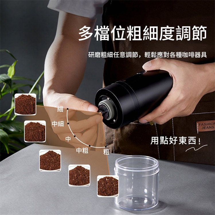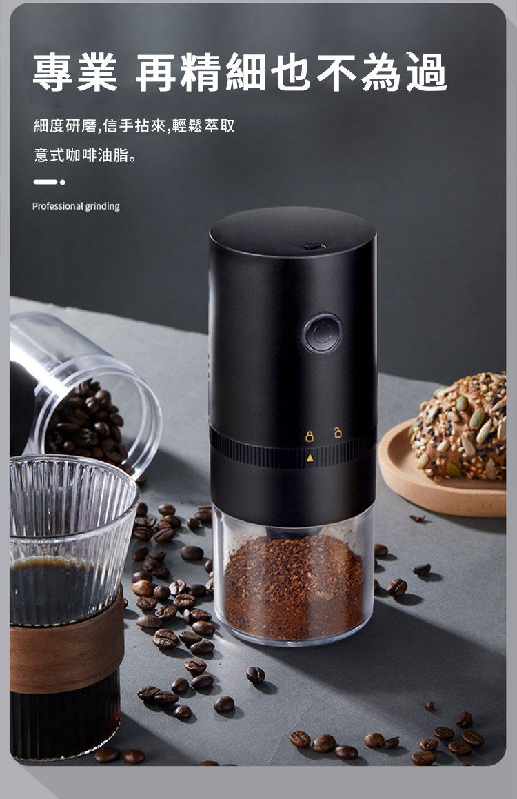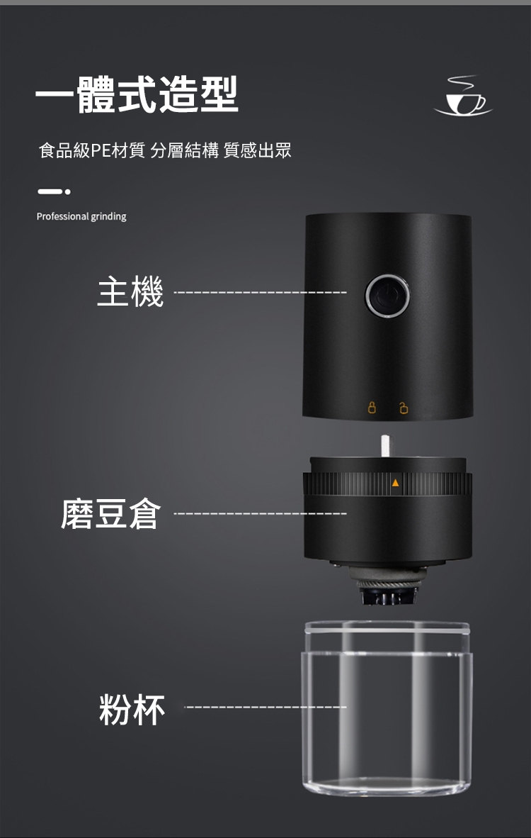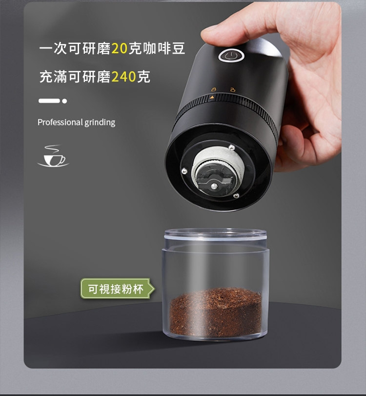 專業級無線電動現磨咖啡磨豆機 | 研磨儲存一體 | 錐形陶瓷馬達 | 多檔位粗細調節 | 磨完自動斷電 | 大電芯長續航 | 居家上班便攜式電動咖啡豆機