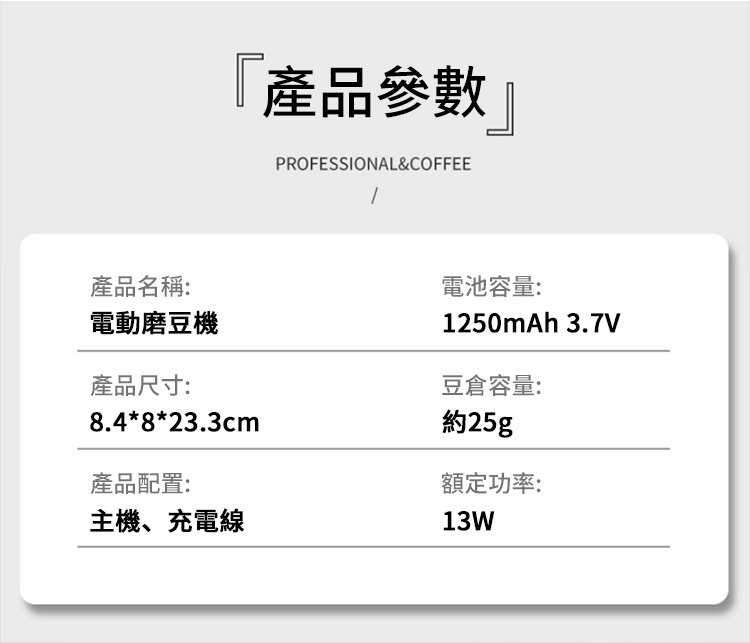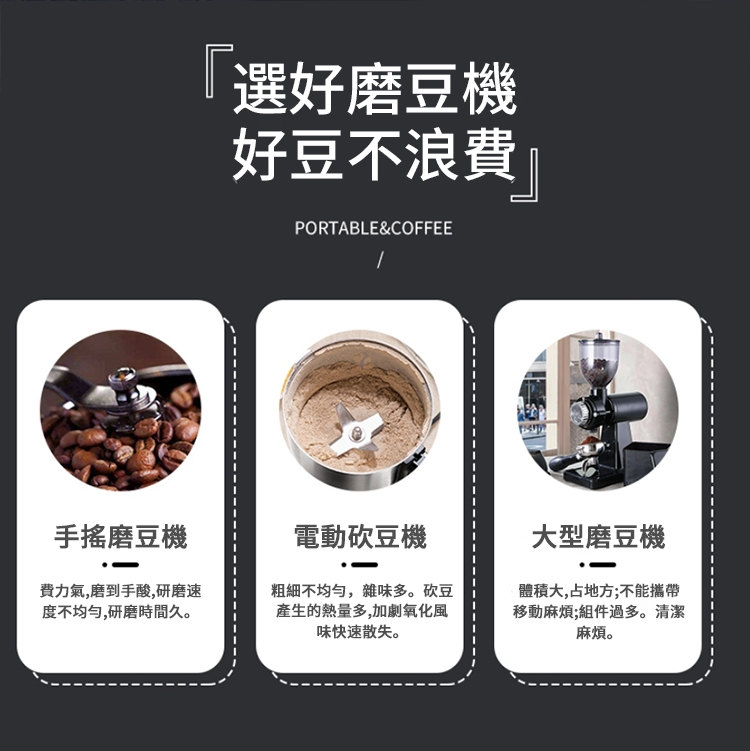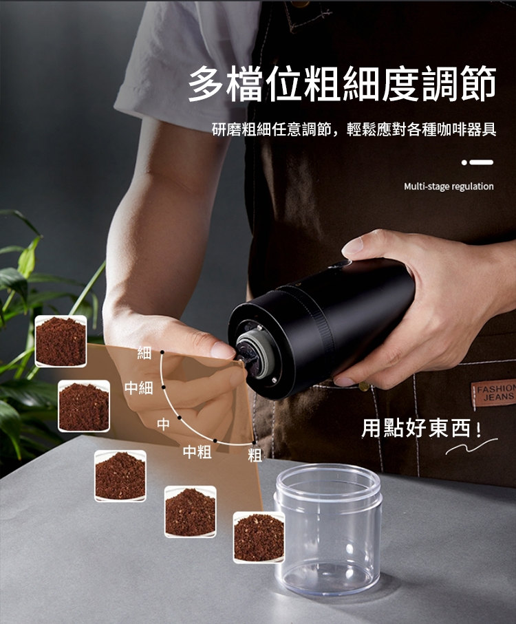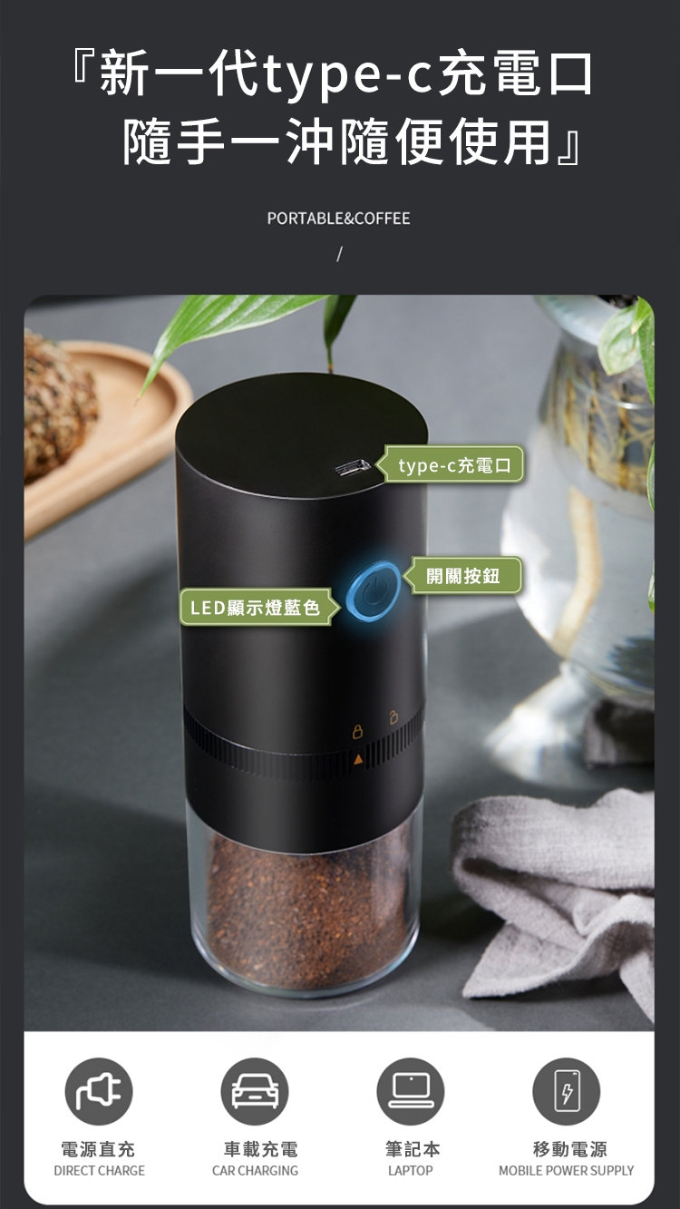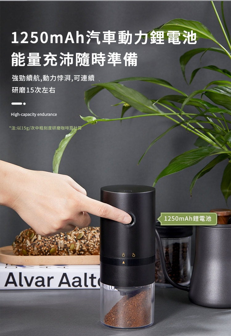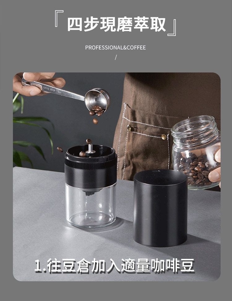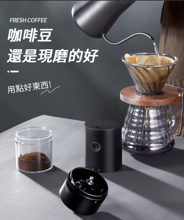 專業級無線電動現磨咖啡磨豆機 | 研磨儲存一體 | 錐形陶瓷馬達 | 多檔位粗細調節 | 磨完自動斷電 | 大電芯長續航 | 居家上班便攜式電動咖啡豆機