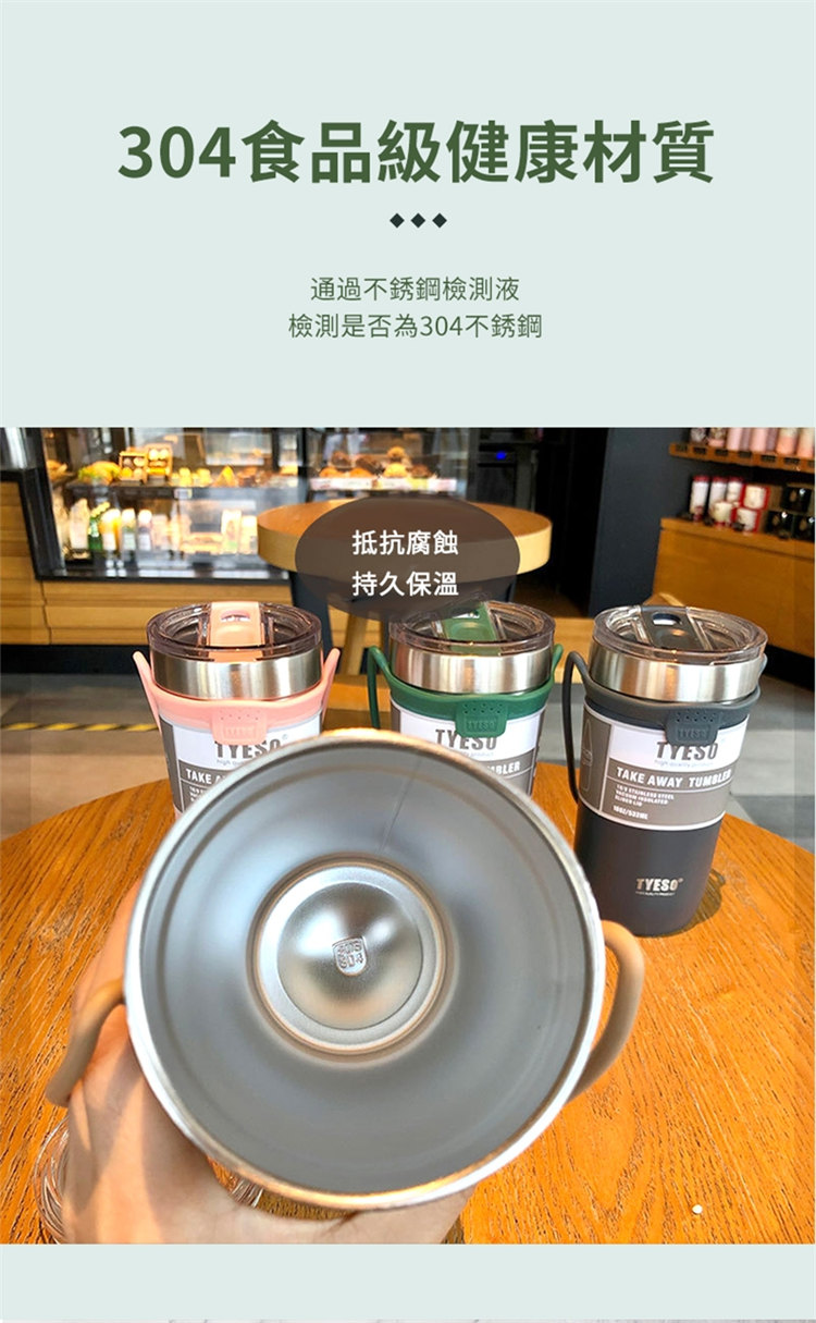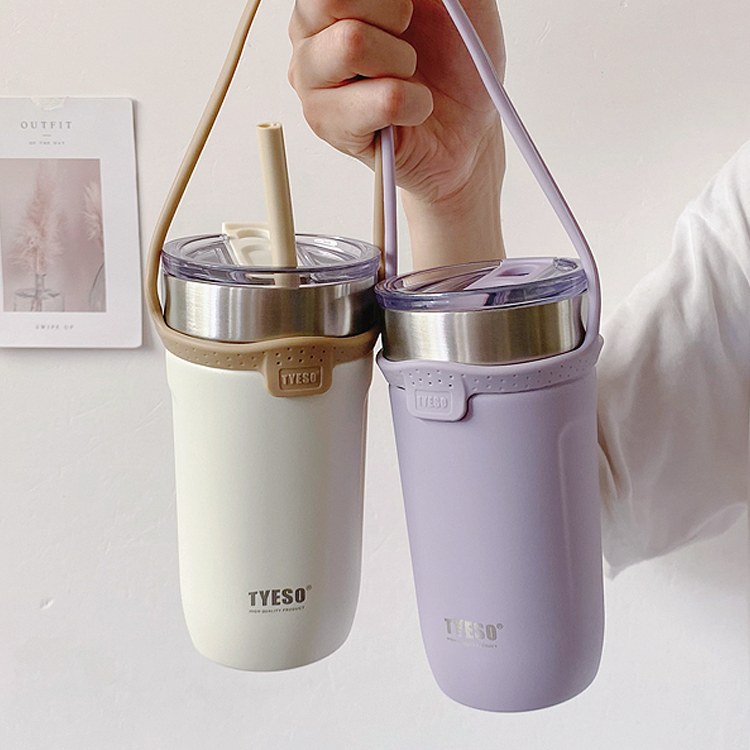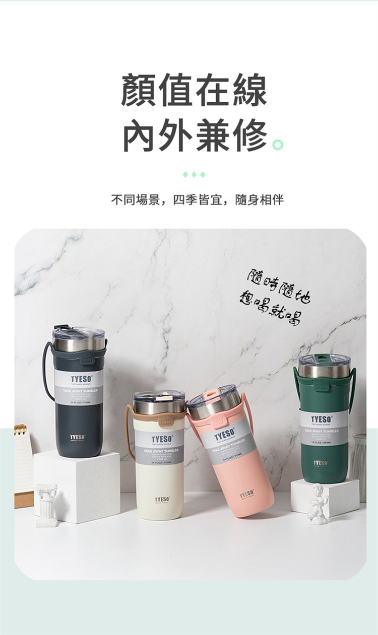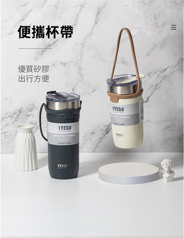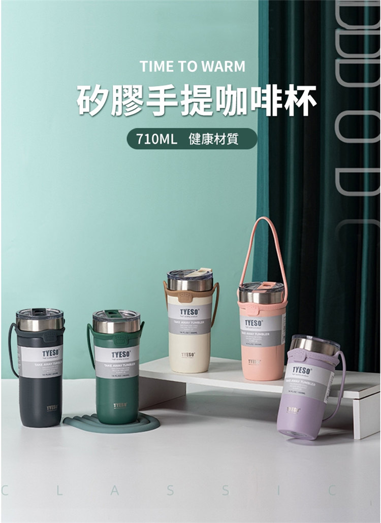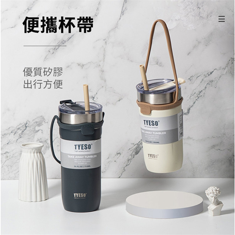 莫蘭迪色吸管咖啡杯 | 雙層真空保溫 | 矽膠手提超方便 | 滑蓋杯口可直飲 | 肌膚手感漆面 | 食品級不鏽鋼內膽 | TYESO美型吸管咖啡保溫杯
