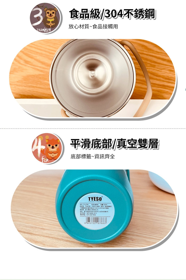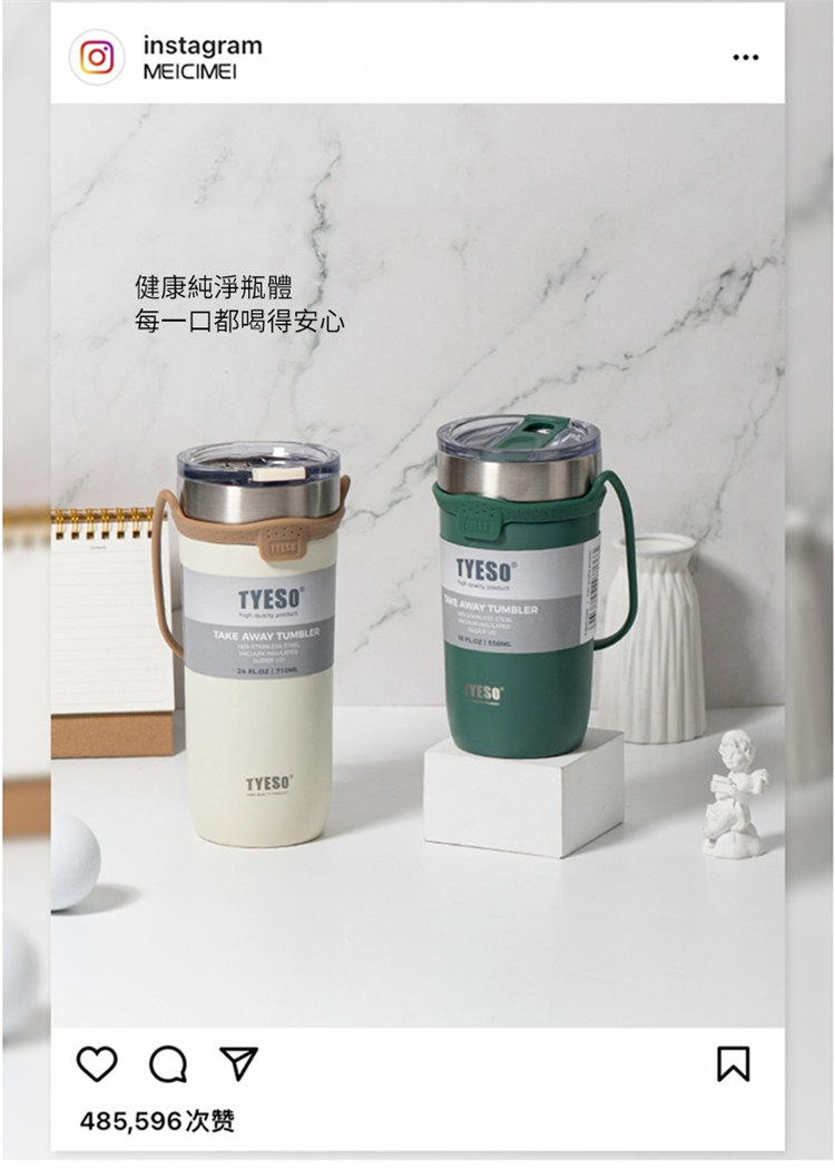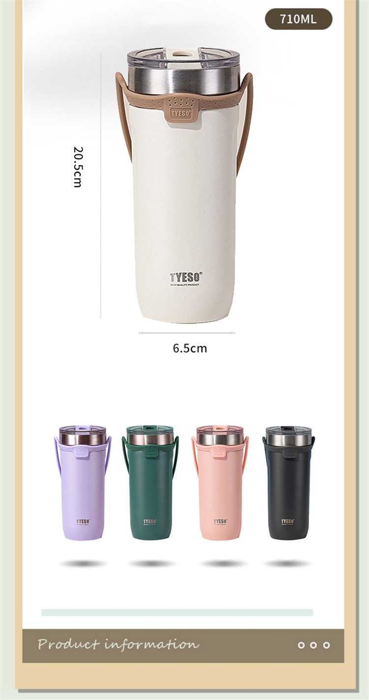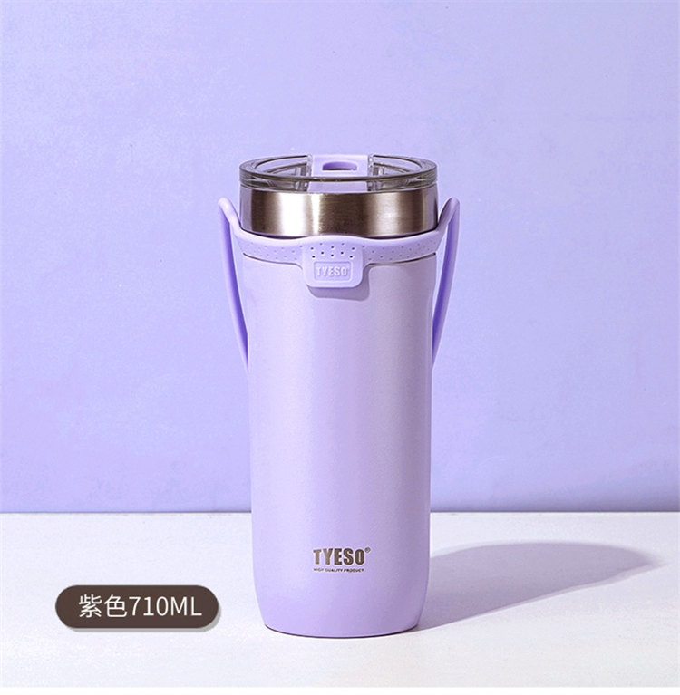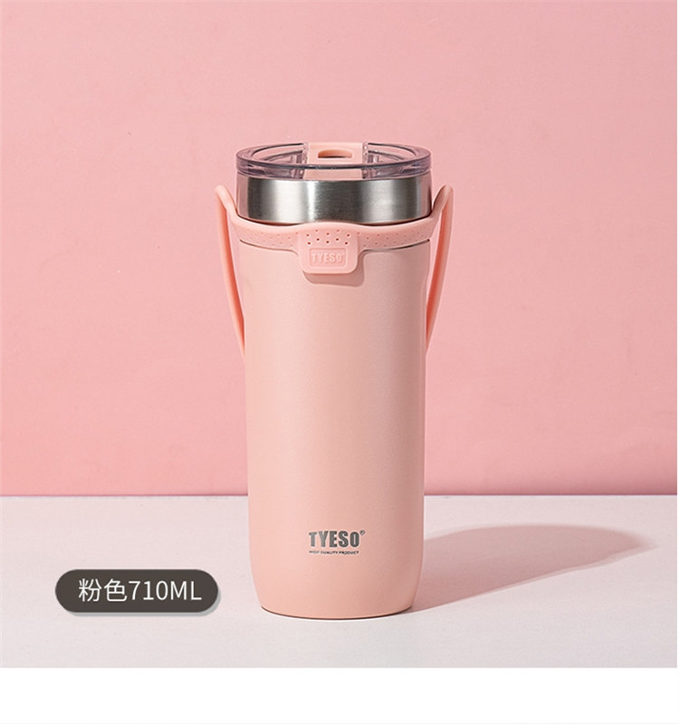 莫蘭迪色吸管咖啡杯 | 雙層真空保溫 | 矽膠手提超方便 | 滑蓋杯口可直飲 | 肌膚手感漆面 | 食品級不鏽鋼內膽 | TYESO美型吸管咖啡保溫杯