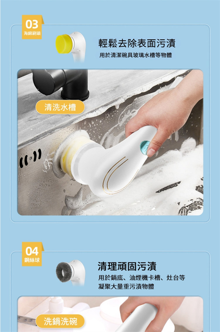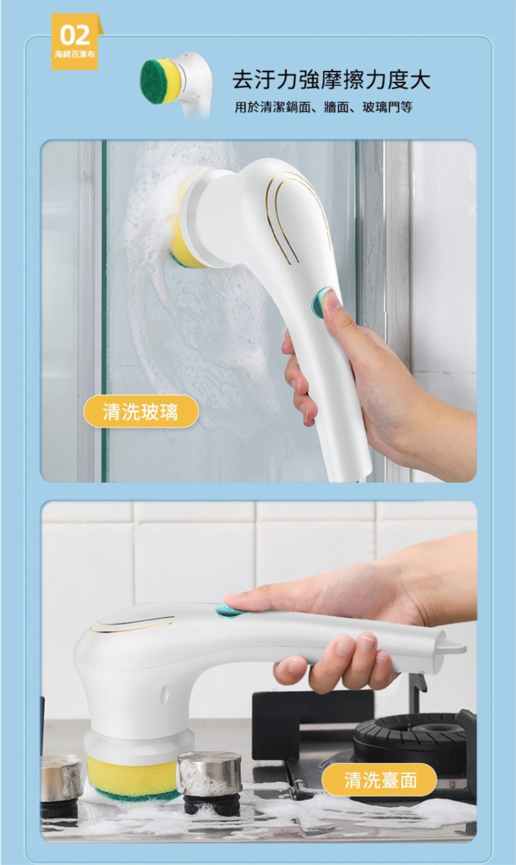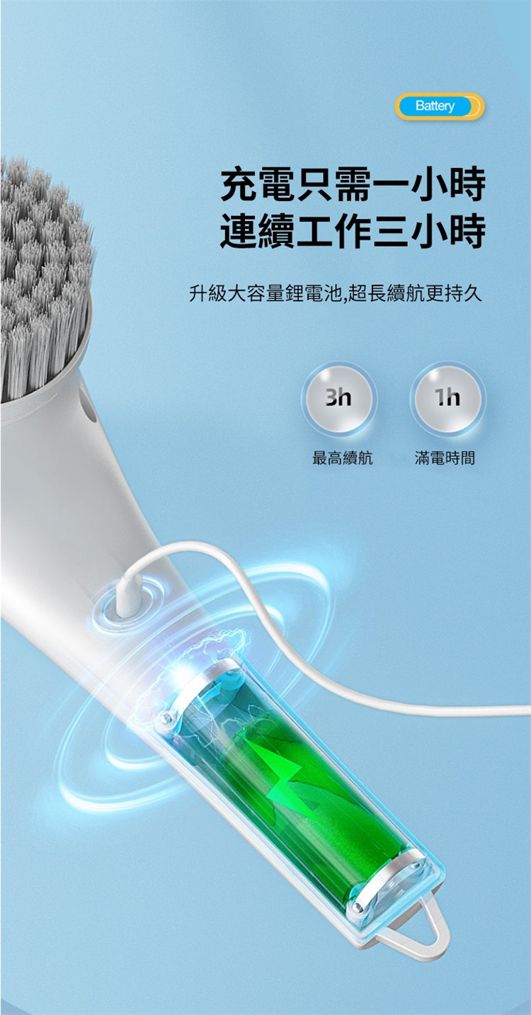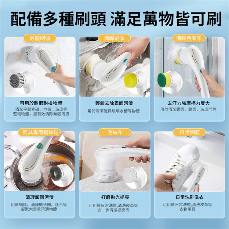 去油污神器電動清潔洗碗刷 | 送多款刷頭 | 澎湃動力大馬達 | 360°智能旋轉去污 | IPX7級防水 | 超長續航 | 洗碗洗鍋油煙機擦墻神器廚房電動清潔刷