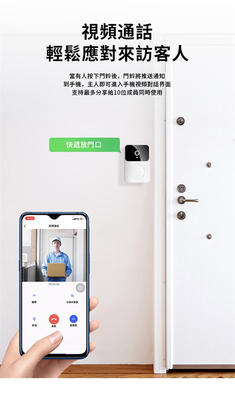 家門衛士智慧可視電子門鈴 | 實時視訊通話 | 訪客抓拍 | 高清紅外夜視 | 變身對講 | 365天超長待機 | 便攜免打安裝 | Visual Doorbell可視門鈴