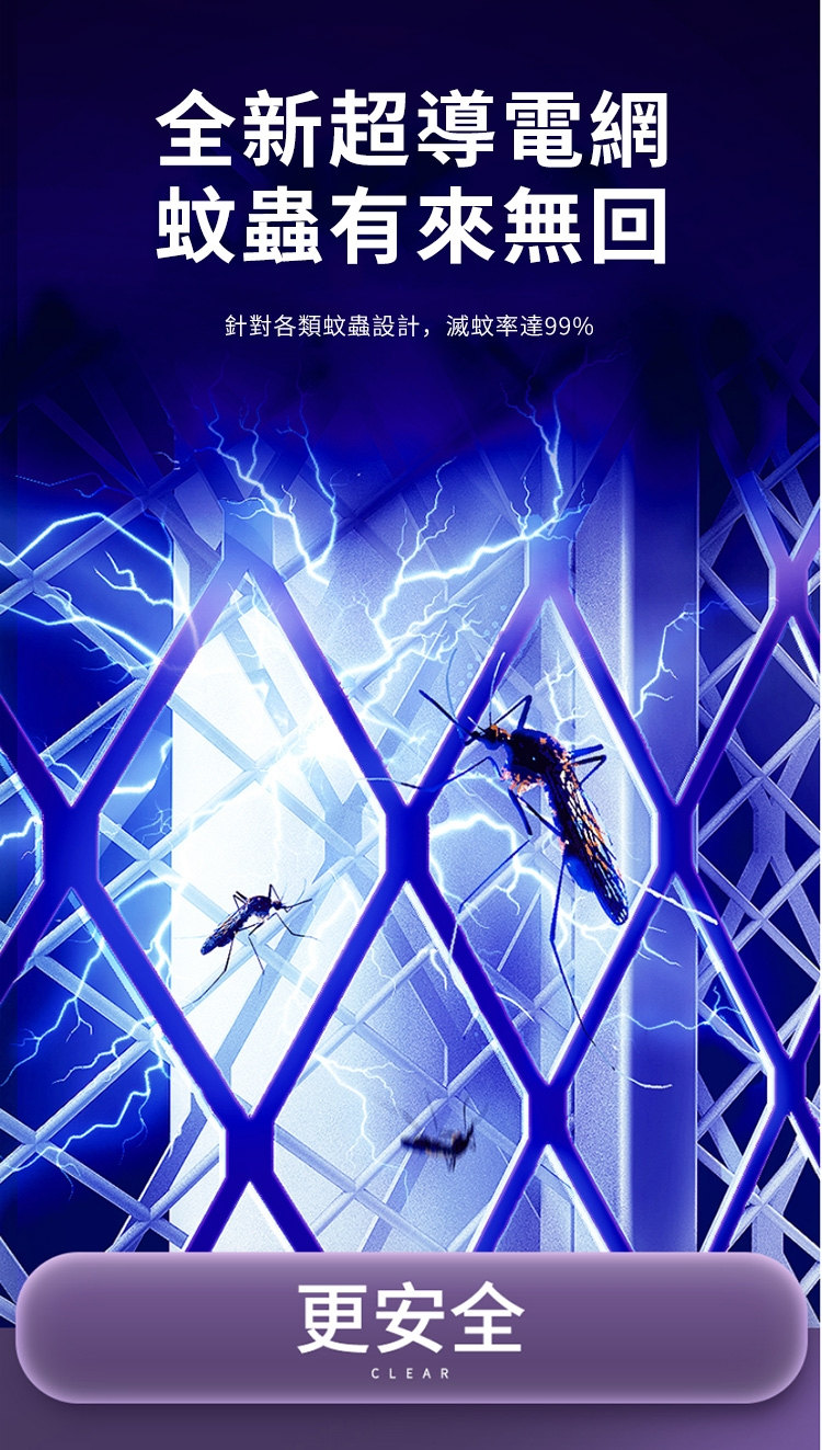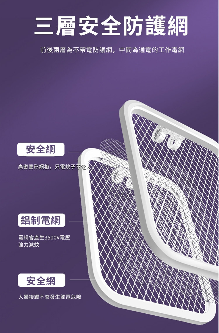 • 三層網面設計,只電蚊蟲不電人