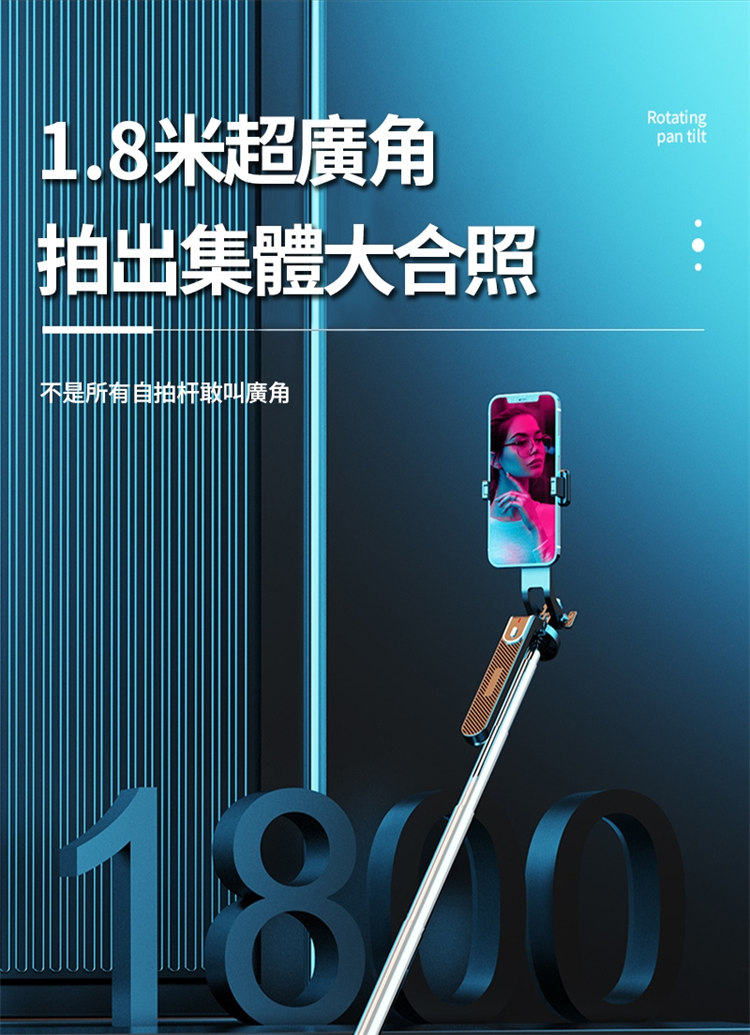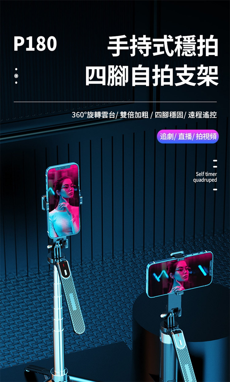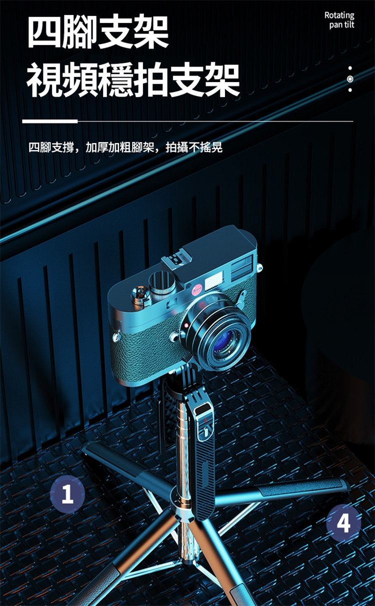 全功能直播自拍穩拍雲台支架 | 無線藍芽遙控 | 360°旋轉雲台 | 超穩四腳支架 | 1.8米超廣角自拍 | 航空級奈米合金 | 全功能旗艦級手機腳架支架