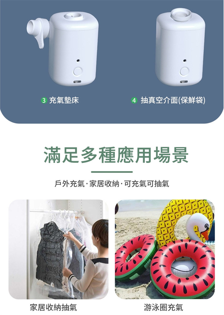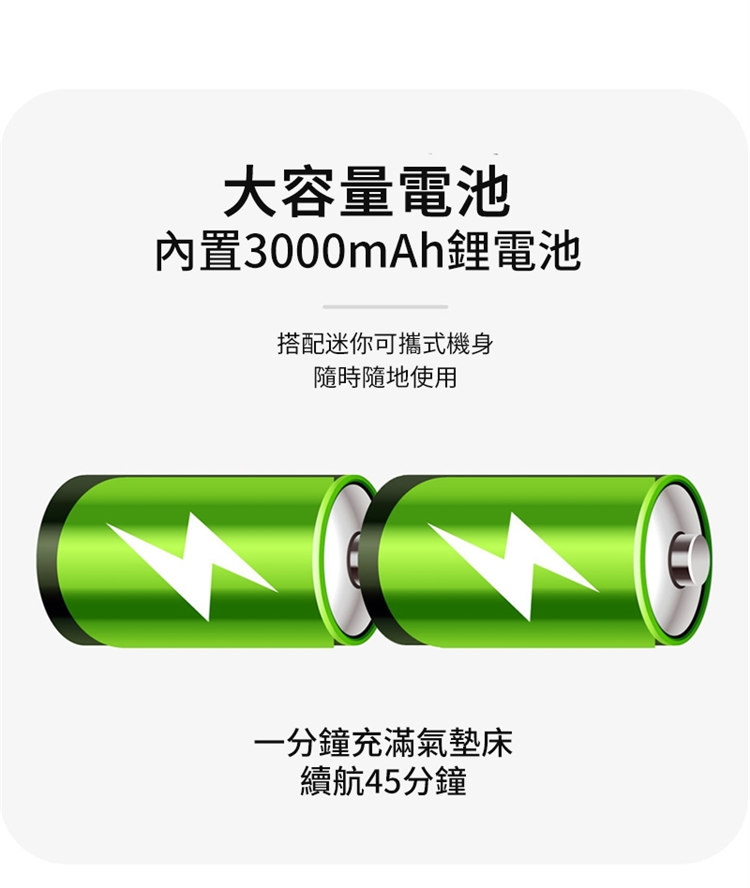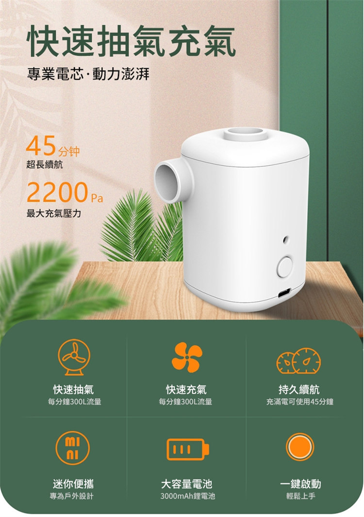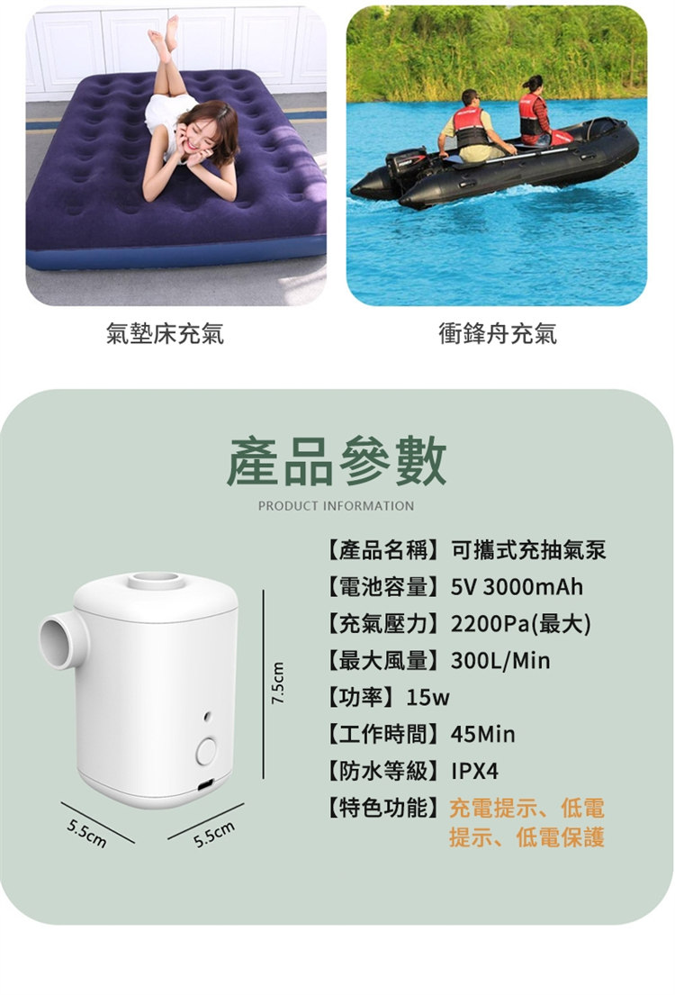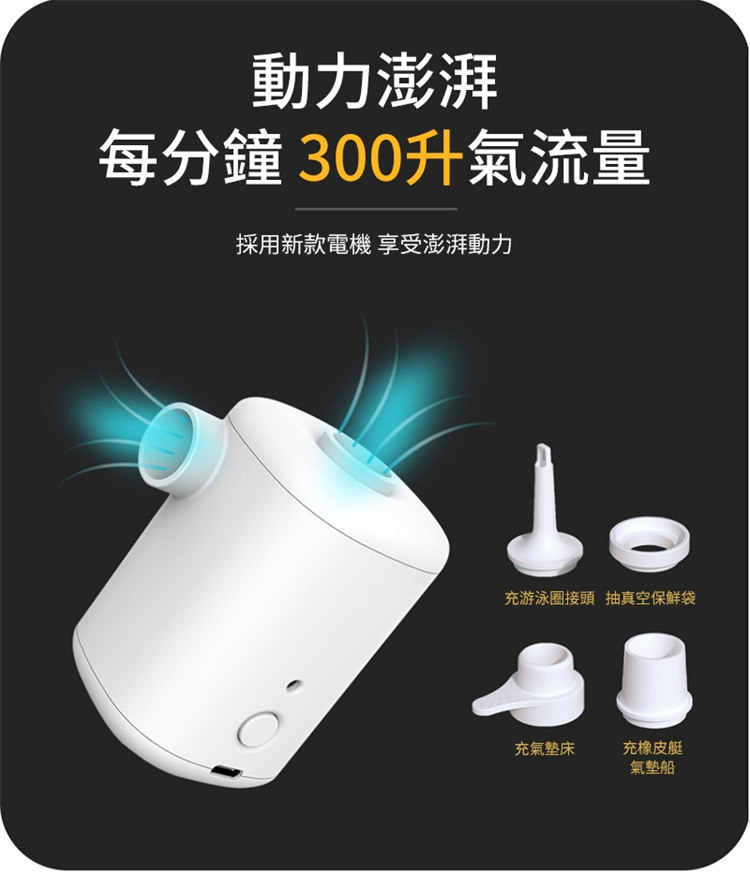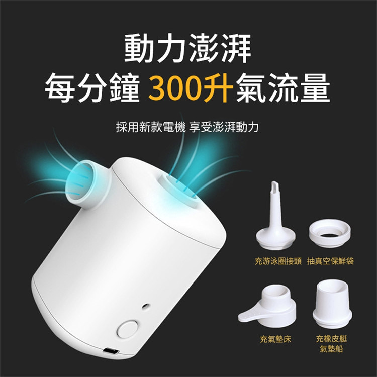 專業級游泳圈氣墊床橡皮艇壓縮袋充氣抽氣泵 | 抽氣充氣二合一 | 專業電芯澎湃動力 | 300L快速充抽氣 | 無線便攜長續航 | 戶外便攜無線抽氣充氣泵
