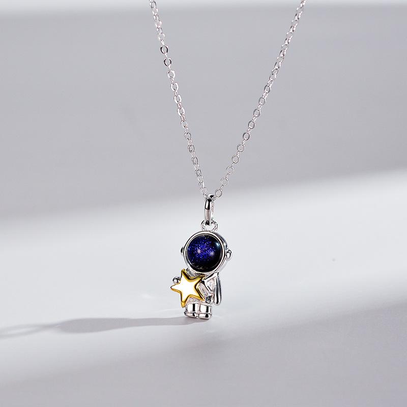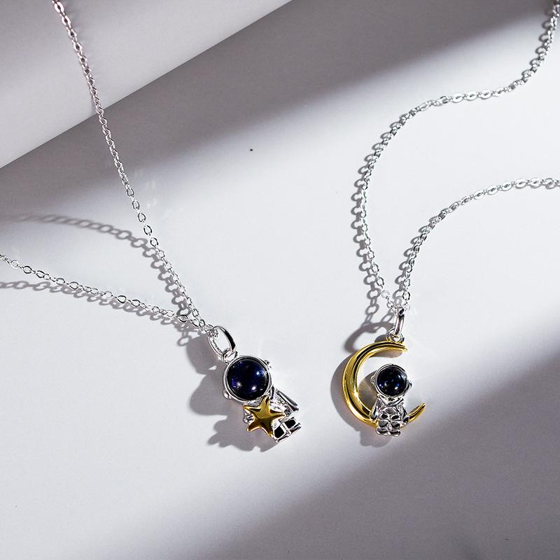 【摘星太空人】【情侶項鍊】S925純銀唯美浪漫摘星太空人男女情侶項鍊