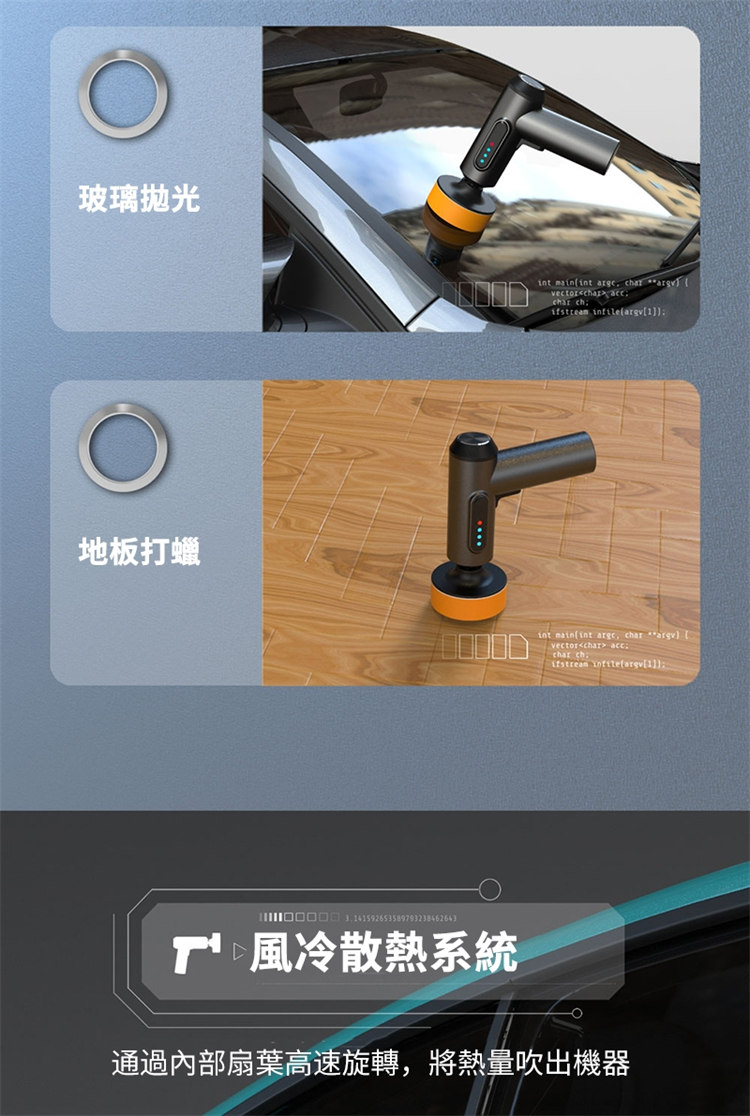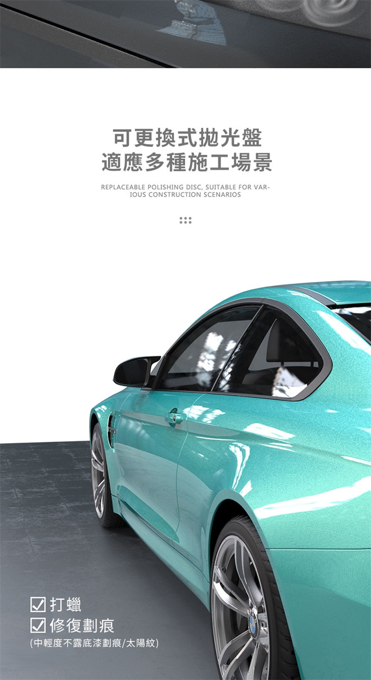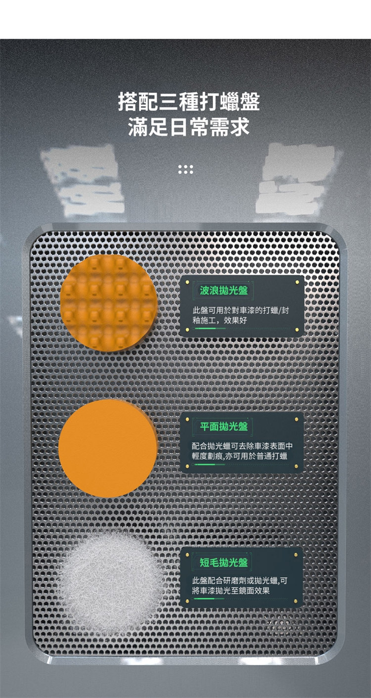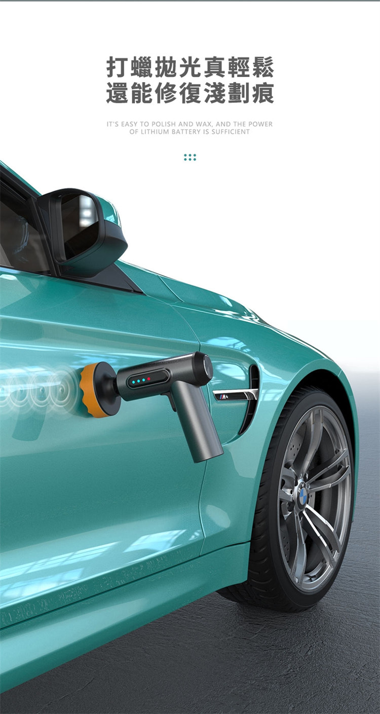 專業級不傷車汽車打蠟拋光機 | 修復淺劃痕 | 高速稀土電機 | 耐磨合金齒輪 | 超強扭矩不卡頓 | 高強動力電池 | 風冷散熱系統 | AI智慧汽車打蠟拋光機