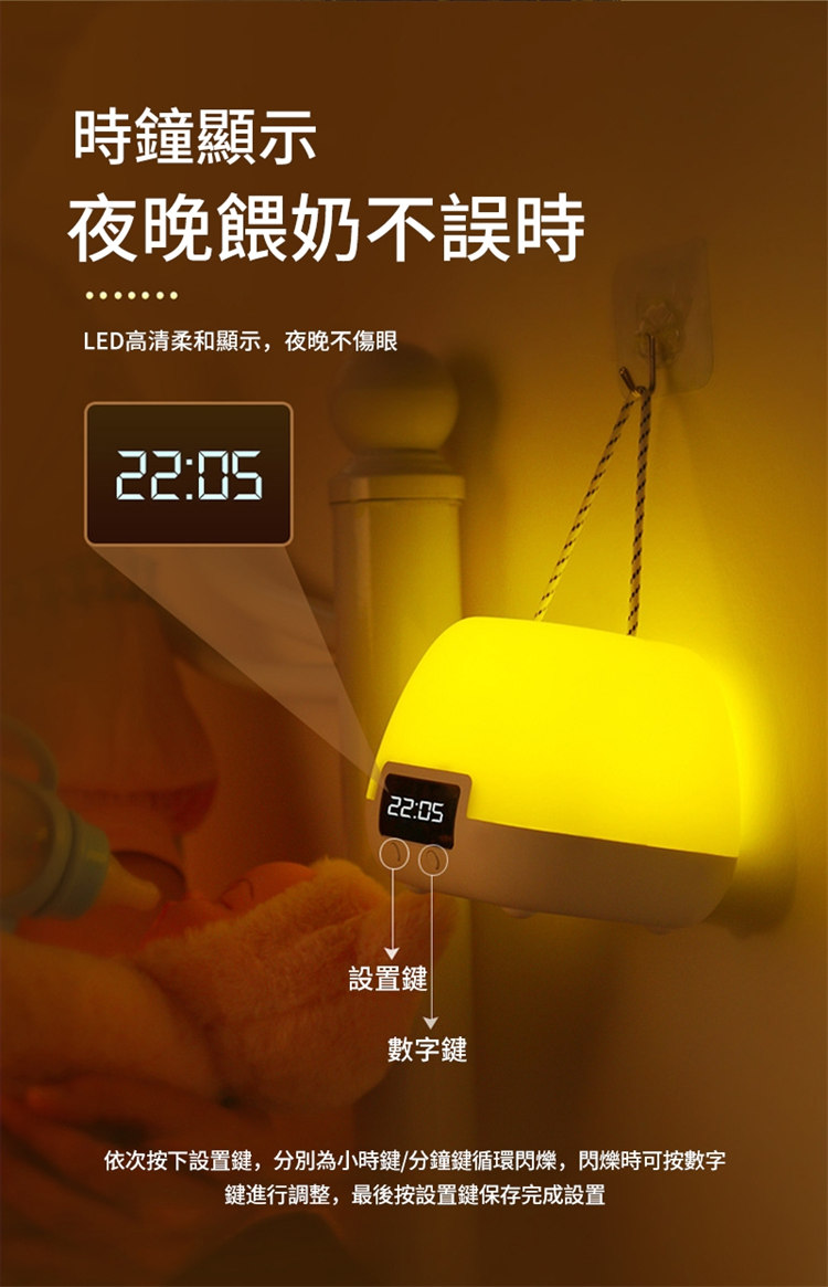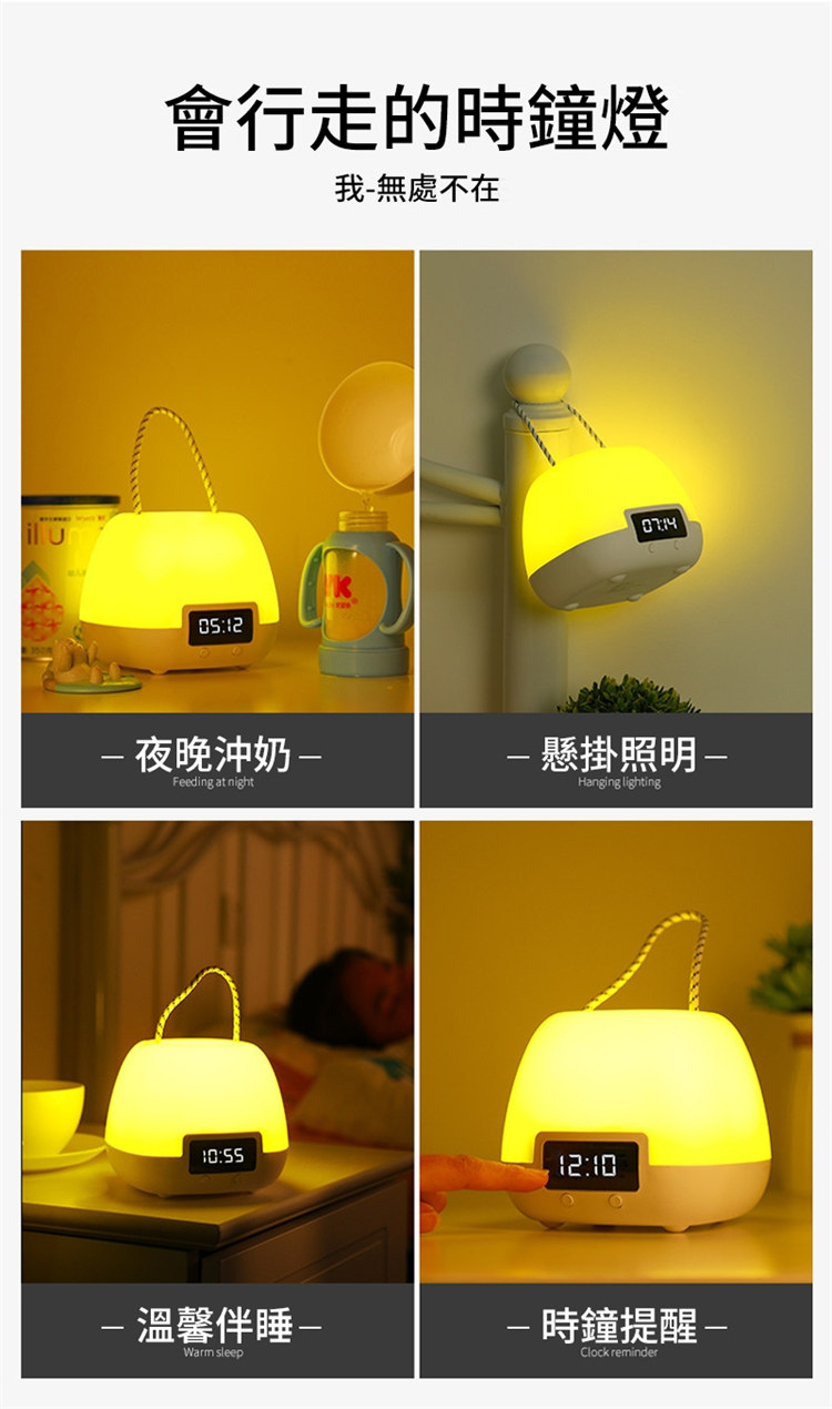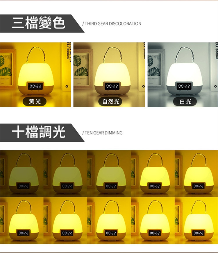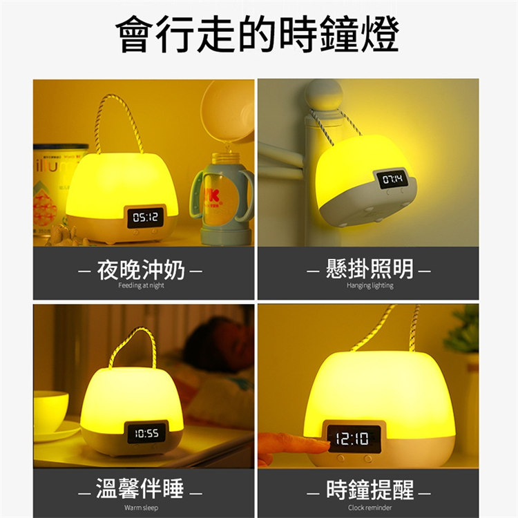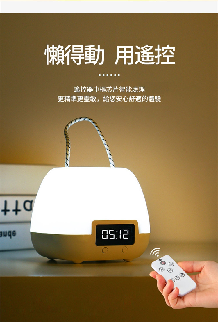 全功能無線伴睡遙控小夜燈 | 健康護眼 | LED時鐘功能 | 三檔變色十檔調光 | 定時開關 | 可立可掛 | 溫柔手提無頻閃LED時鐘小夜燈