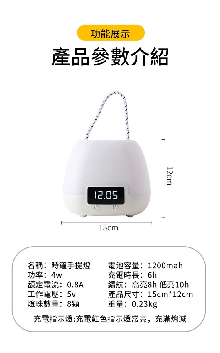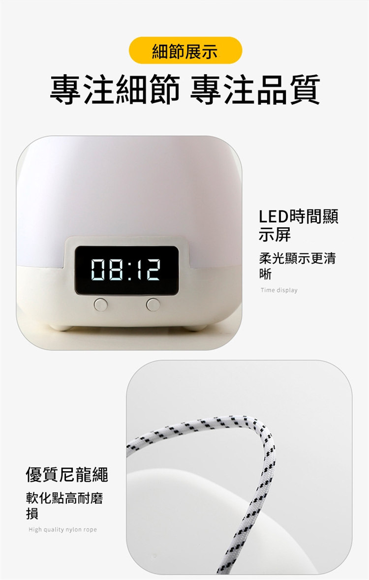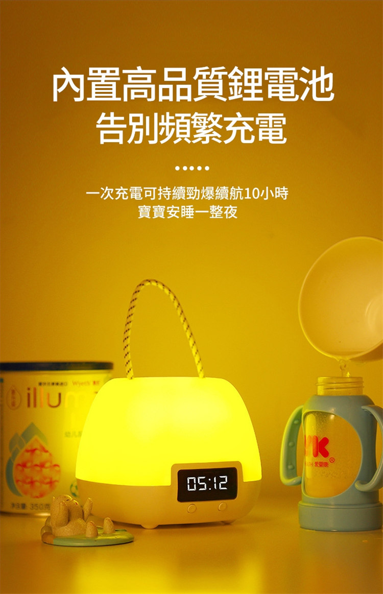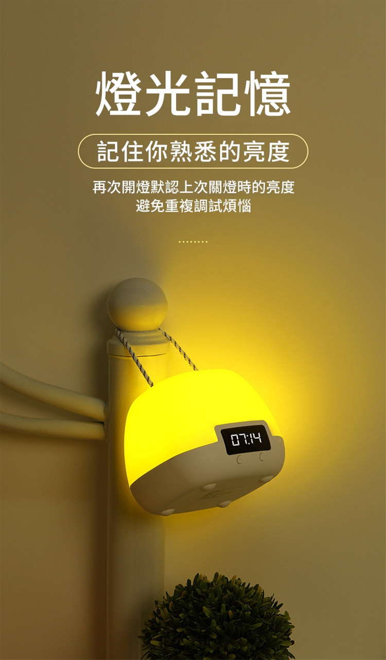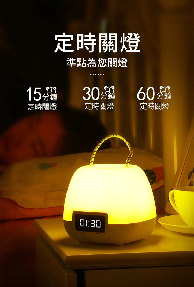 全功能無線伴睡遙控小夜燈 | 健康護眼 | LED時鐘功能 | 三檔變色十檔調光 | 定時開關 | 可立可掛 | 溫柔手提無頻閃LED時鐘小夜燈
