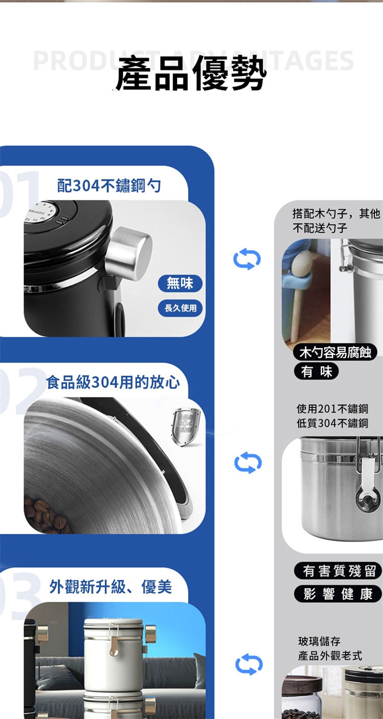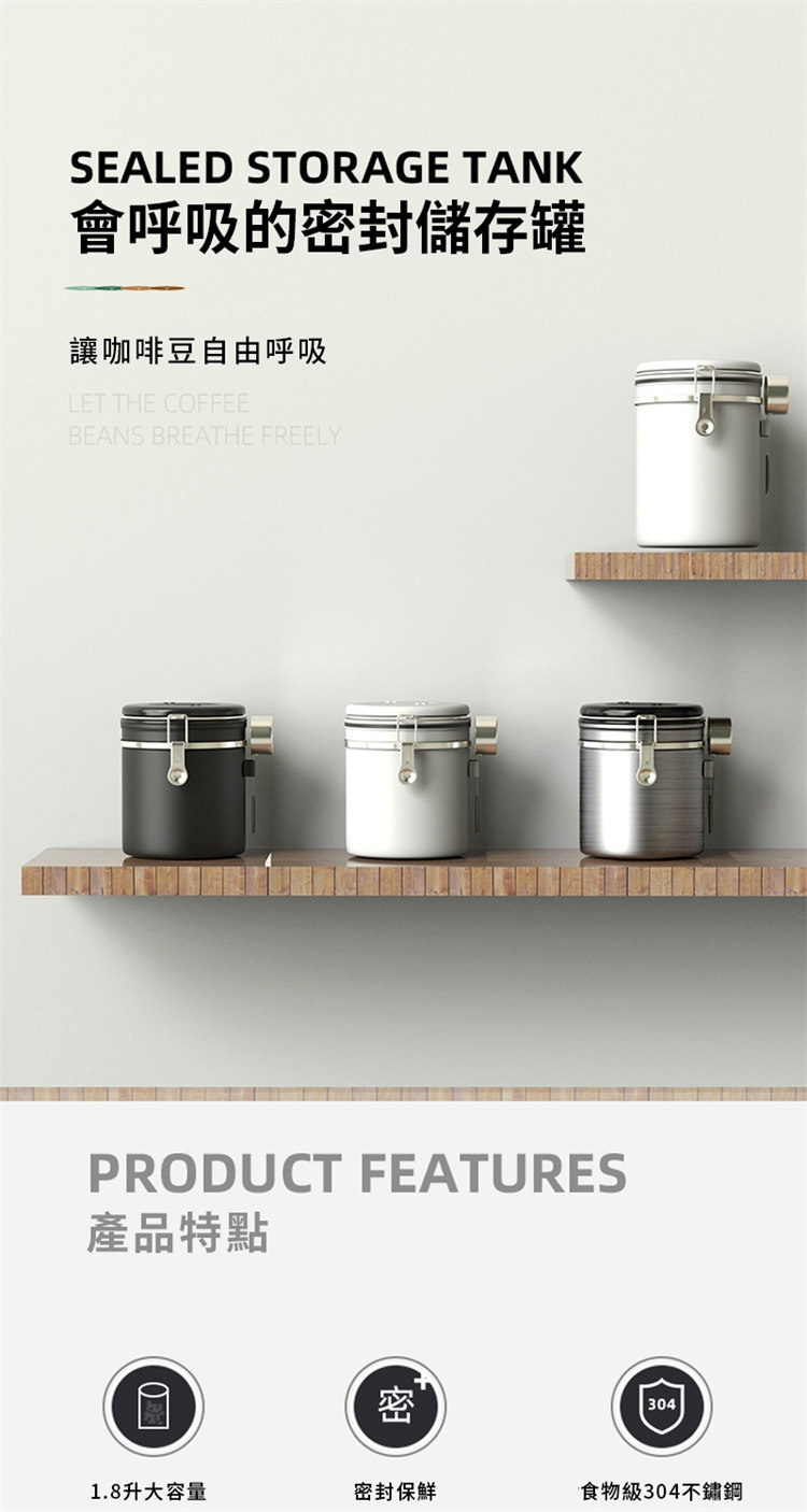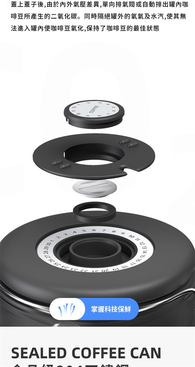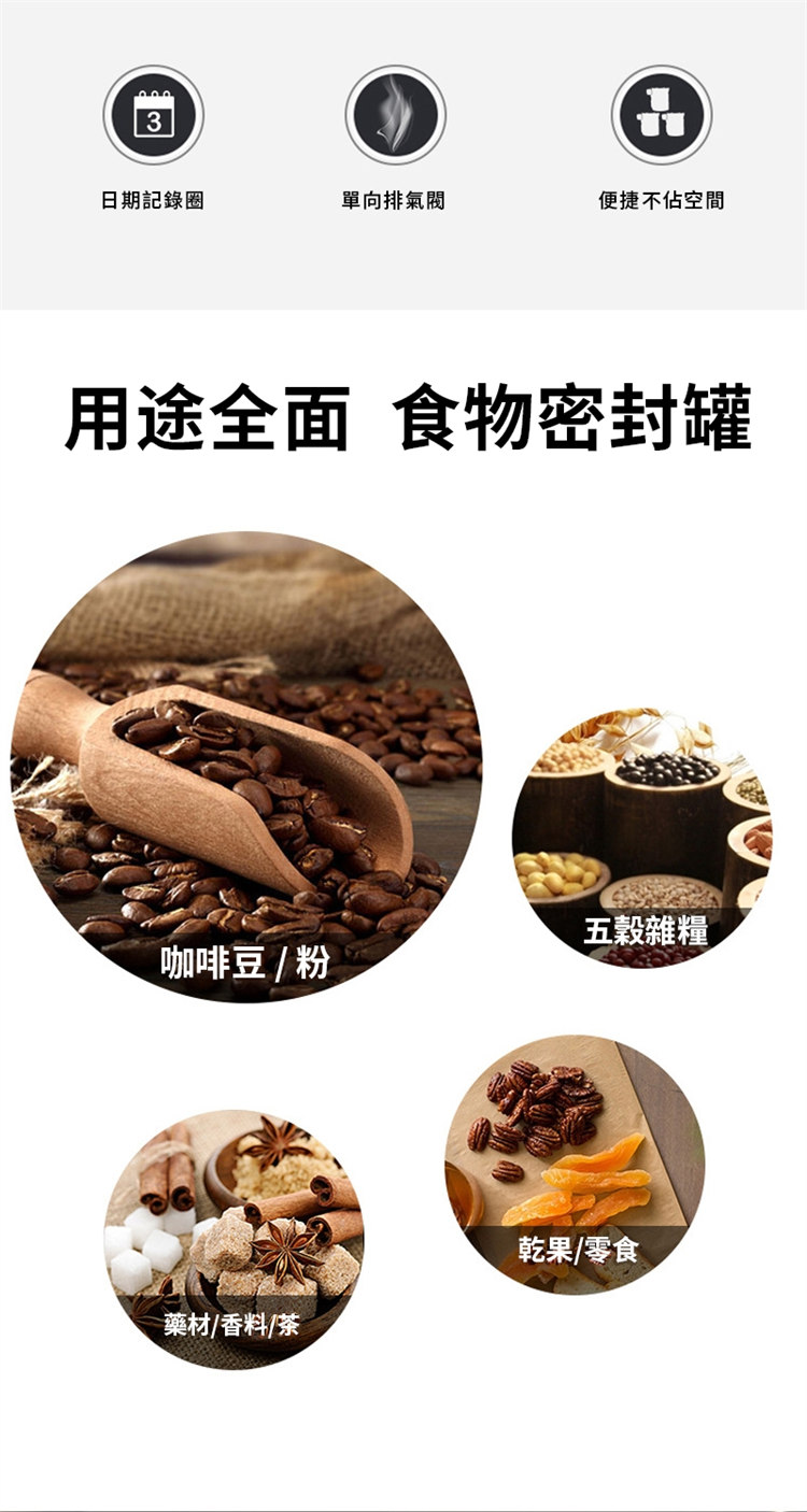 日式專業級密封保鮮儲物罐 | 單向排氣保鮮閥 | 食品級304不鏽鋼 | 貼心日期記錄圈 | 防酸鏽防腐蝕 | 專業咖啡豆五穀雜糧藥材乾果茶葉保鮮儲存罐