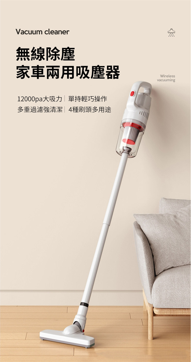 • 家車兩用,12000pa大吸力