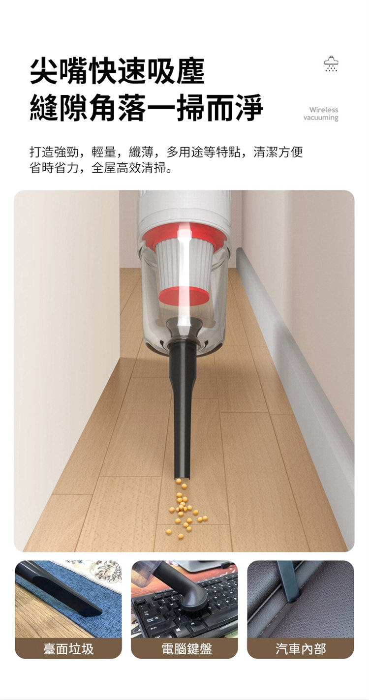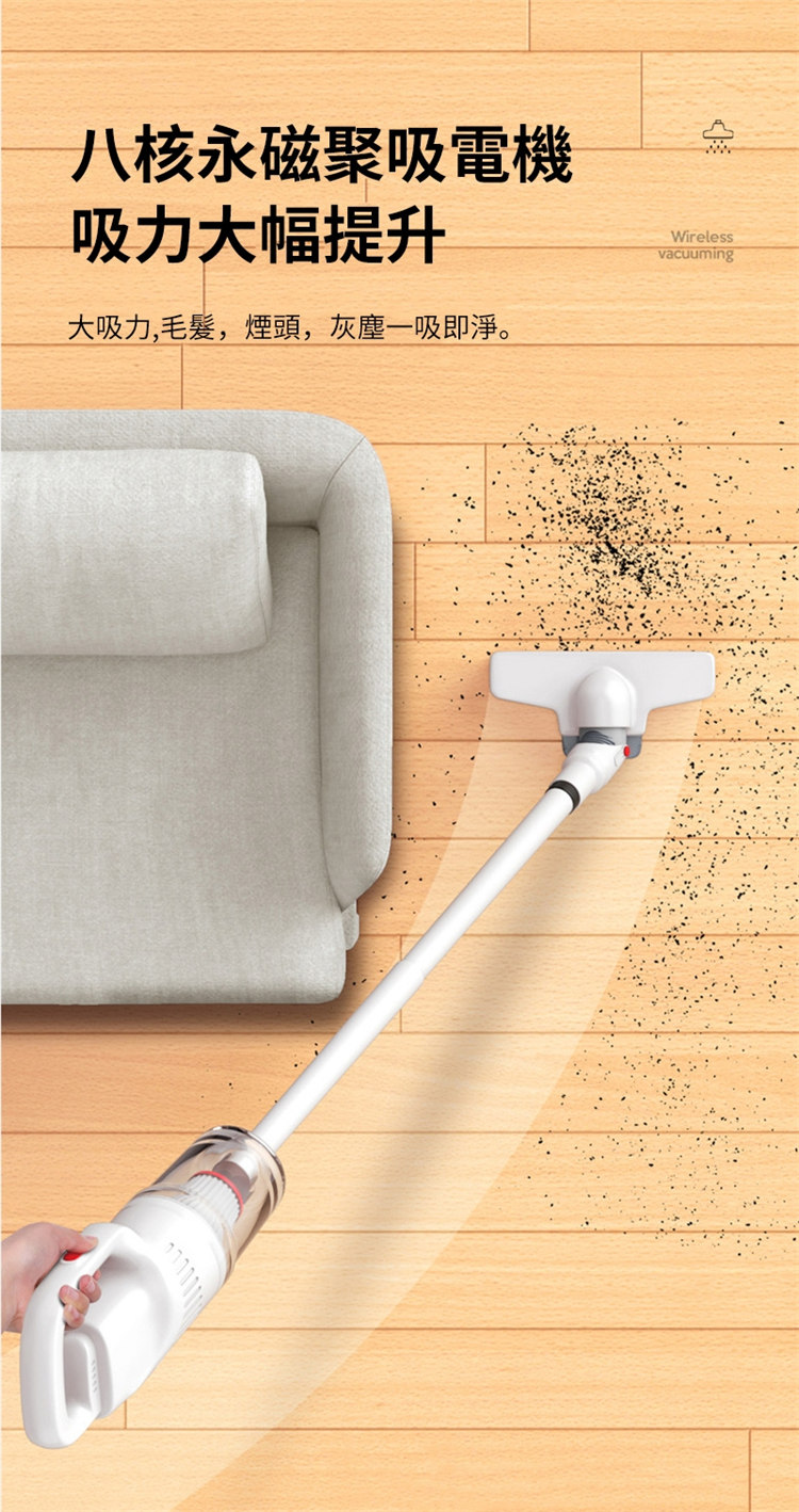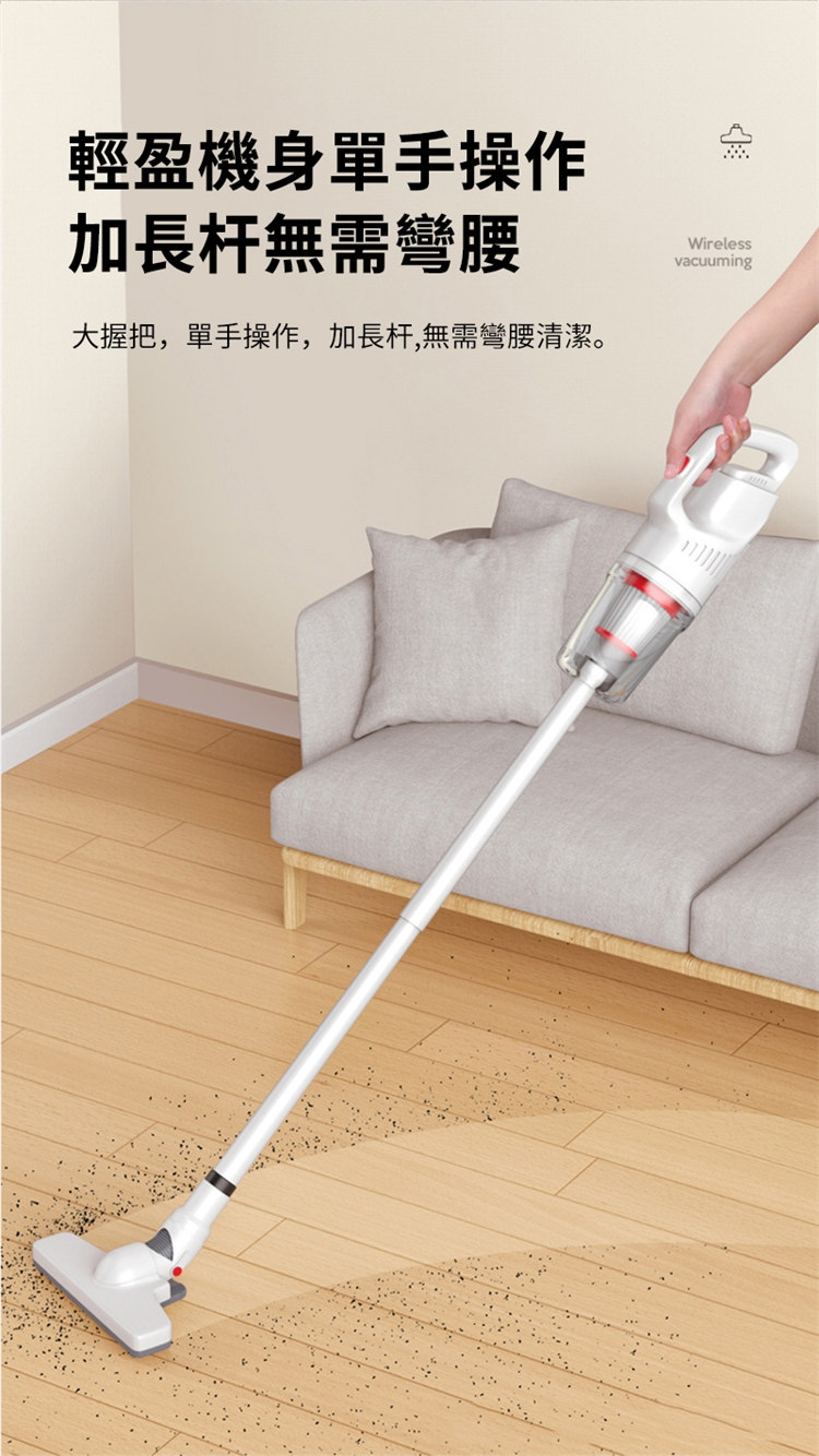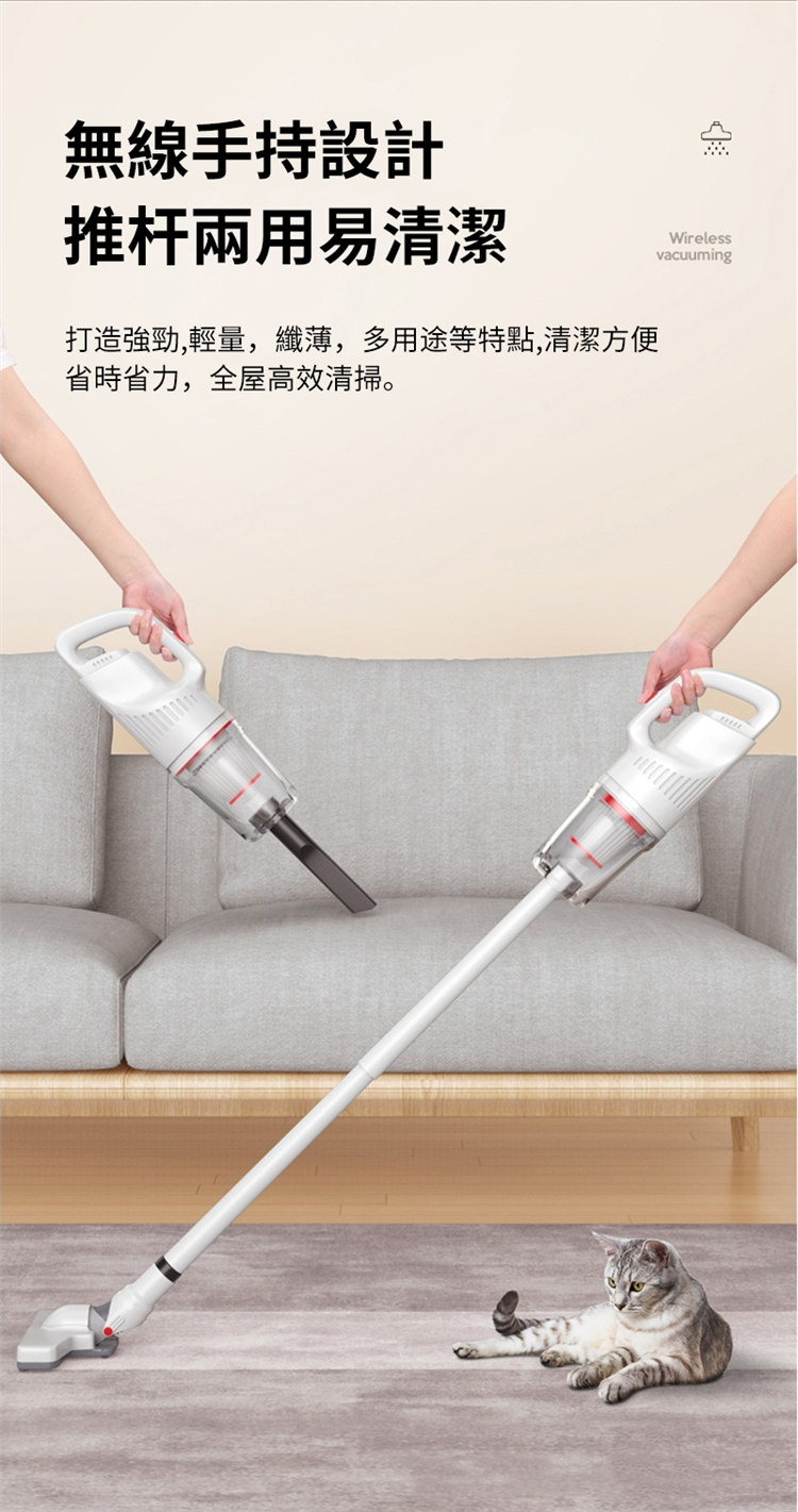 • 無線手持設計,推杆兩用易清潔