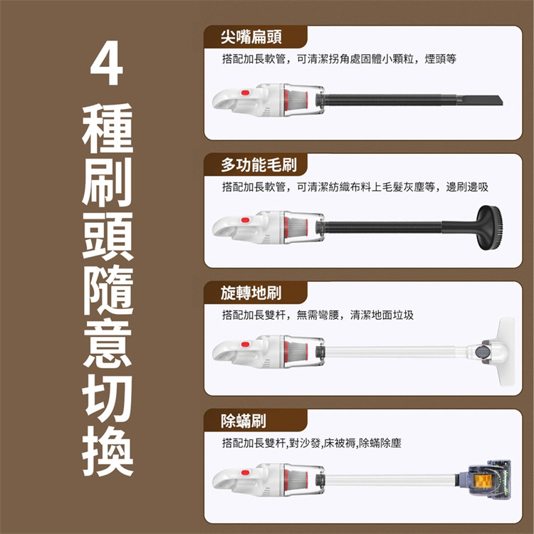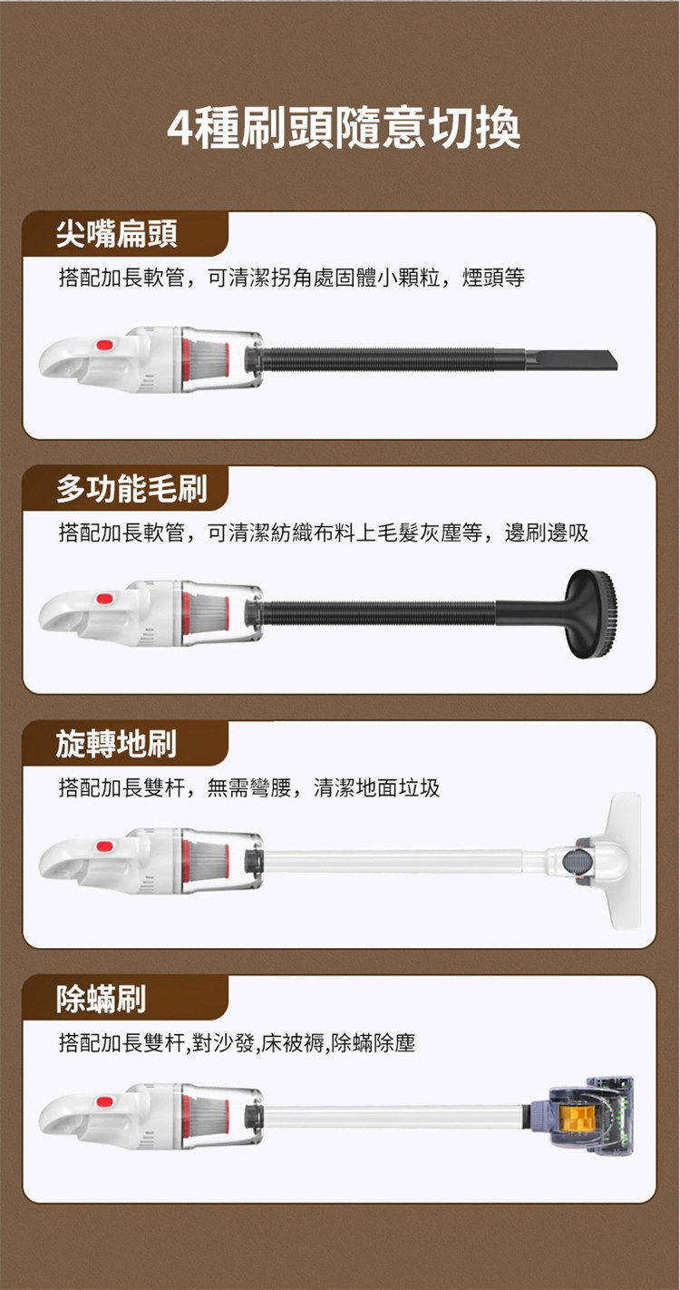 • 除蟎除塵,4種刷頭隨意切換