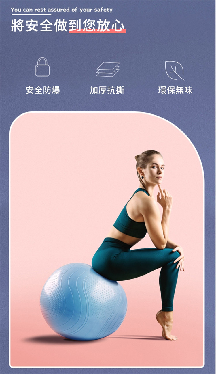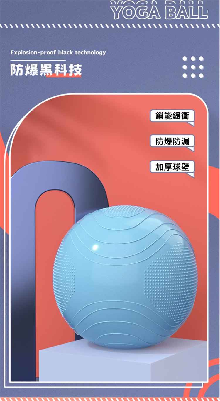 教練級鎖能緩衝防滑瑜伽球 | 環保母嬰級PVC | 內建絲網結構 | 超強抗壓安全防爆 | 加厚球壁質感升級 | 質感升級防刺防爆健身訓練助產瑜伽球