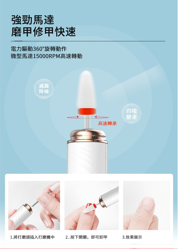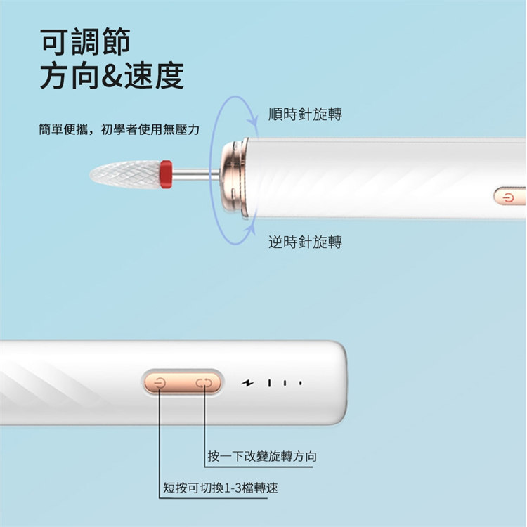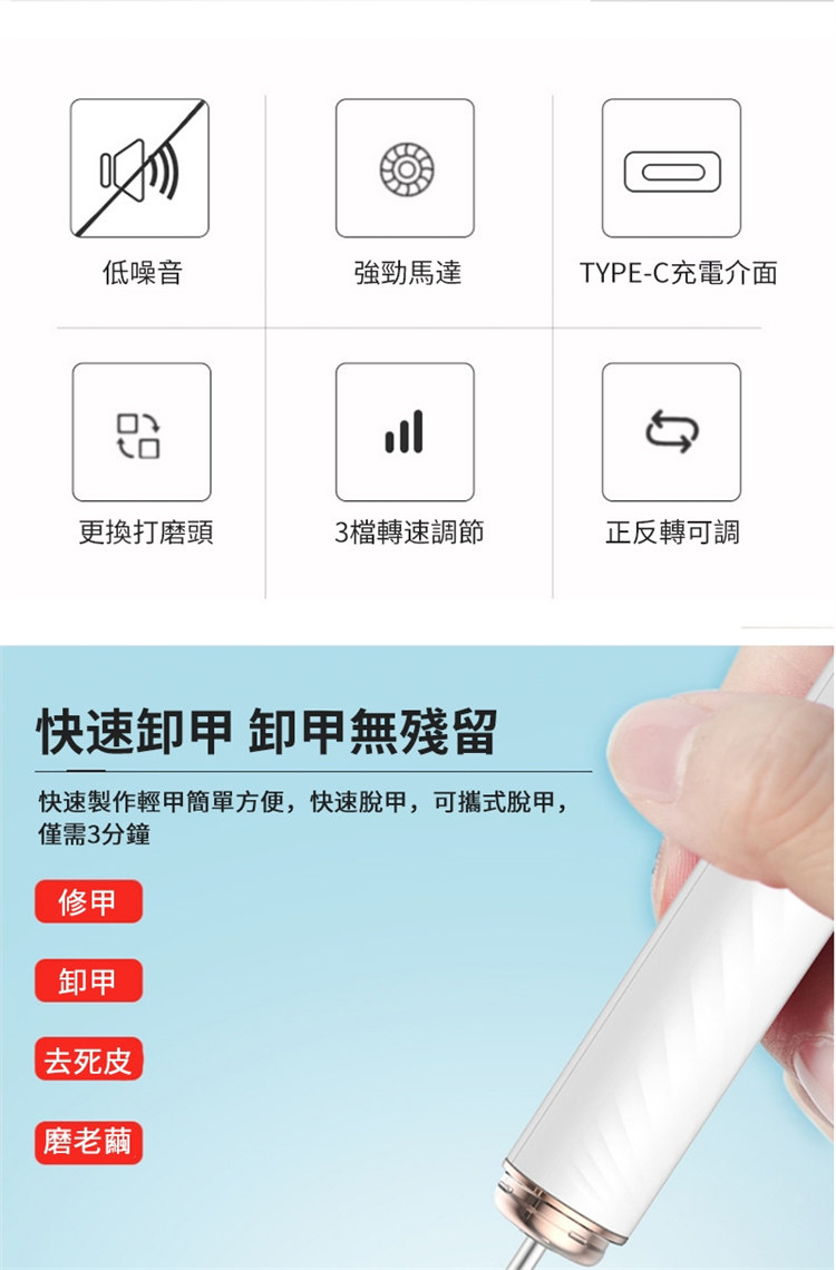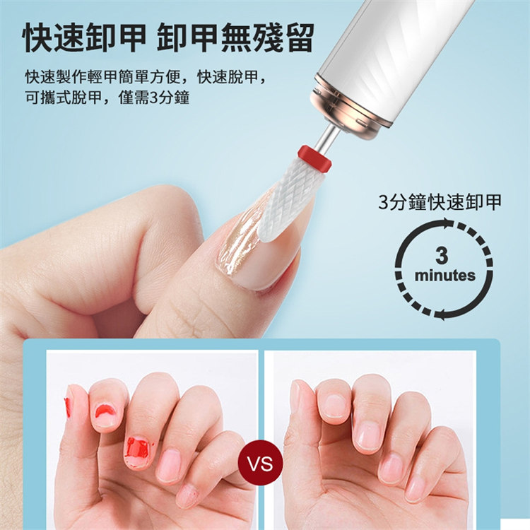 美甲店級全功能修甲卸甲美甲儀打磨筆 | 3分鐘快速卸甲去死皮磨老繭 | 高轉速強勁馬達 | 三檔轉速調節 | 初學無壓力上手 | 送多款打磨頭