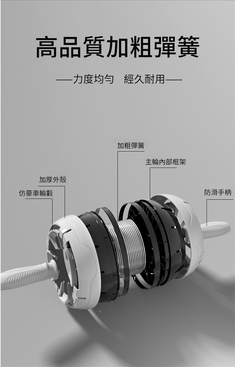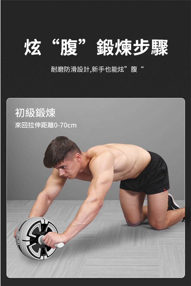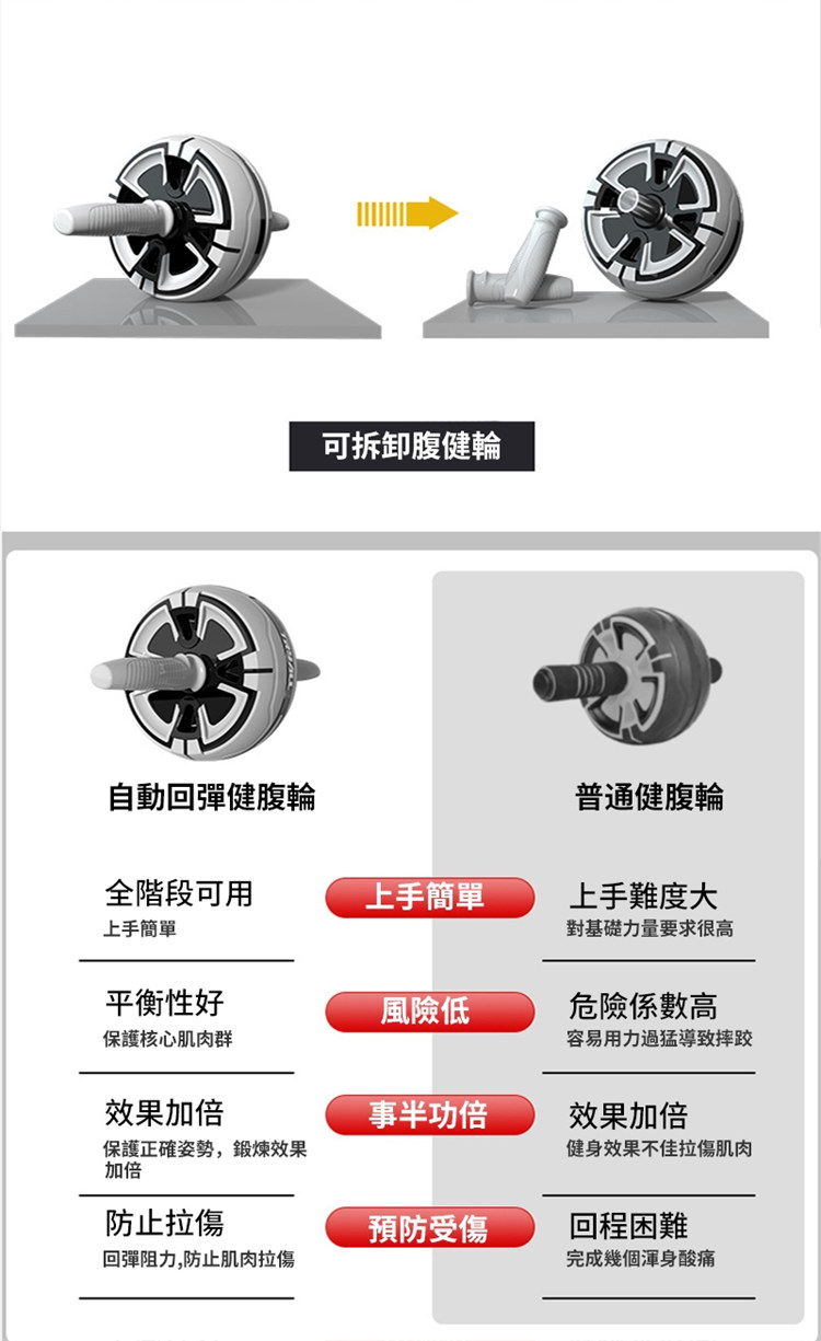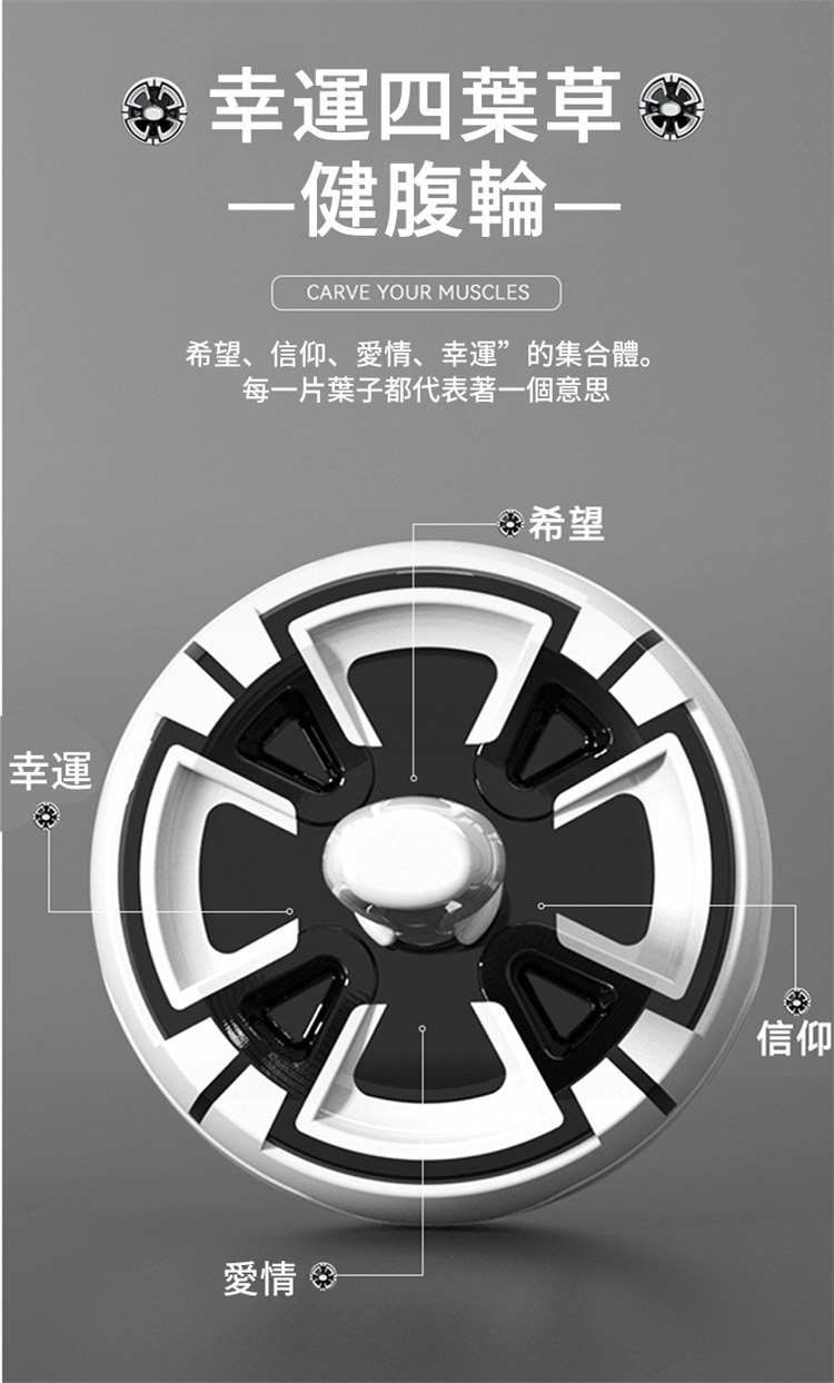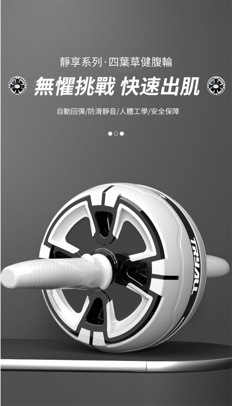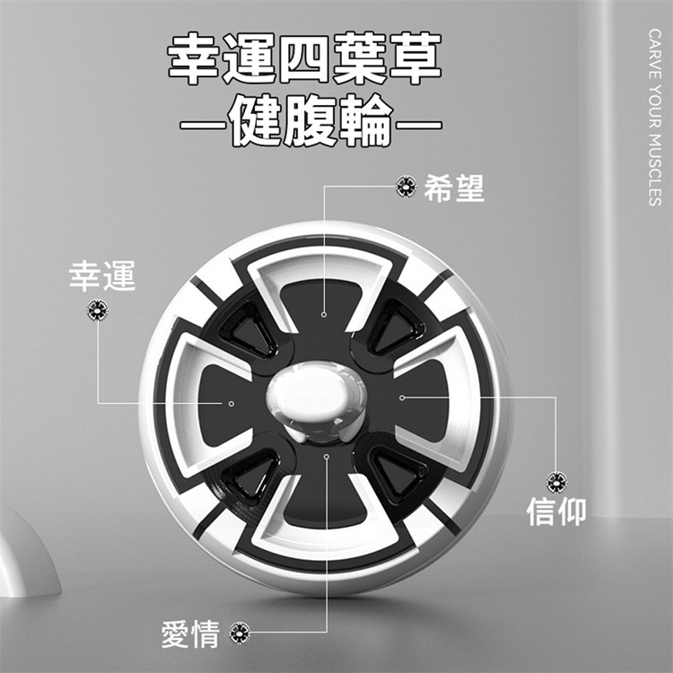 專業級快速出肌健腹輪 | 自動回彈智慧剎車 | 多角度訓練全腹出肌 | 高品質加粗彈簧 | 汽車輪胎紋路 | 靜音防滑 | 四葉草專業男女健腹輪