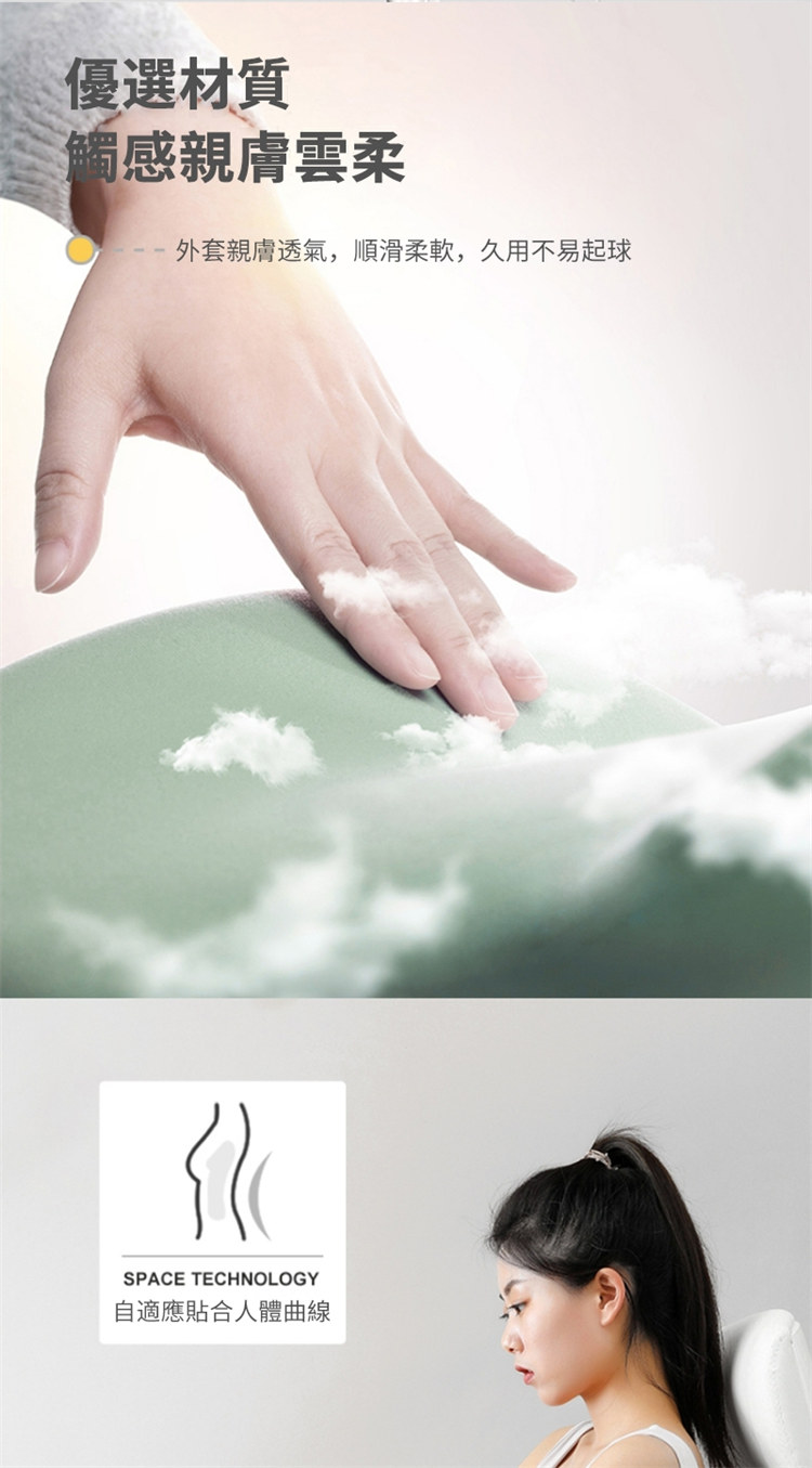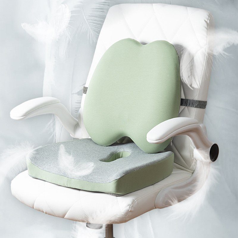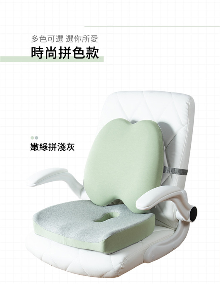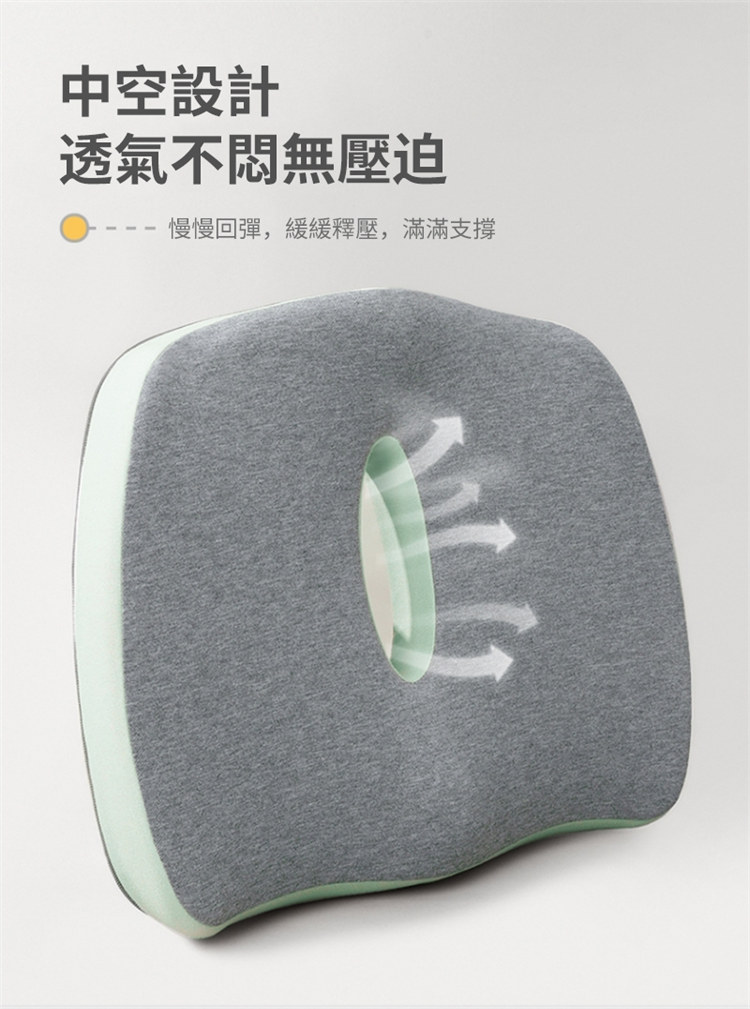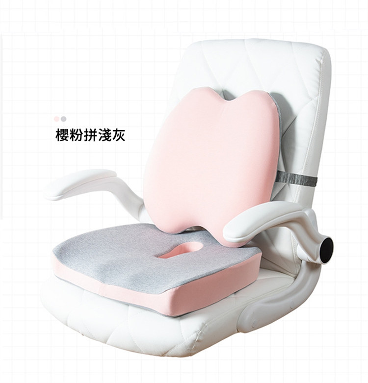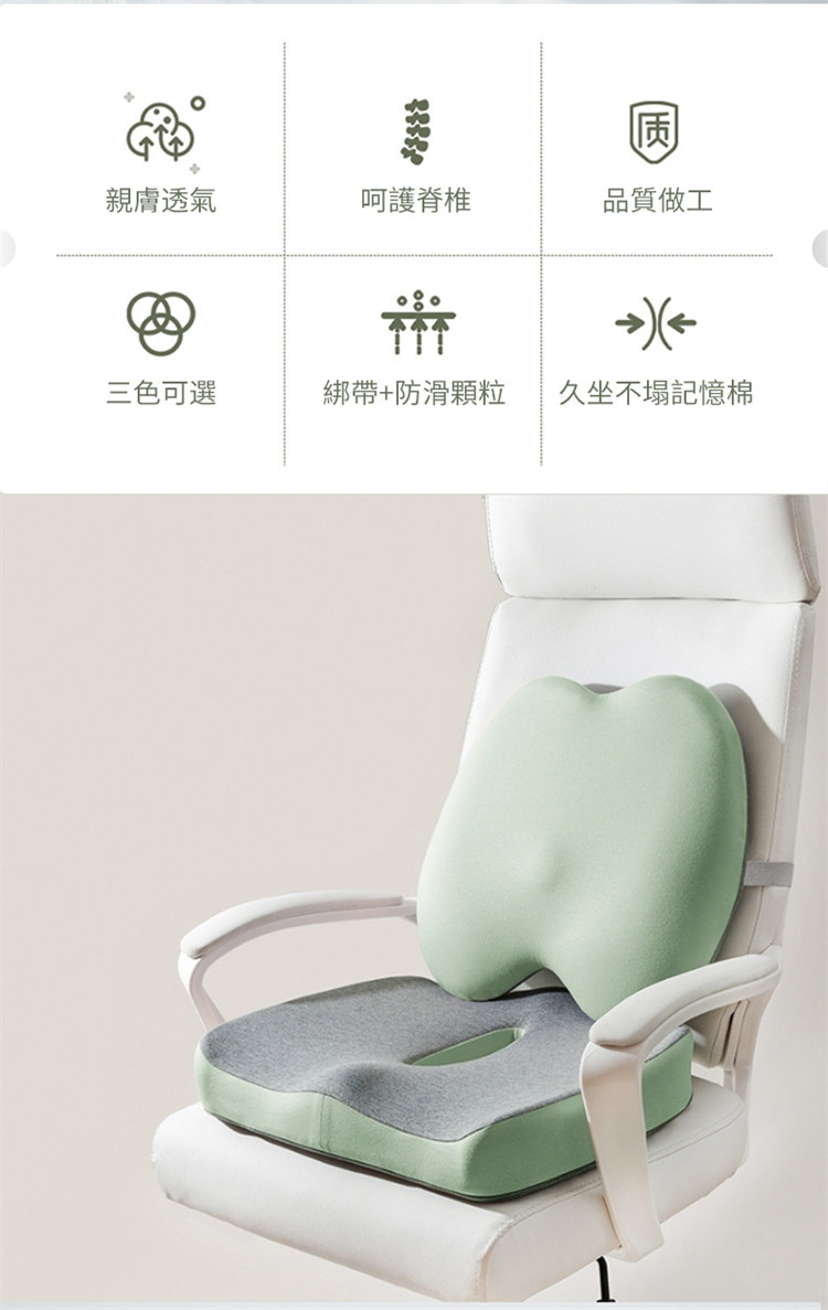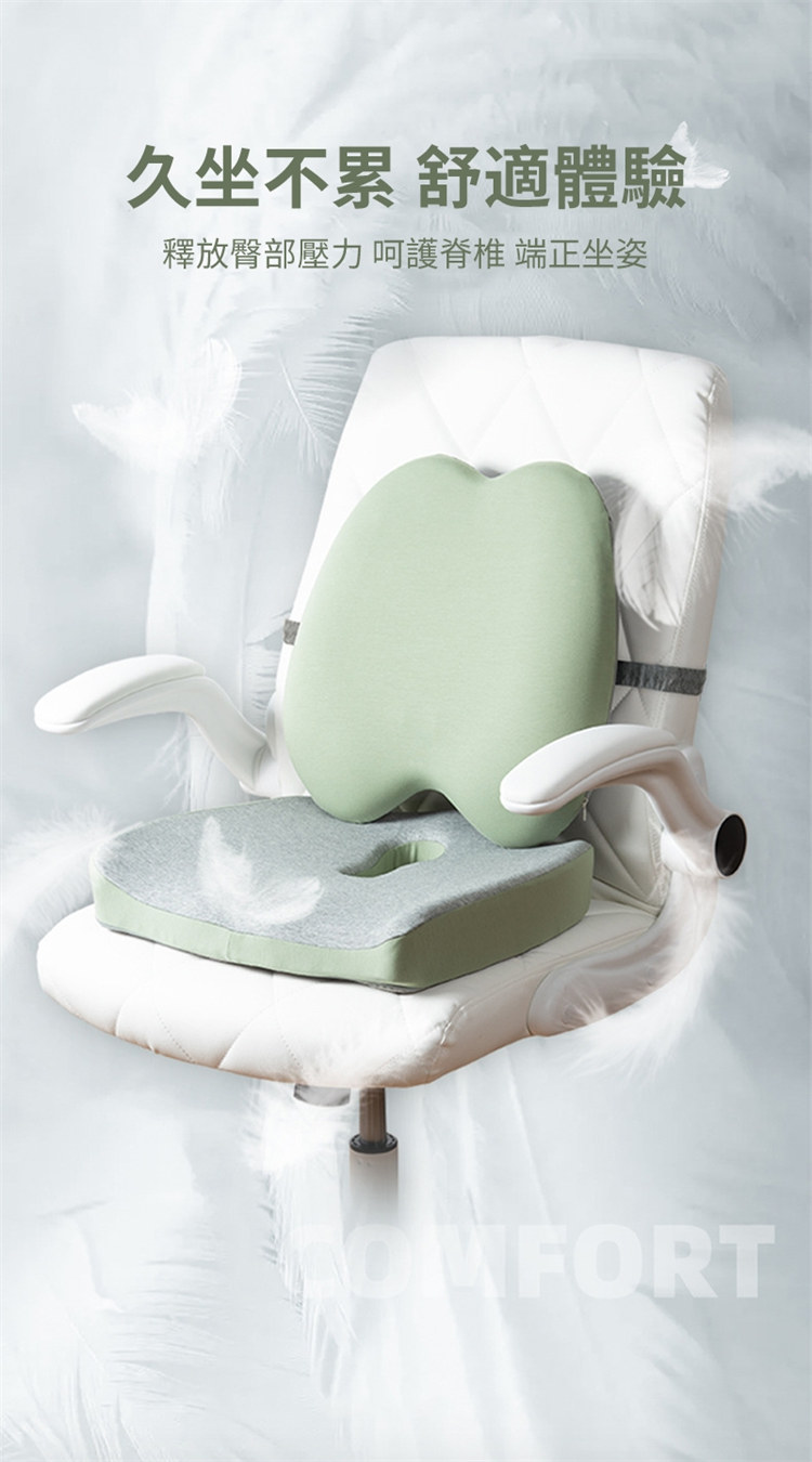 雲感工學抑菌坐墊腰靠套組 | NASA航空級記憶棉芯 | 中空設計呵護尾椎痔瘡 | 自適應貼合人體曲線 | 防污抗菌內襯 | 辦公室居家減壓坐墊靠背套組