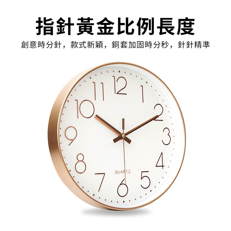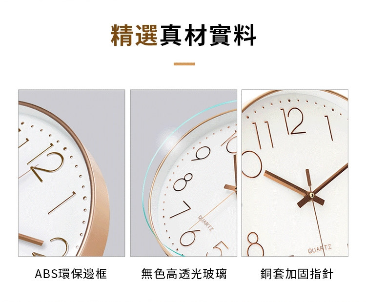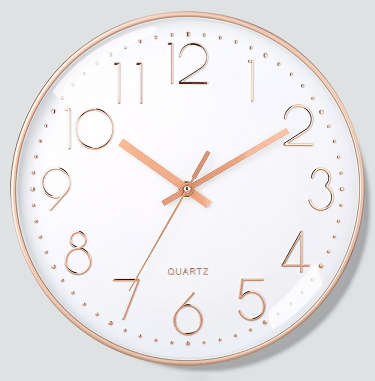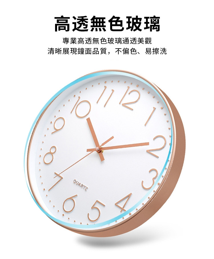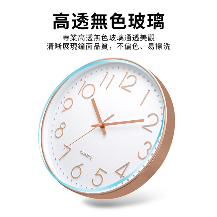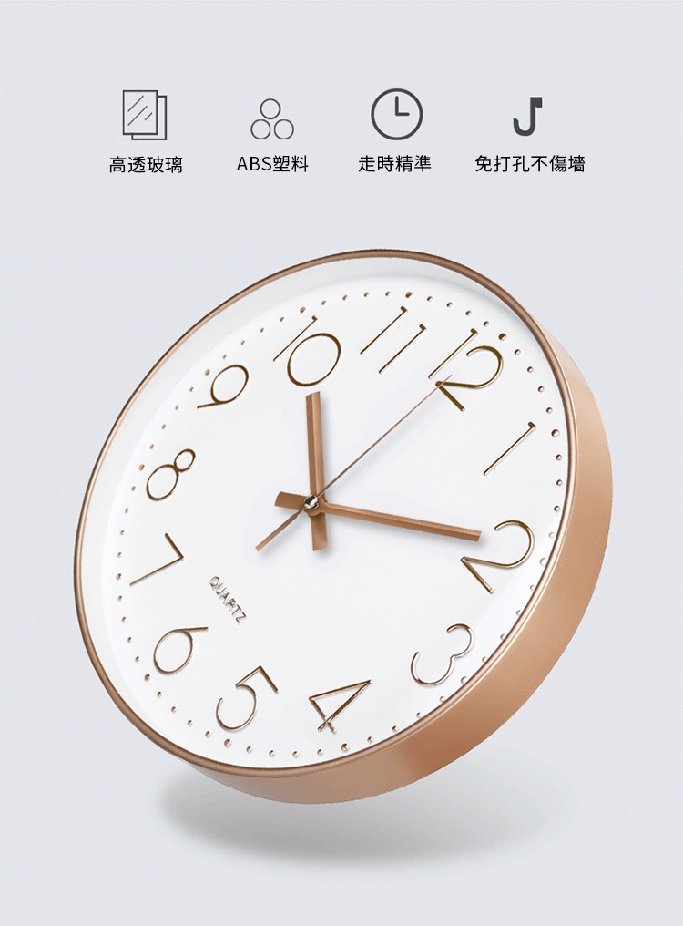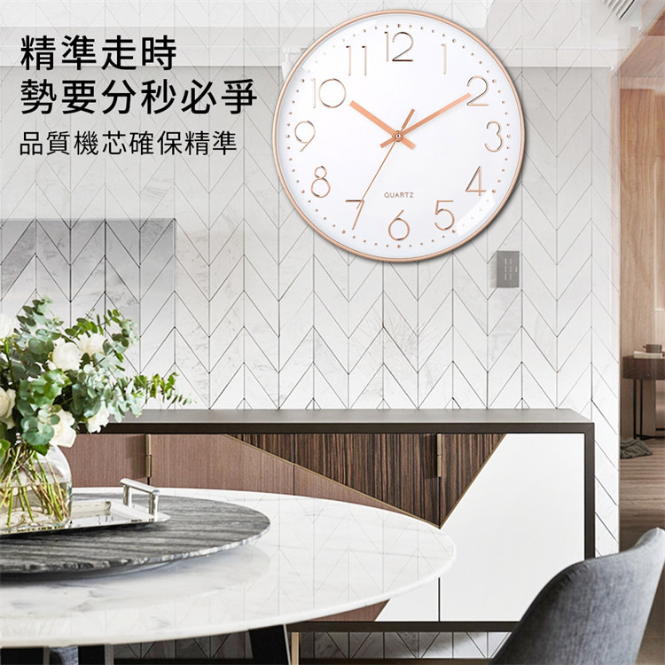 北歐輕奢玫瑰金12吋靜音時鐘 | 立體大數字掛鐘 | ABS環保邊框 | 加固銅套指針 | 高透無色有機玻璃 | 北歐素簡美型立體大數字客廳臥室掛鐘壁鐘