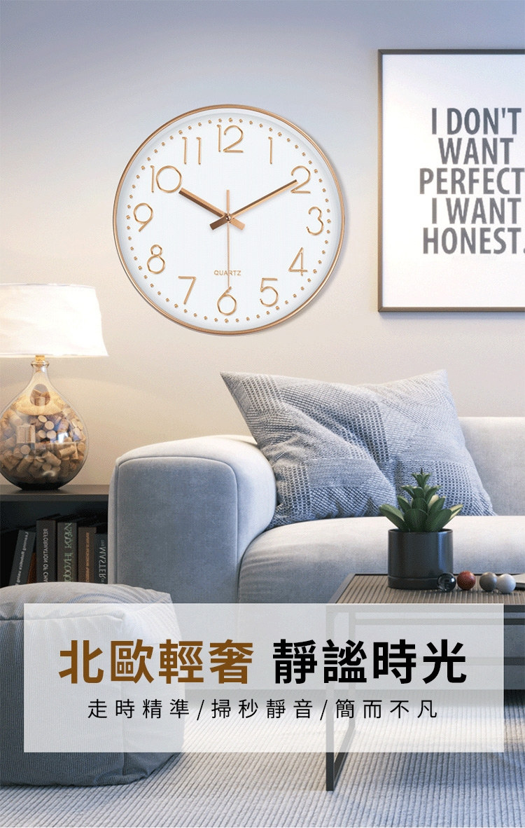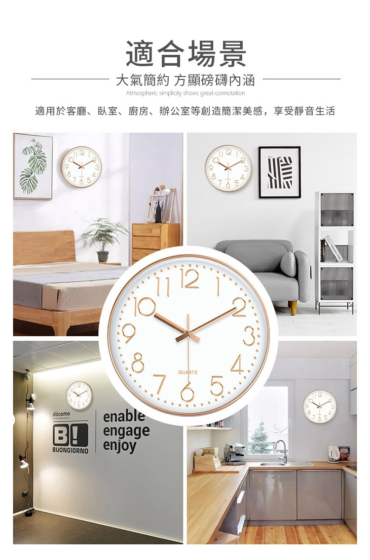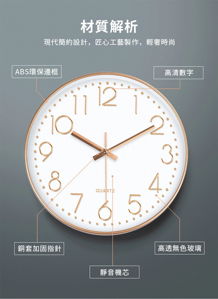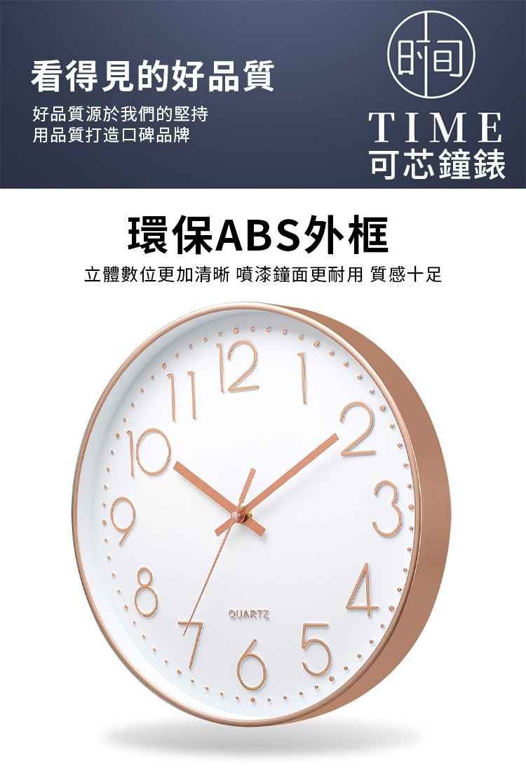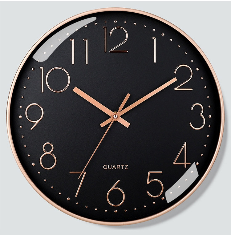 北歐輕奢玫瑰金12吋靜音時鐘 | 立體大數字掛鐘 | ABS環保邊框 | 加固銅套指針 | 高透無色有機玻璃 | 北歐素簡美型立體大數字客廳臥室掛鐘壁鐘