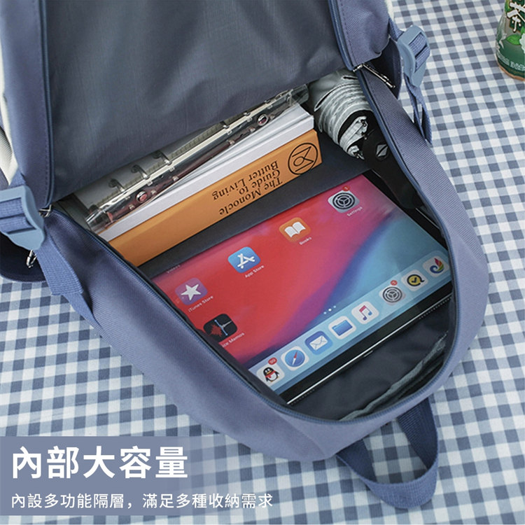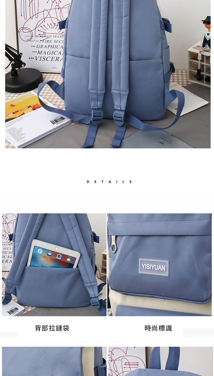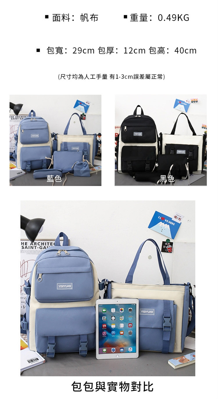 全功能後背包托特包筆袋收納包五件套組 | 防潑水牛津紡帆布 | 高強耐磨耐刮擦 | 減壓寬肩帶 | 多隔層大容量 | 韓版時尚男女後背包書包五件組