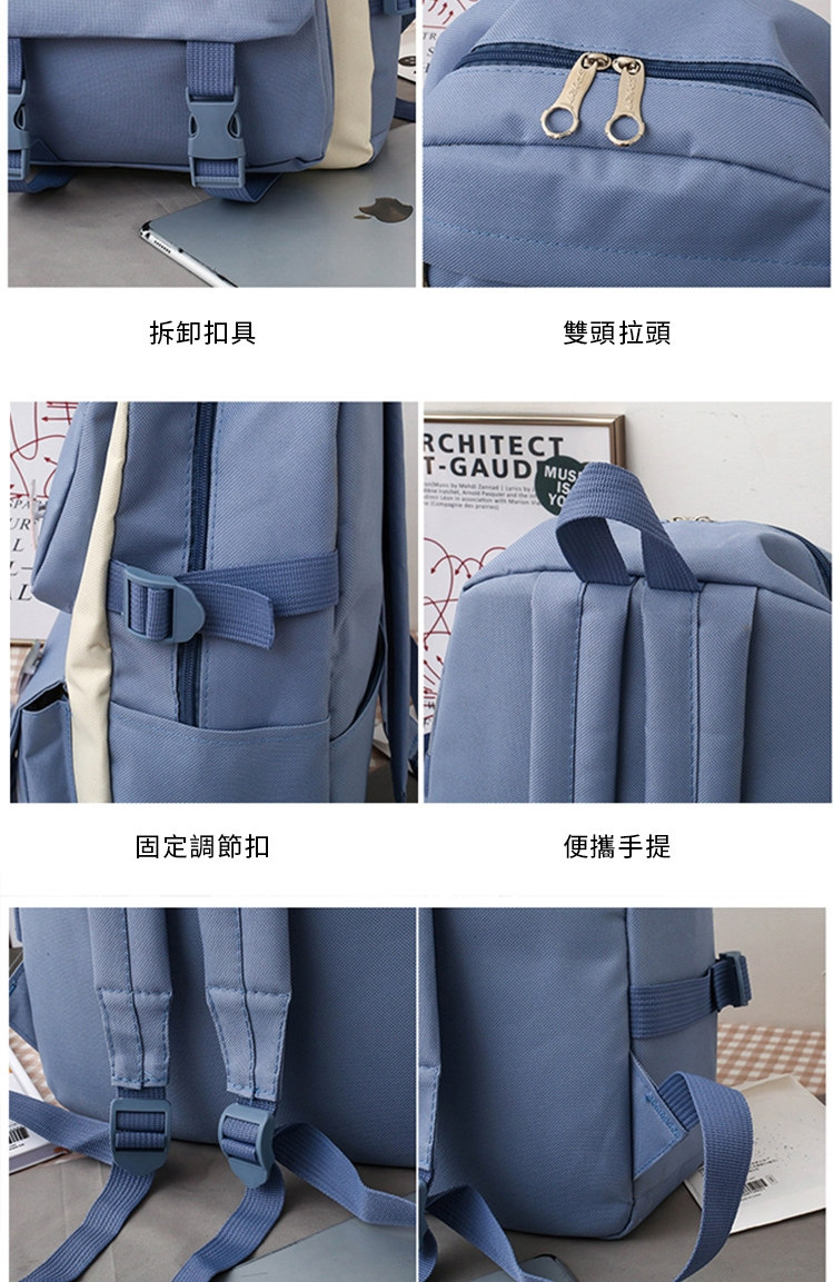 雙肩後背包+托特包+筆袋+大手拿包+小收納包