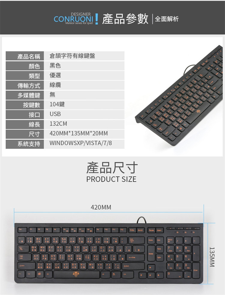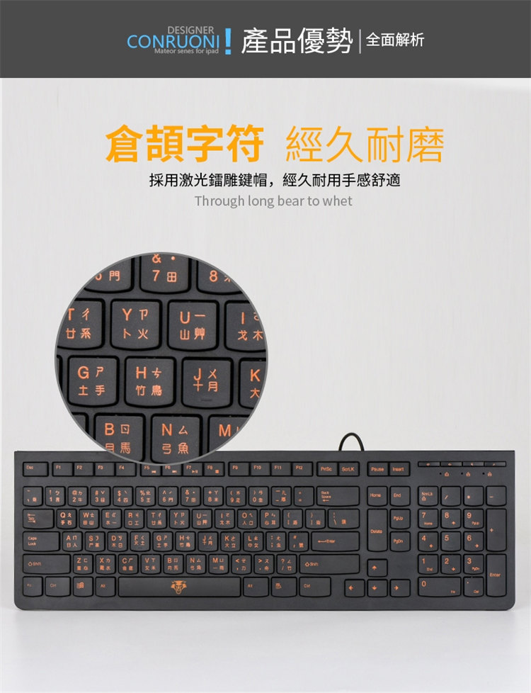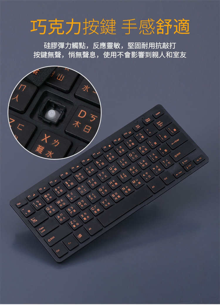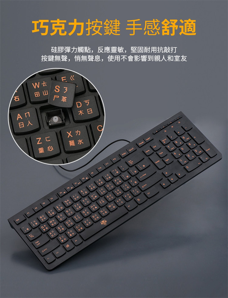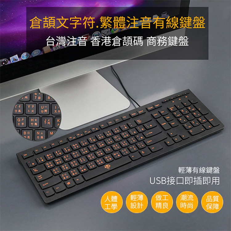 台灣倉頡字符有線/無線鍵盤 | 靜音不打擾 | 激光鐳射鍵帽經久耐磨 | 巧克力按鍵舒適手感 | 音樂多媒體按鍵 | 輕薄時尚台灣倉頡字符鍵盤