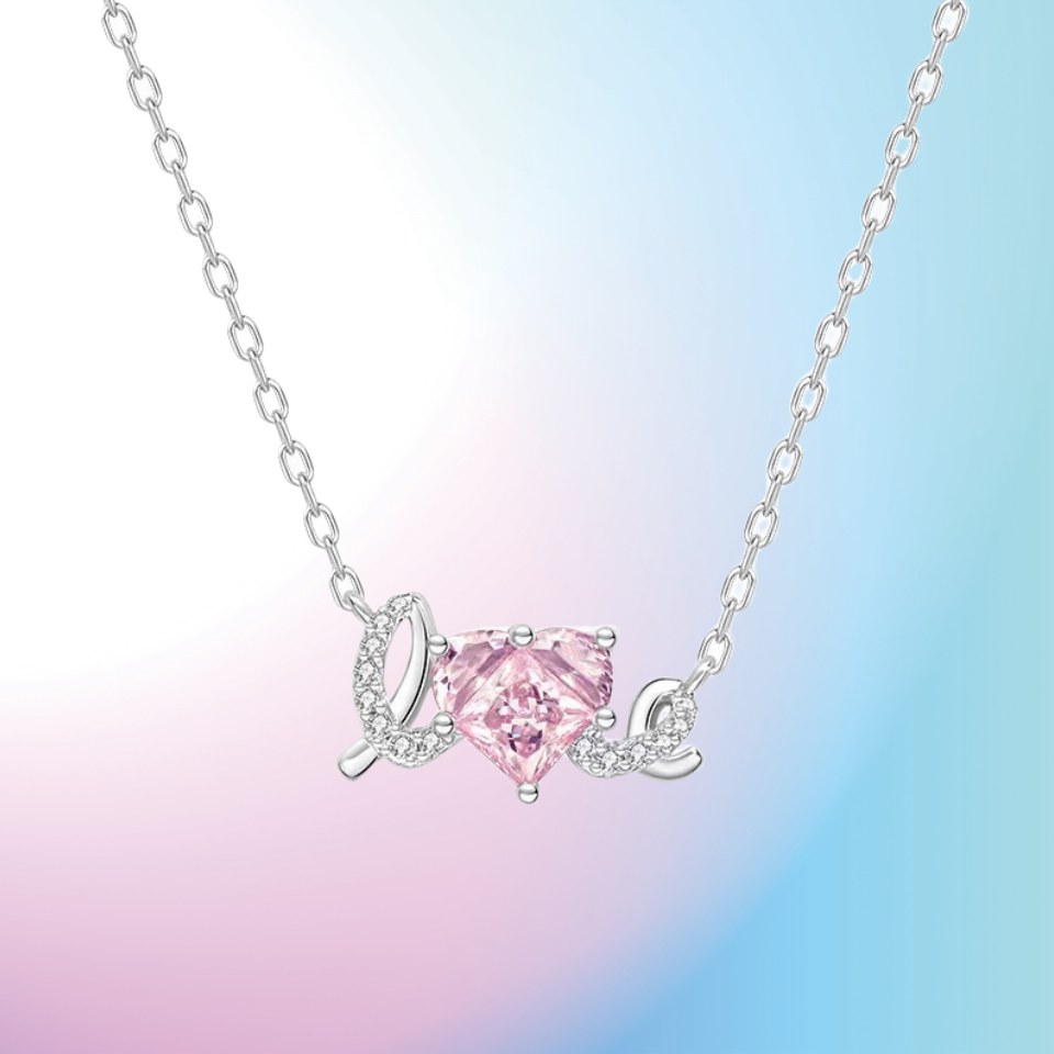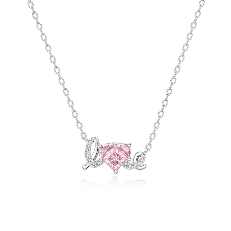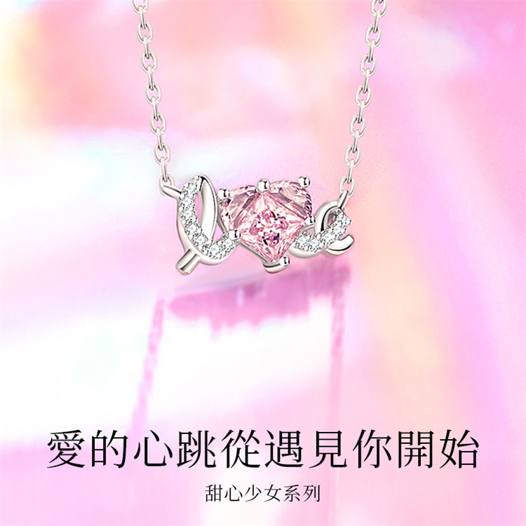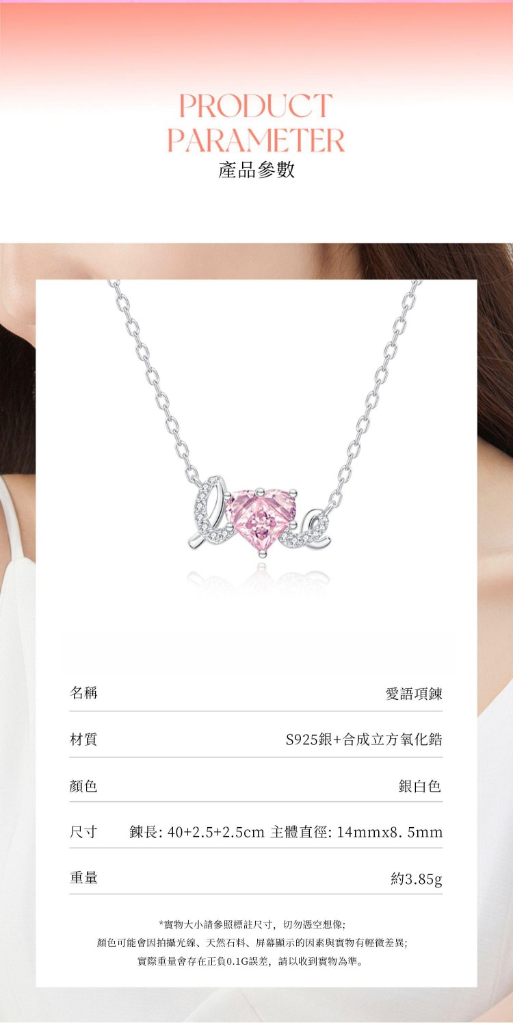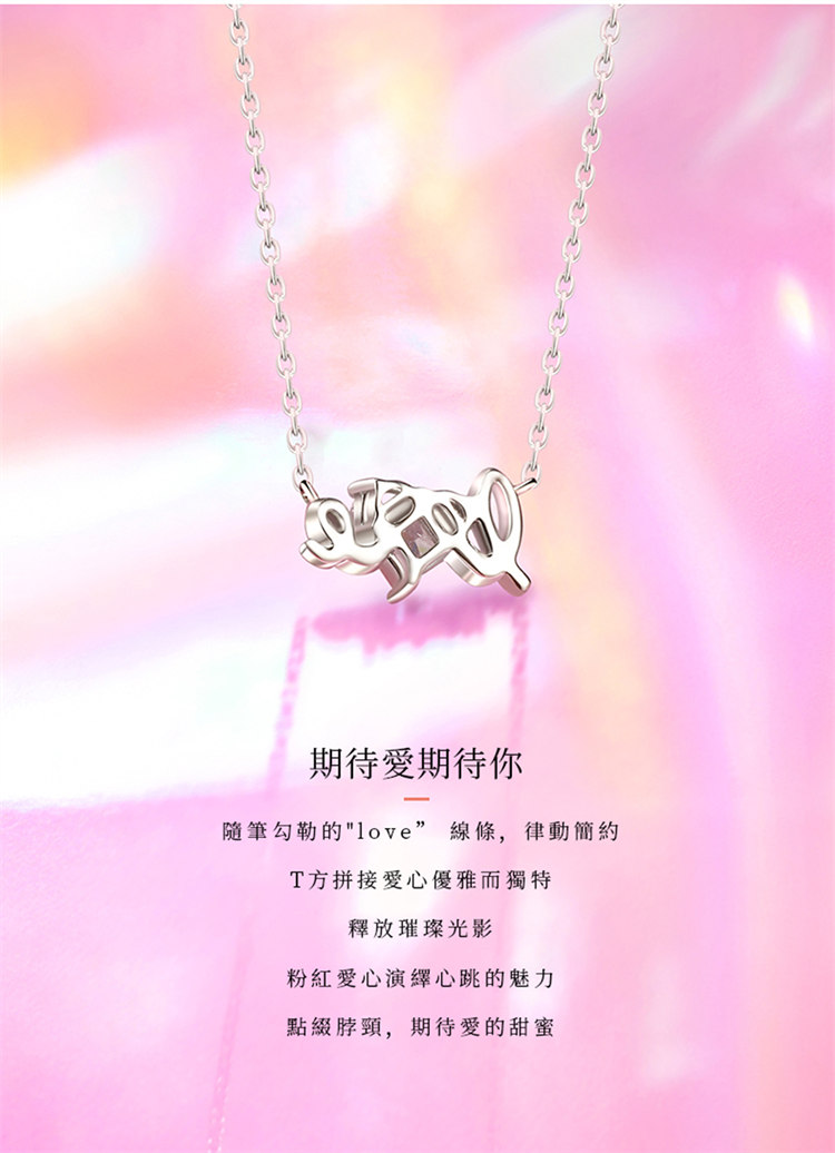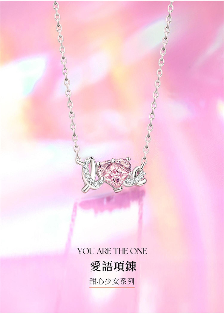 簡單LOVE甜蜜愛 | S925純銀鑲嵌粉鑽 | 浪漫甜蜜LOVE造型告白女生項鍊