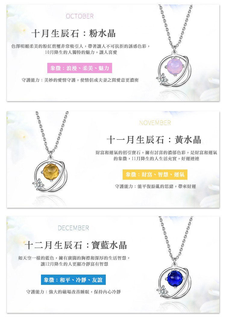 十二月生辰石 | 專屬幸運守護誕生石 | S925純銀 | 鑲嵌天然水晶 | 天使守護幸運月份專屬誕生石吊墜女士項鍊