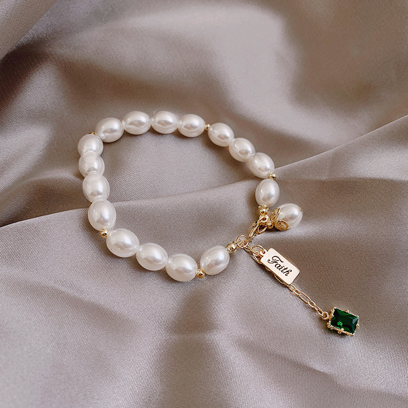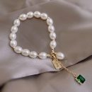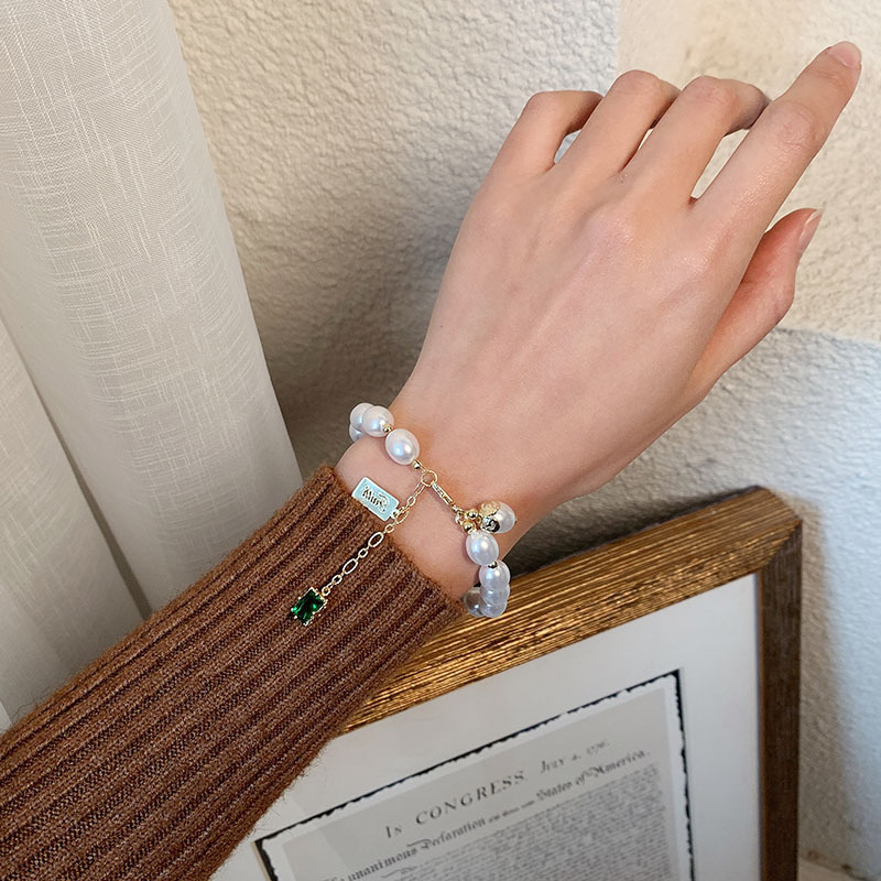 冷淡風網紅IG小眾設計巴洛克天然珍珠綠水晶吊飾手鍊