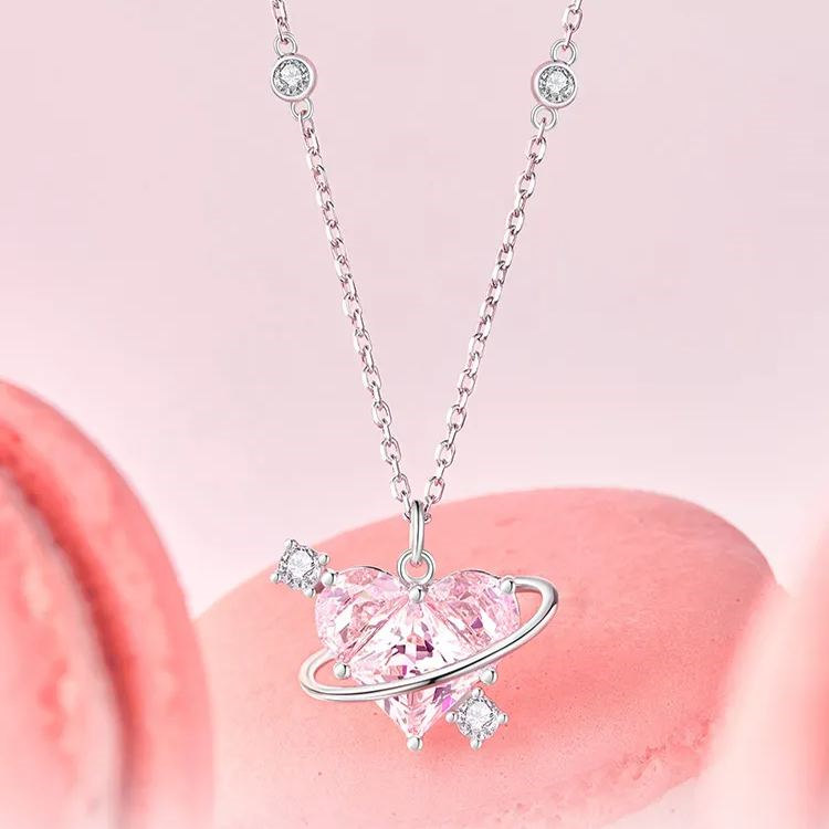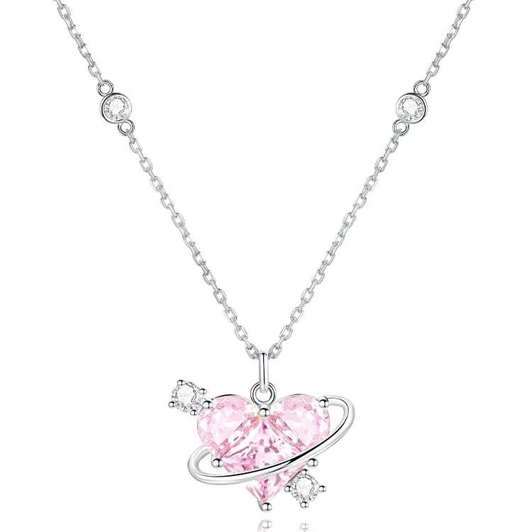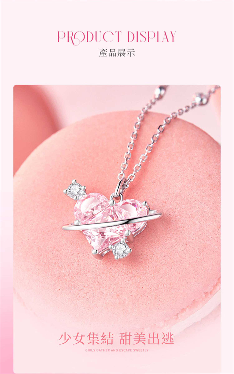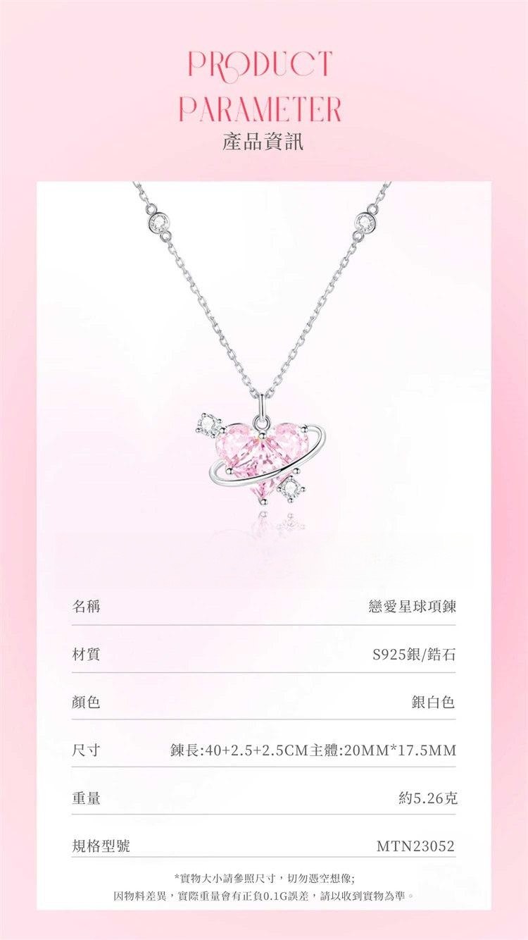 戀愛星球 | 致閃閃發光的妳 | S925純銀 | 克拉粉鑽 | 電鍍白金 | 浪漫手作粉鑽星軌女生項鍊