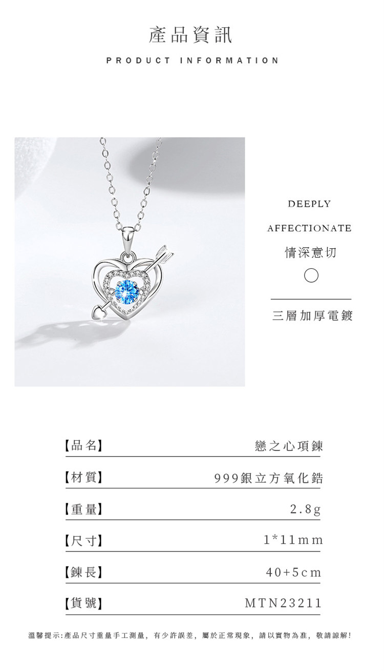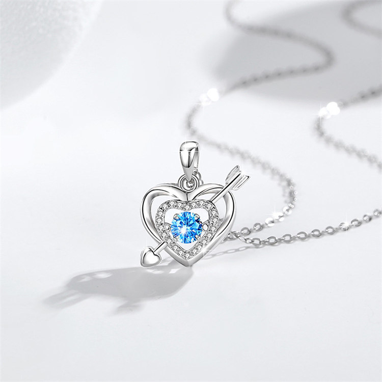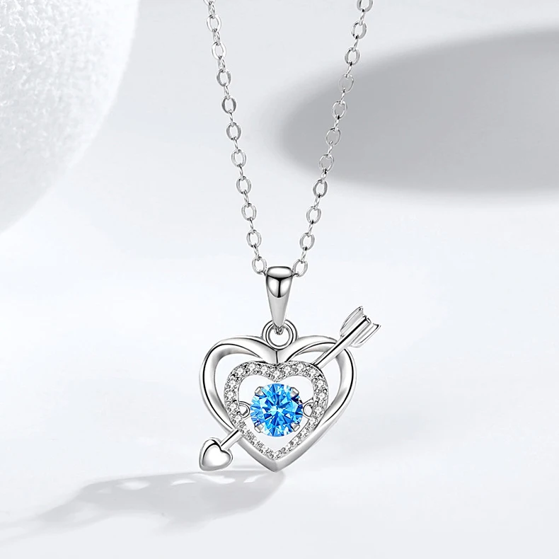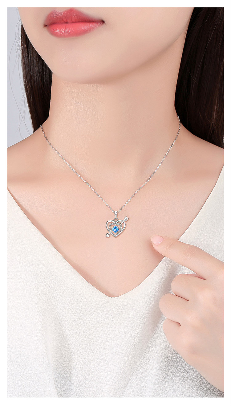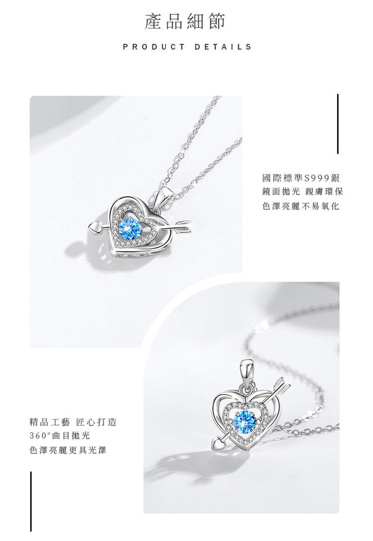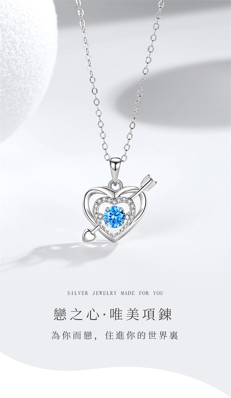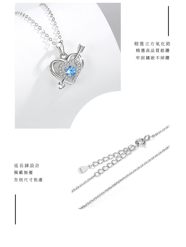 心之約定 | 戀心 | S925純銀 | 克拉藍鑽 | 浪漫約定愛神之箭設計師款送女生項鍊