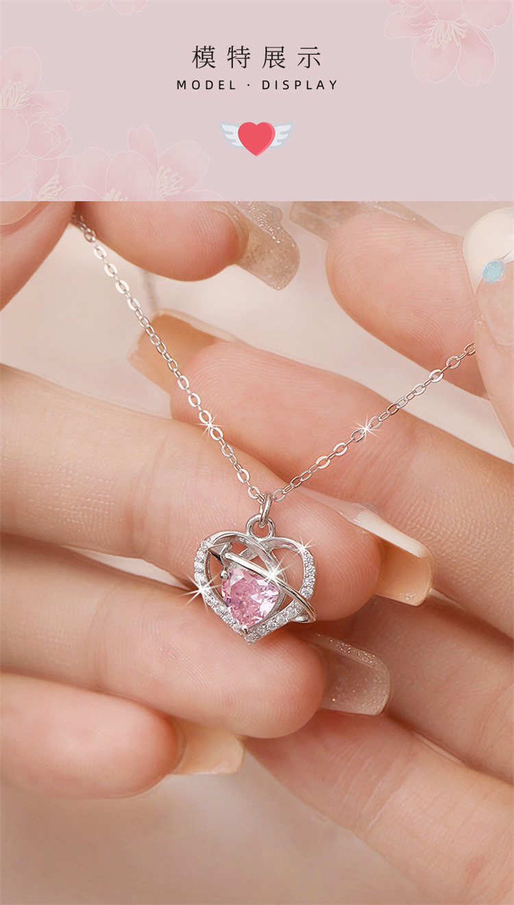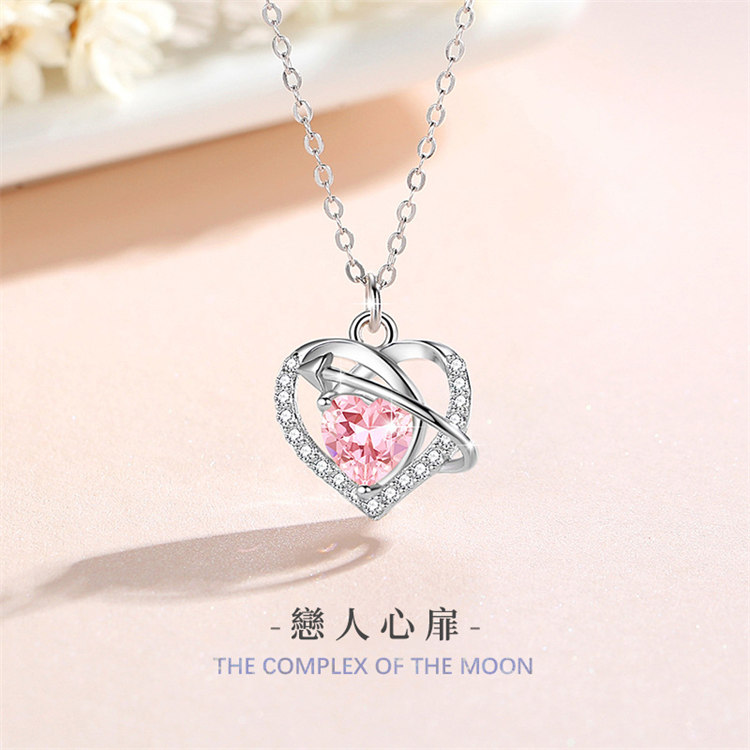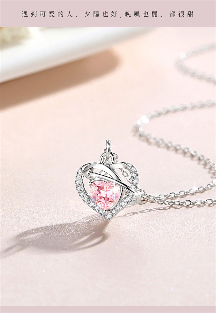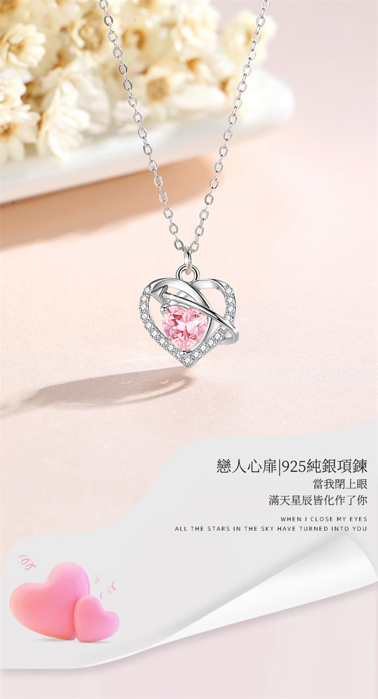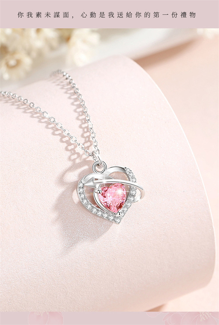 怦然心動 | 戀人心扉 | S925純銀 | 群鑲鋯鑽 | 浪漫心動粉鑽愛心鎖骨鍊女生項鍊