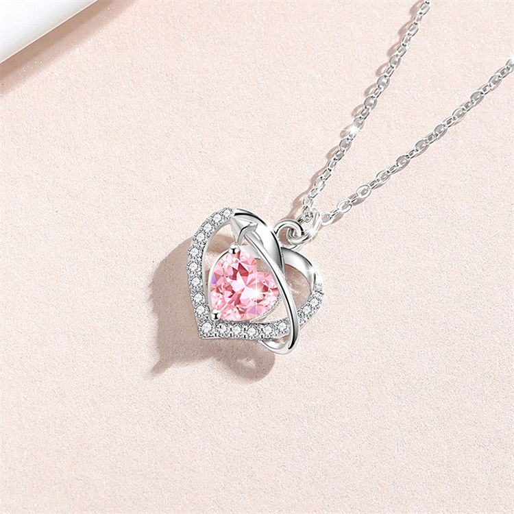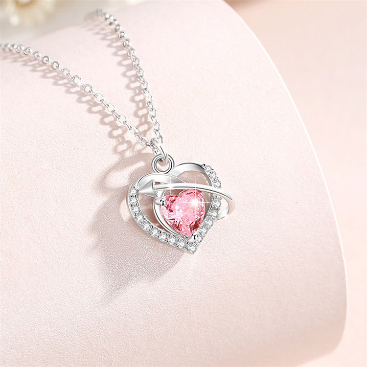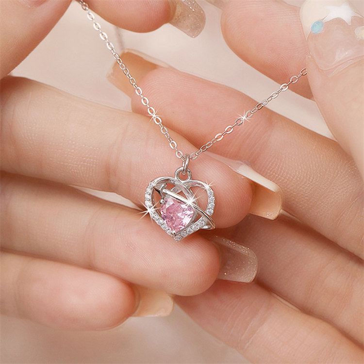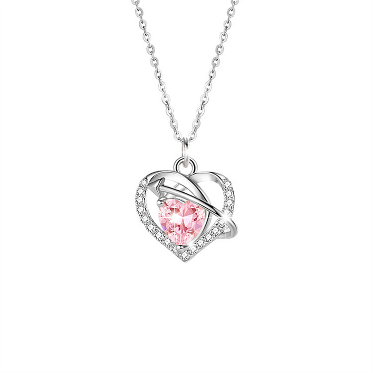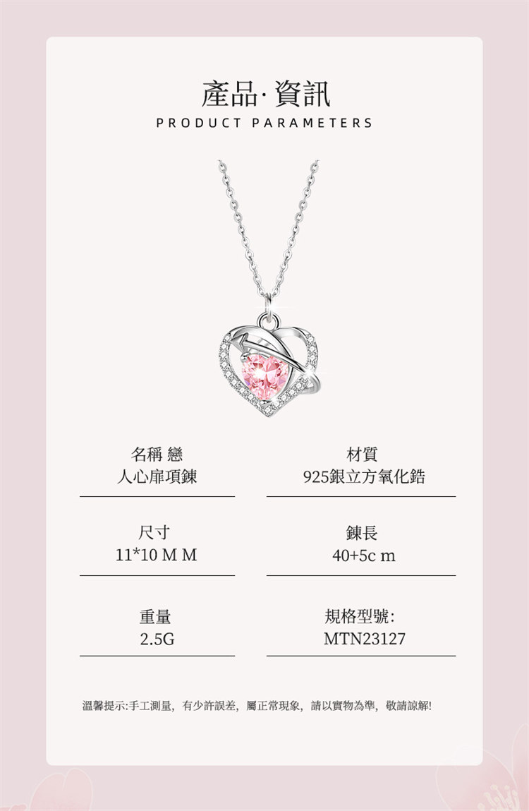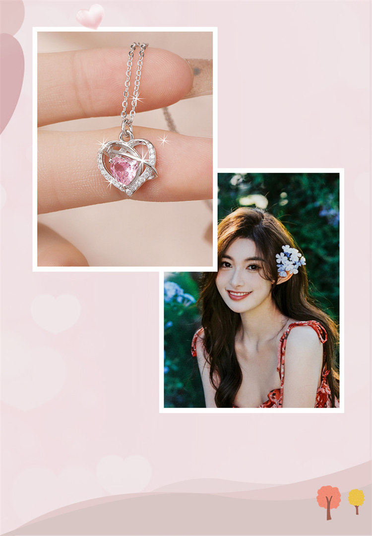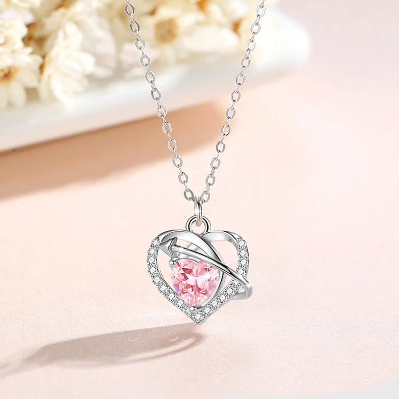 怦然心動 | 戀人心扉 | S925純銀 | 群鑲鋯鑽 | 浪漫心動粉鑽愛心鎖骨鍊女生項鍊
