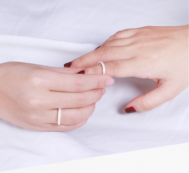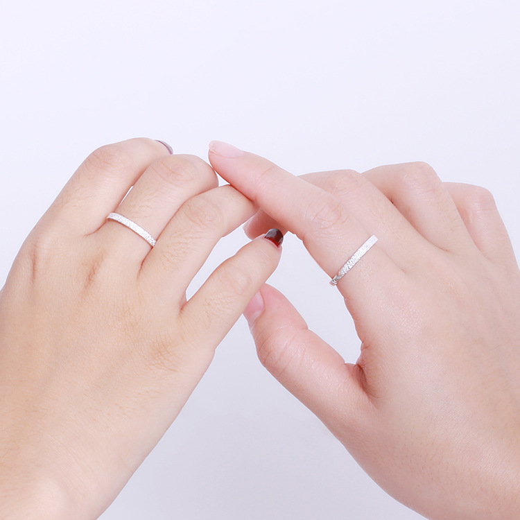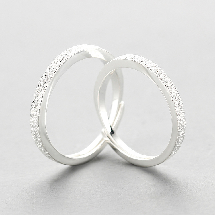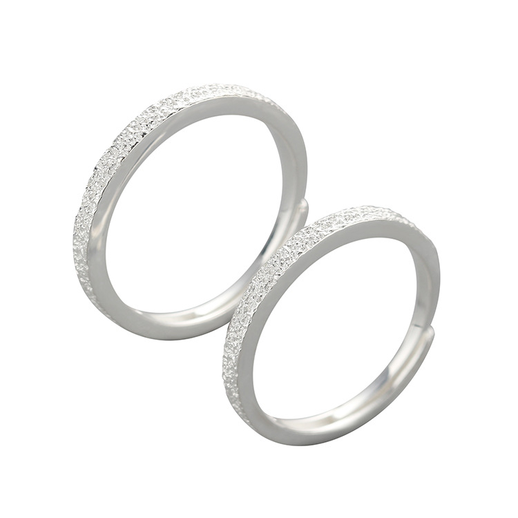 【雪花石紋】【S925純銀】簡約日式石紋磨砂男女開口戒指情侶對戒