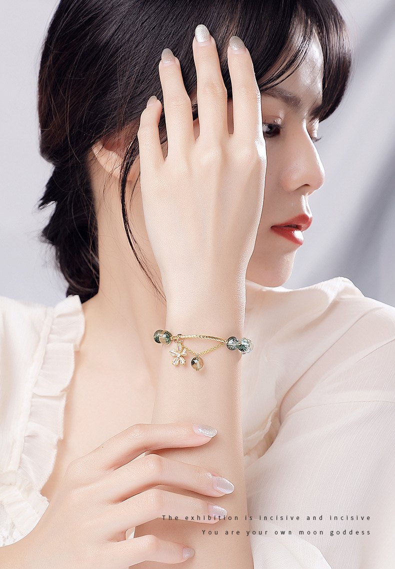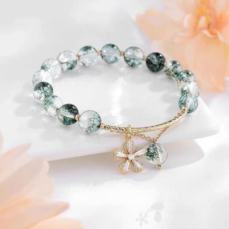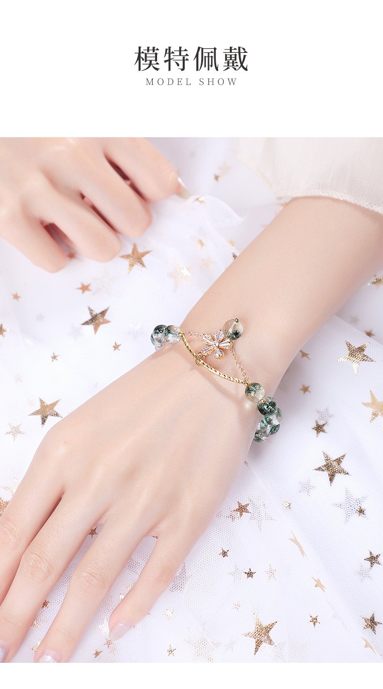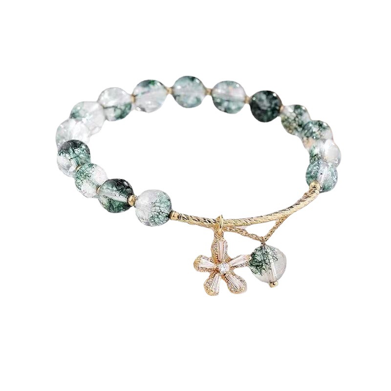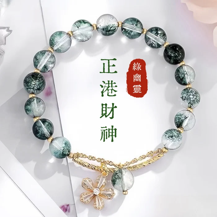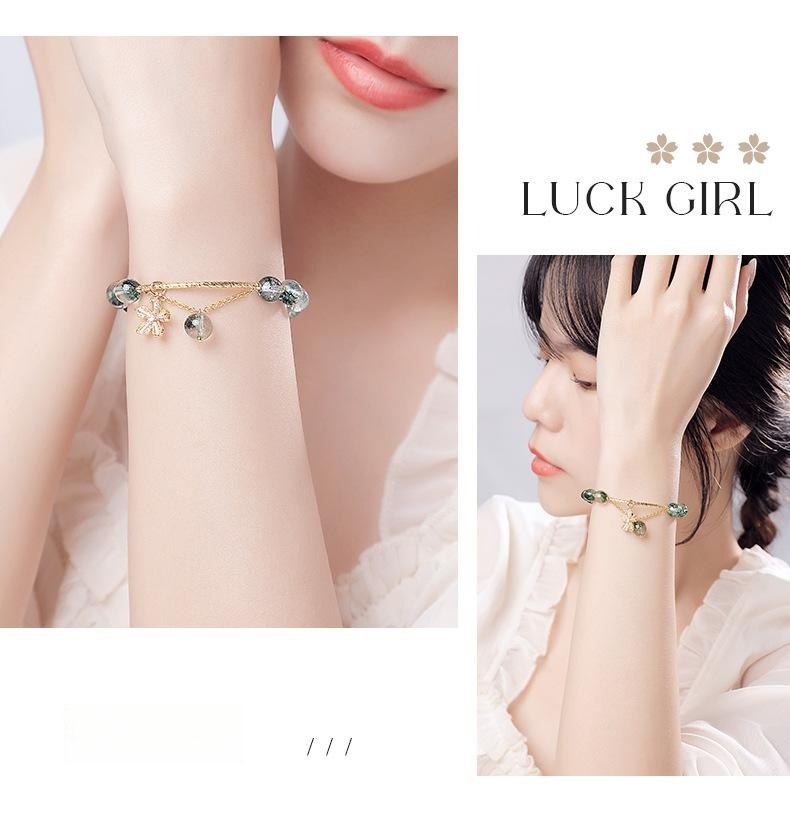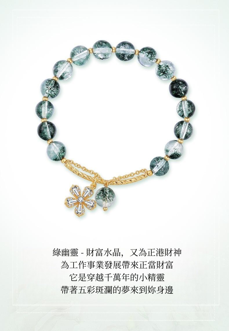 正港財神 | 櫻花綠幽靈水晶手鍊 | 財富上門 | 櫻花吊墜 | 疊鍊設計 | 閨蜜手環 | 送朋友禮物水晶手鍊