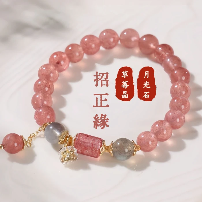 招正緣 | 天然水晶手鍊 | 招桃花防小三穩定感情 | 草莓晶 | 灰月光石 | 閨蜜手環 | 送朋友禮物水晶手鍊